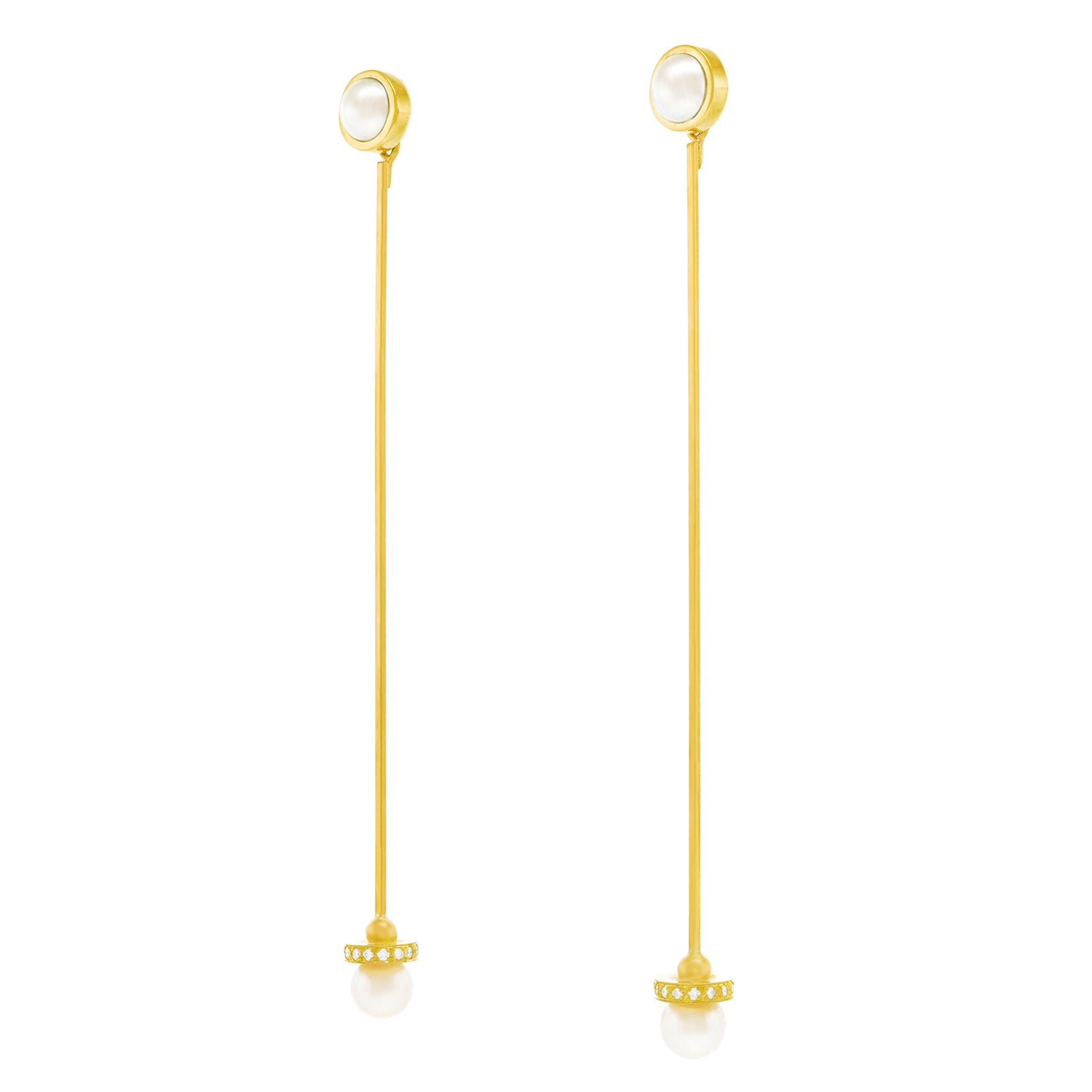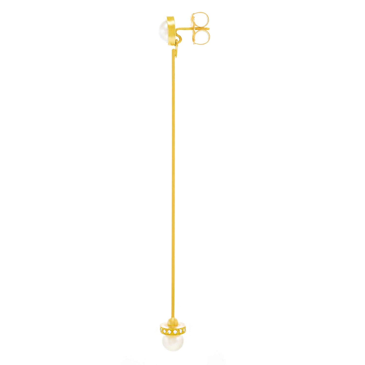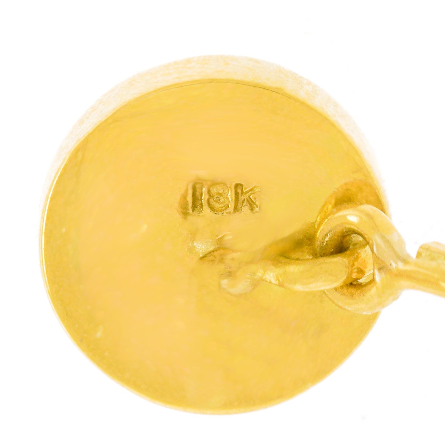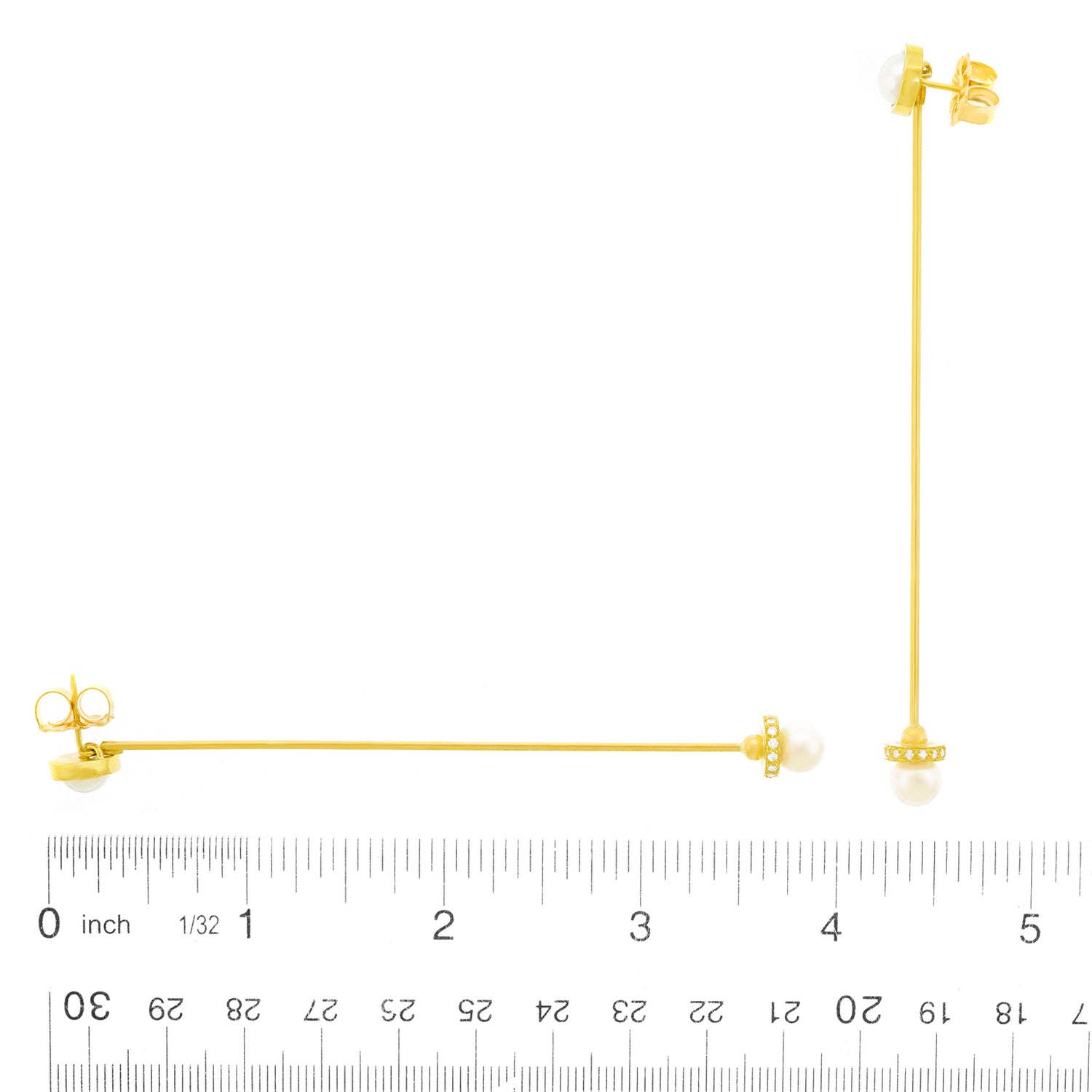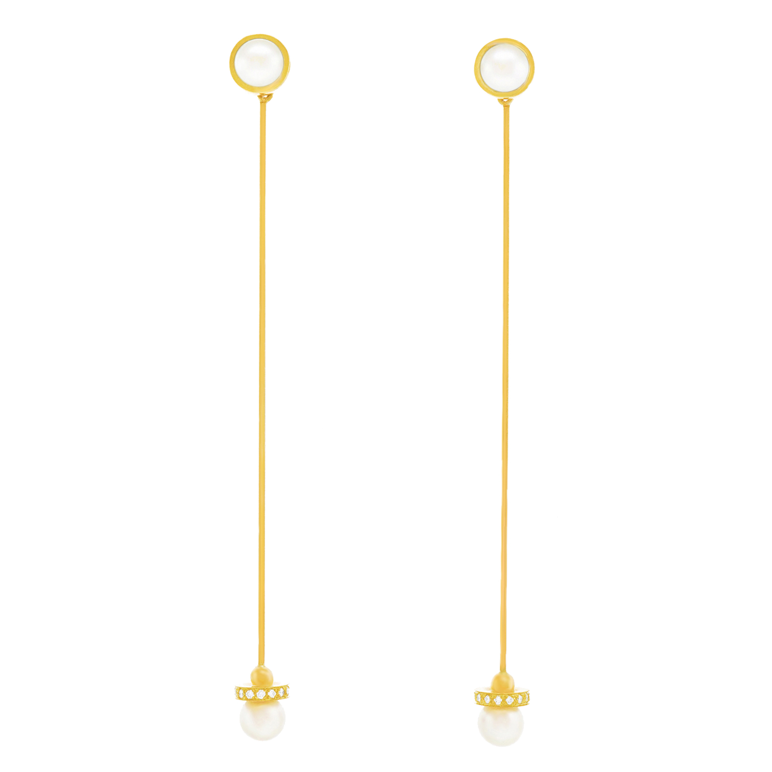 Circa 2020, 18k, by Lawrence Jeffrey, American. Brilliantly sleek, these visually leggy Modernist earrings effortlessly go from motos on the catwalk, to t-shirts and jeans on the sidewalk. Their chic four-inch length is underscored by flirty movement. Finely fashioned in polished 18k yellow gold, they are in excellent condition.