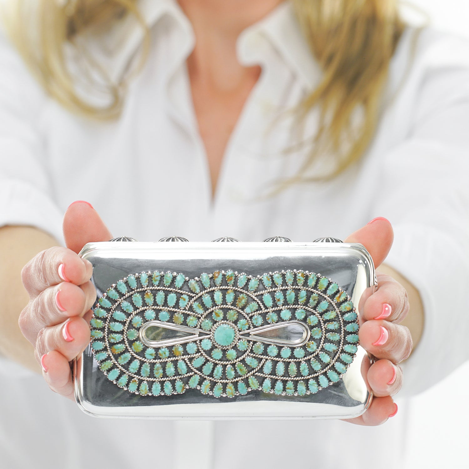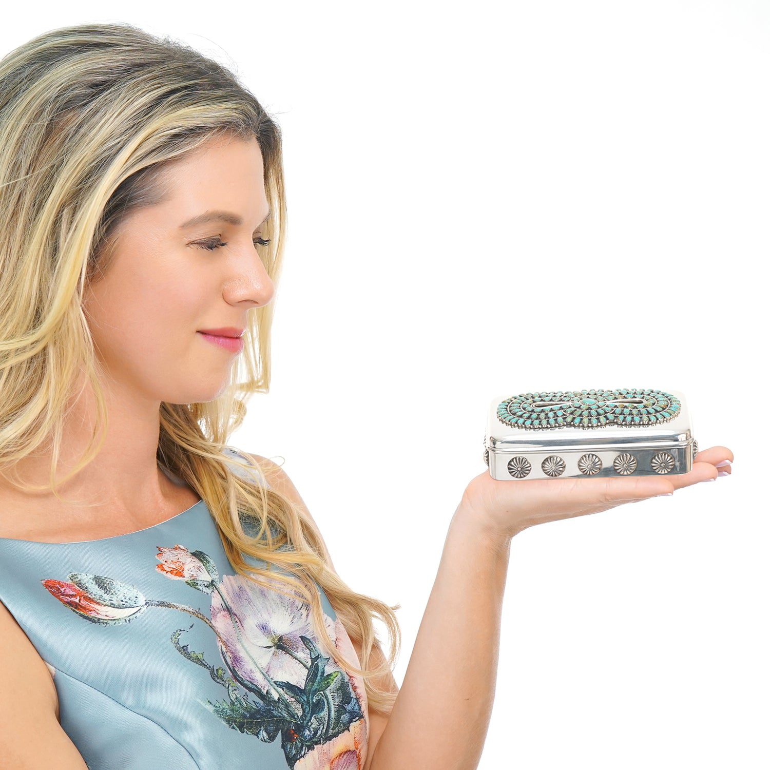 “The confluence and transmission of style, Art and Design is woven into the rich history of artistic endeavor, we love the authentic silver work of the peoples of western American and honor that work by using a Tiffany box to place it front and center on display.”