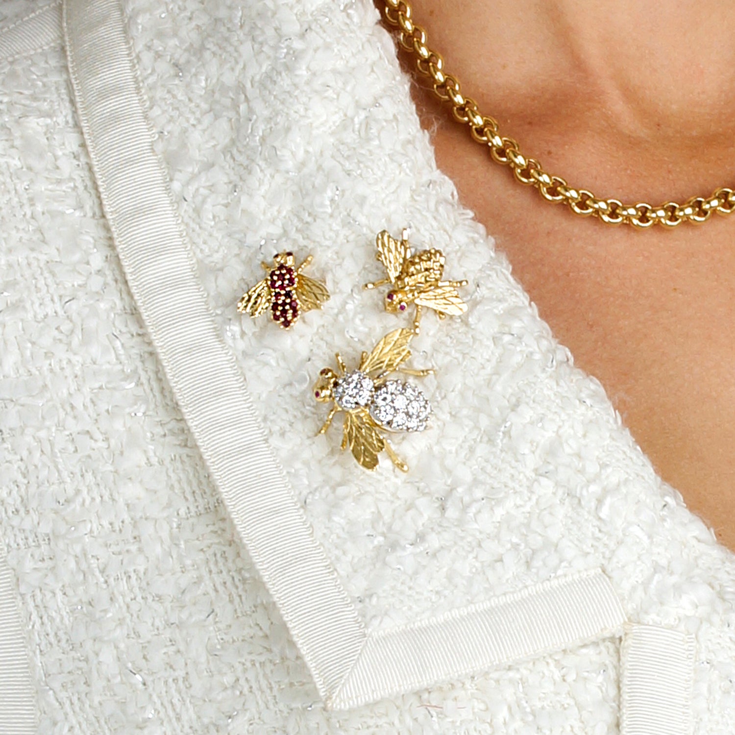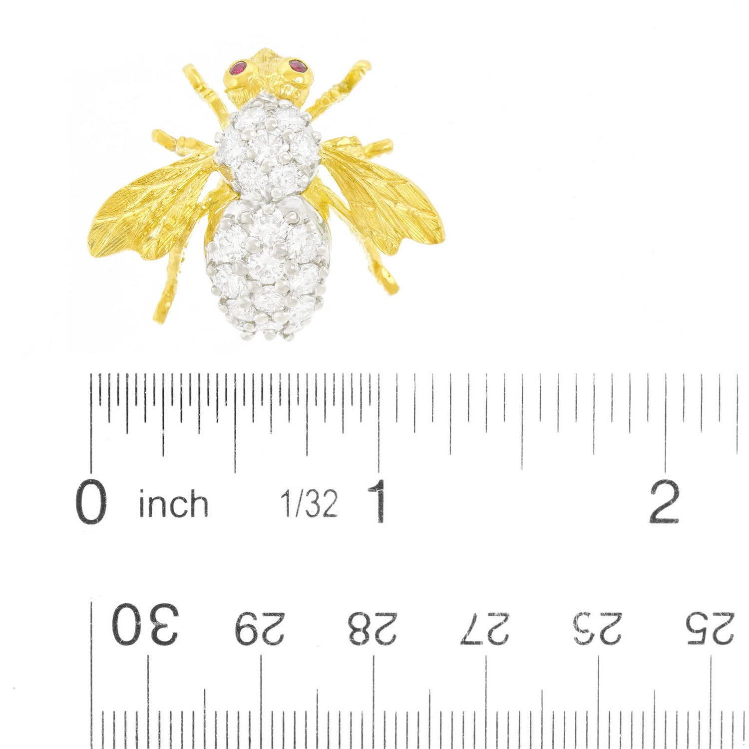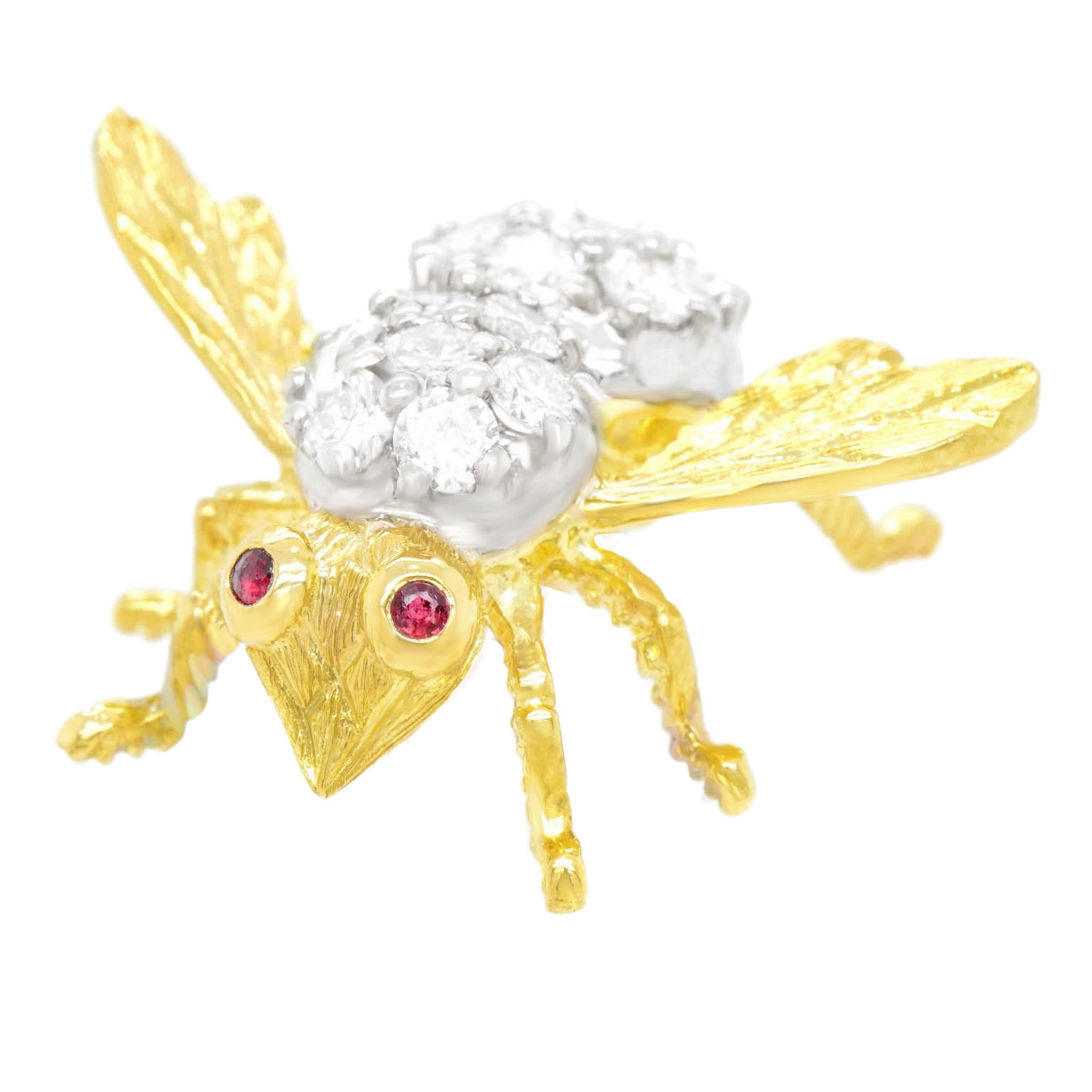 Circa 1970s, by Herbert Rosenthal, 18k, New York. This charming bee pin by Herbert Rosenthal is set with 2.50 carats of brilliant white diamonds (F color, VS clarity). Rosenthal bees are the chic culmination of a centuries-long fascination with insect jewelry. Their exquisite design is underscored by meticulous fabrication and sublime stones. Excellent condition.