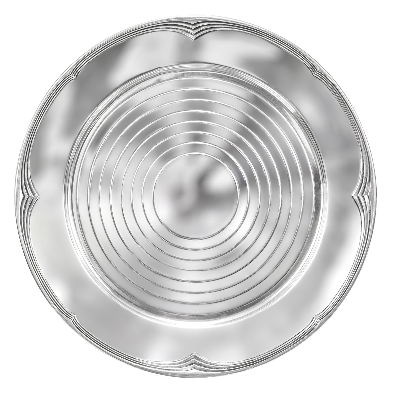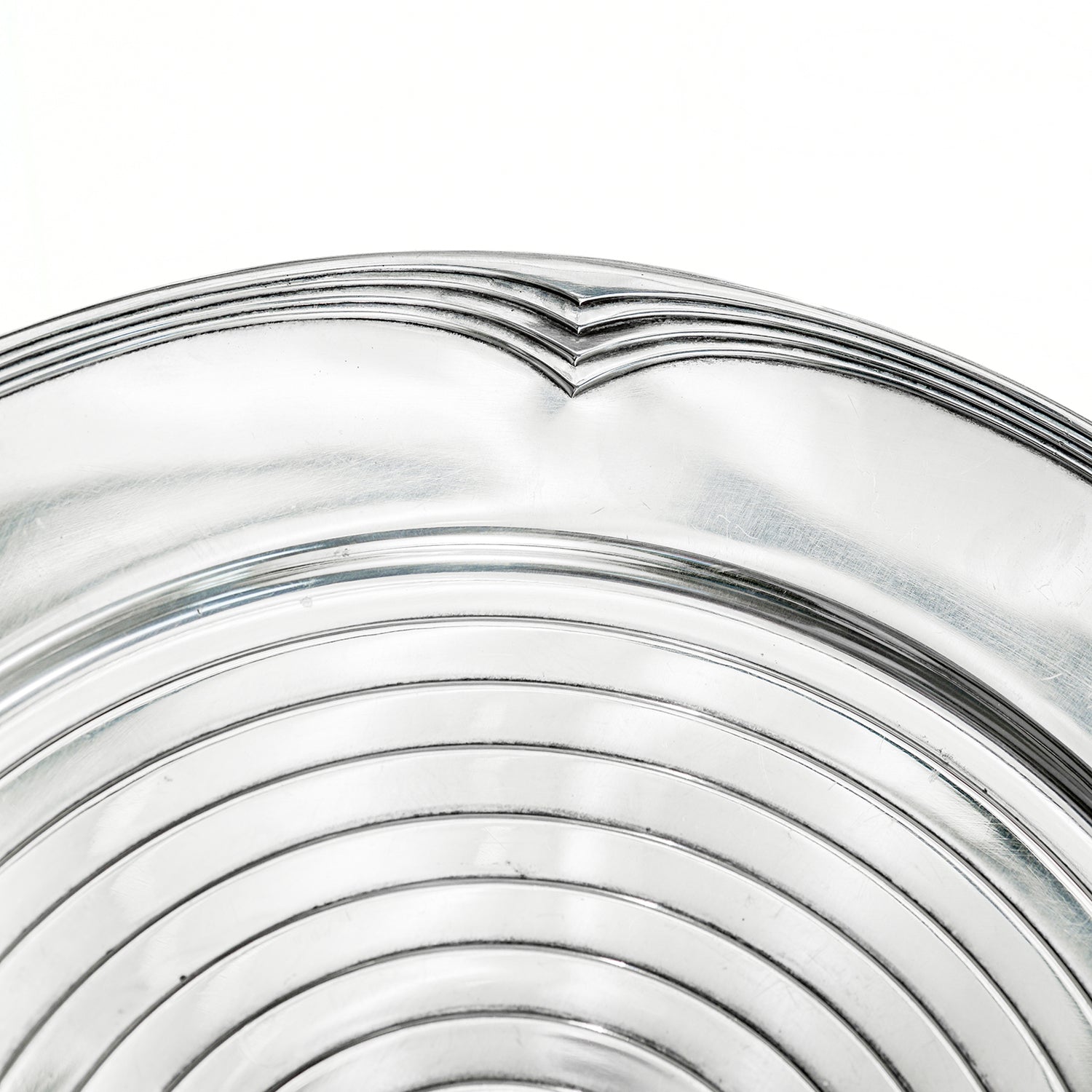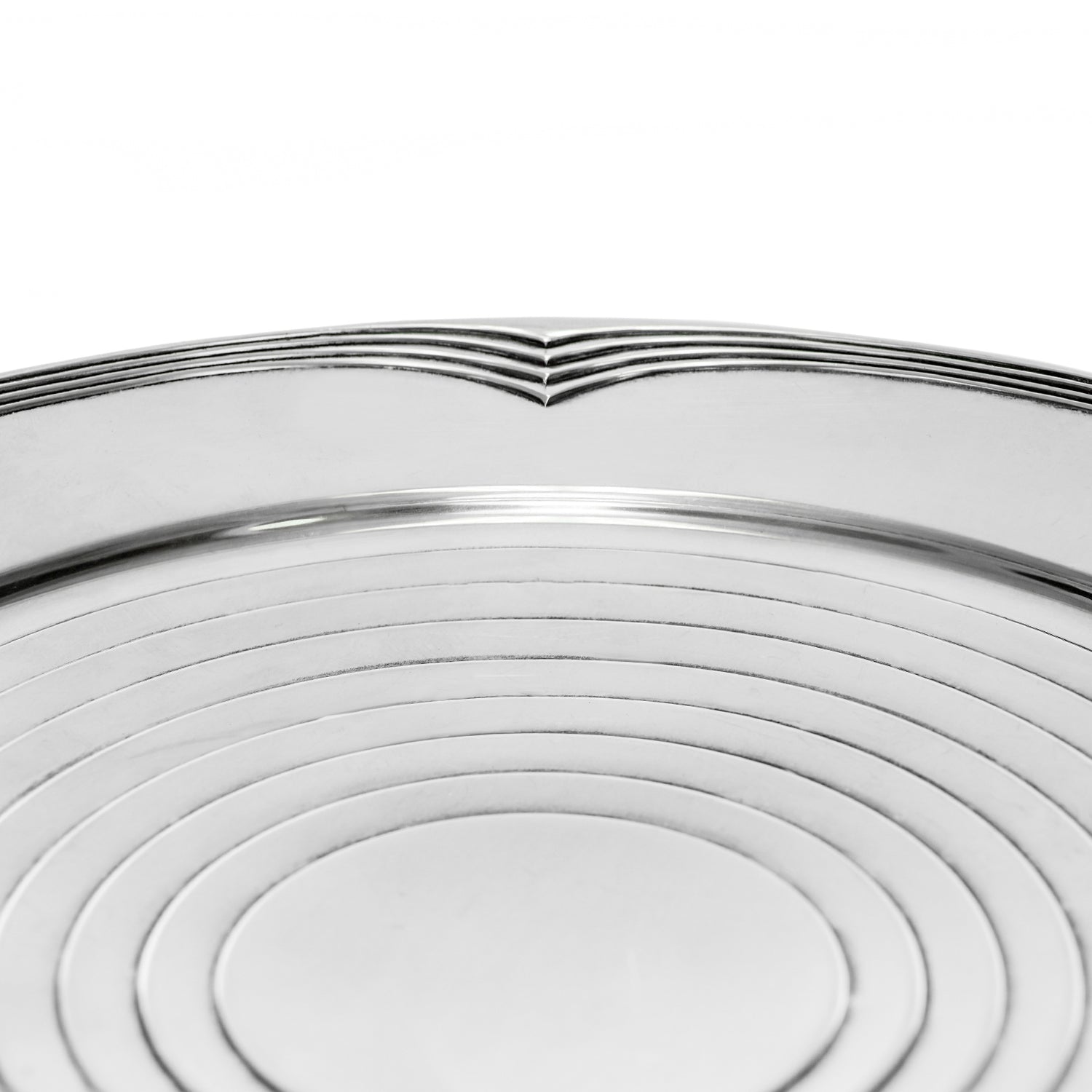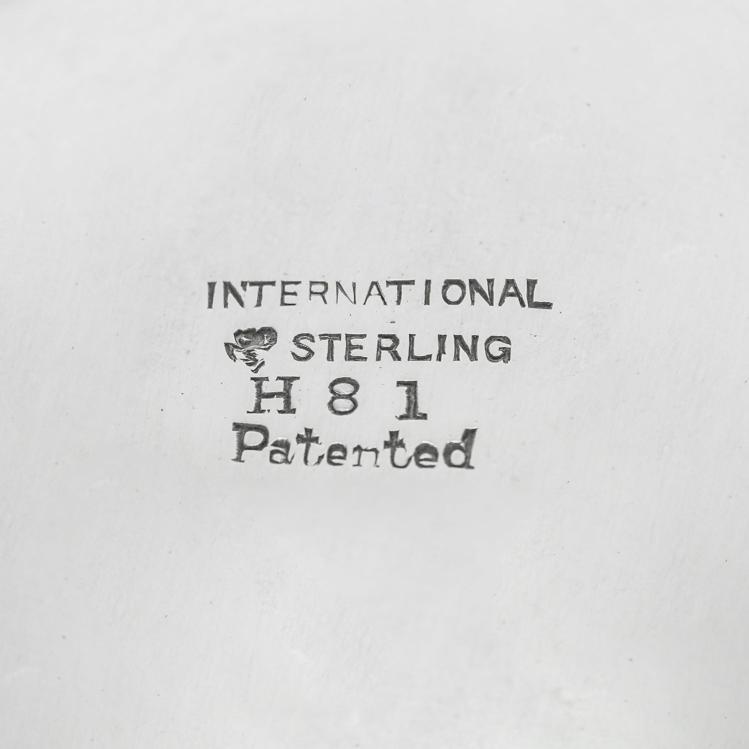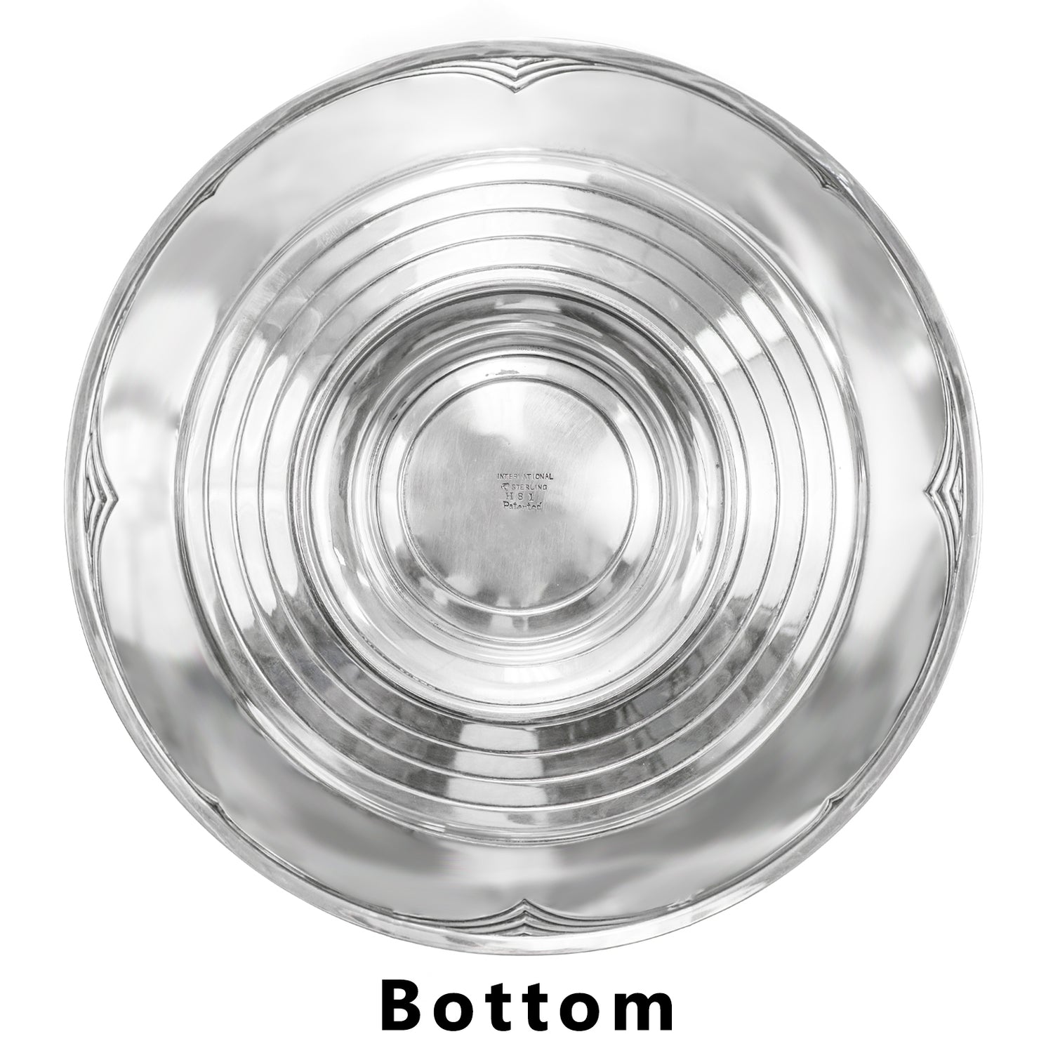 Circa 1928, Sterling, by Alfred Kintz for International Silver Co., Meriden, CT. This sterling tazza is American Art Deco at its very best. Introduced in 1928, the Ebb Tide pattern by International Silver is stunning, sophisticated, and rare. Most pieces are currently in museum collections, chief among them the renowned American Modernist Silver collection of The Dallas Museum of Art which has an example of this piece. Perfect for your modern décor, these pieces are in excellent condition.