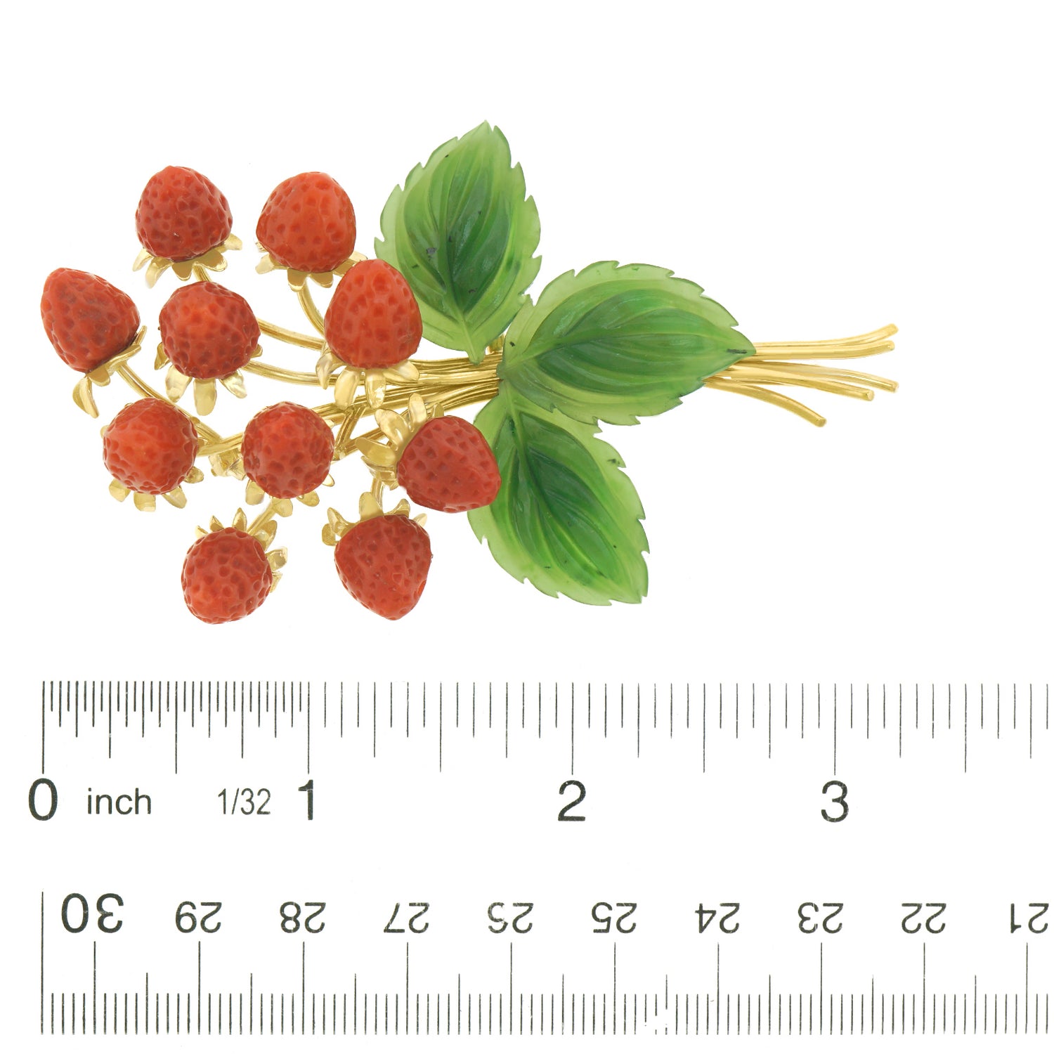 Spectacular Art Deco Period Jade and Coral-set Strawberry Brooch