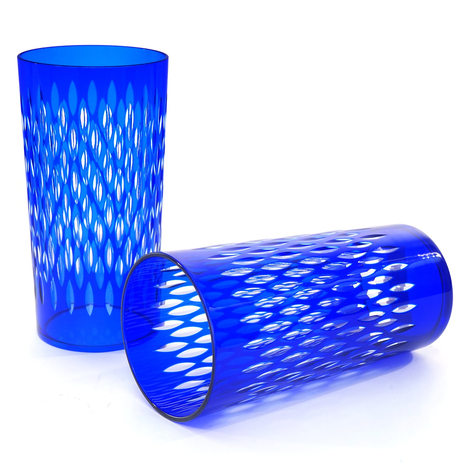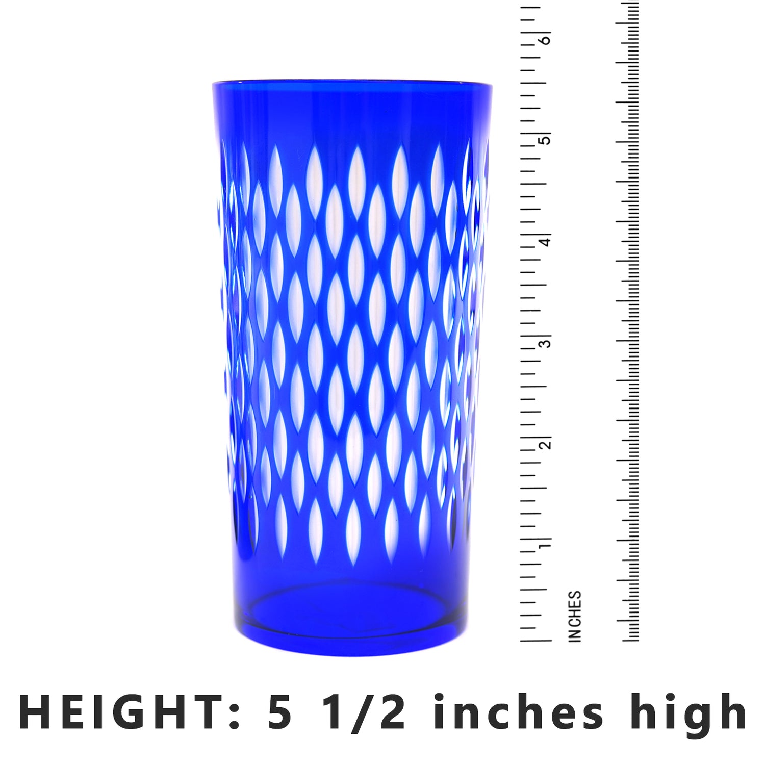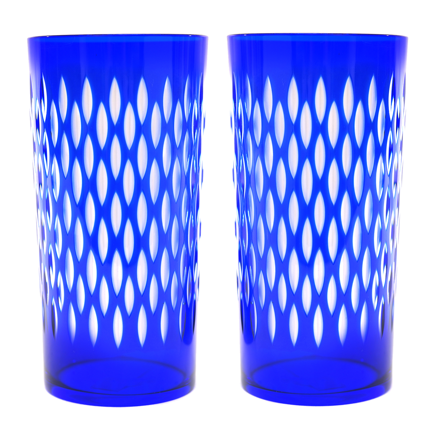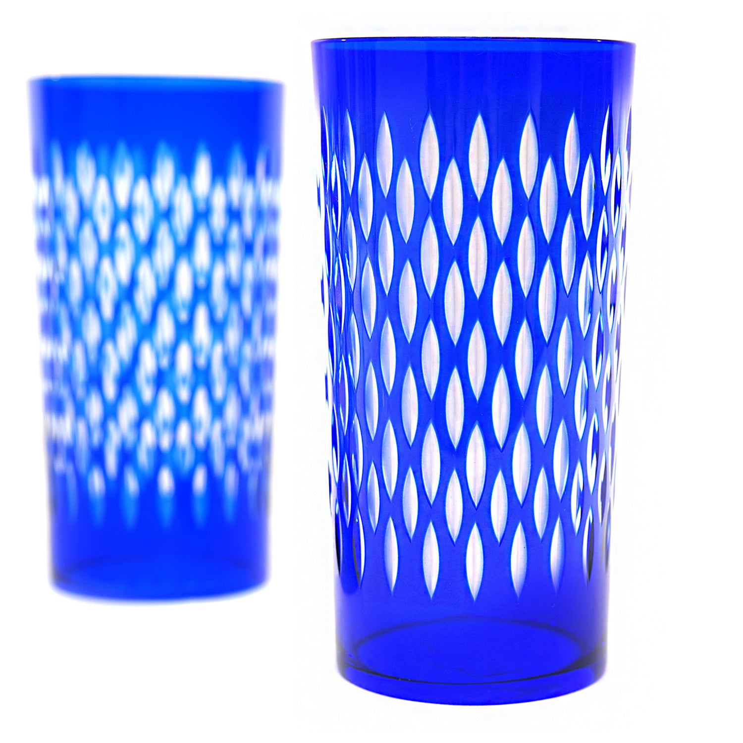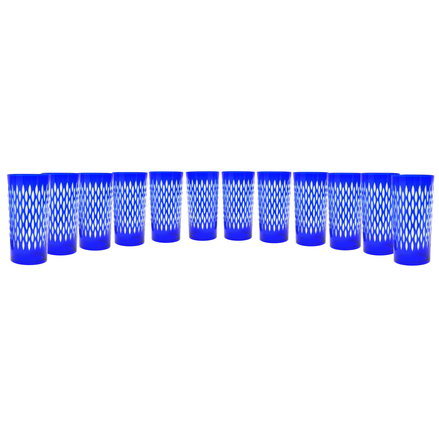 Circa 1930s, Paris pattern, by Baccarat, France. These fabulous Baccarat Tumblers are perfect for water or tall cocktails. The pattern is Paris and the look is modernism redolent of the French Arts decoratif movement. Made in cobalt-cased glass and cut in a sleek pattern, this set of 12, is especially rare in blue. Superbly made, they are in excellent condition.