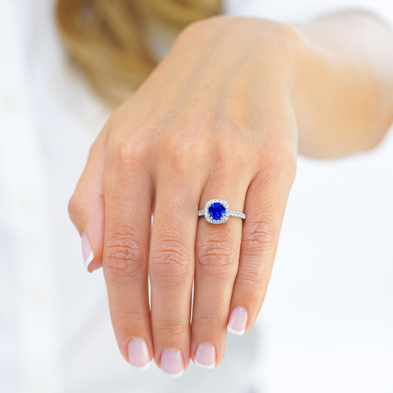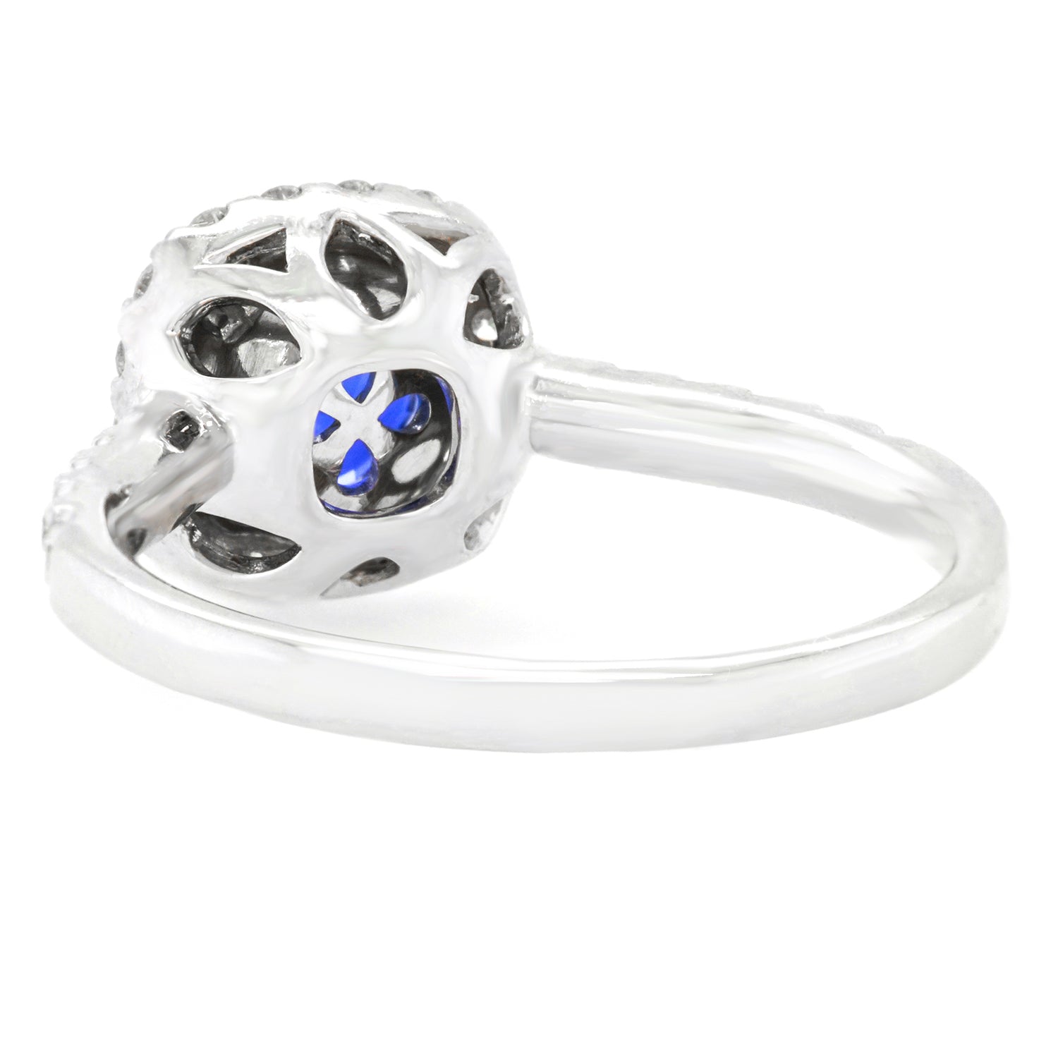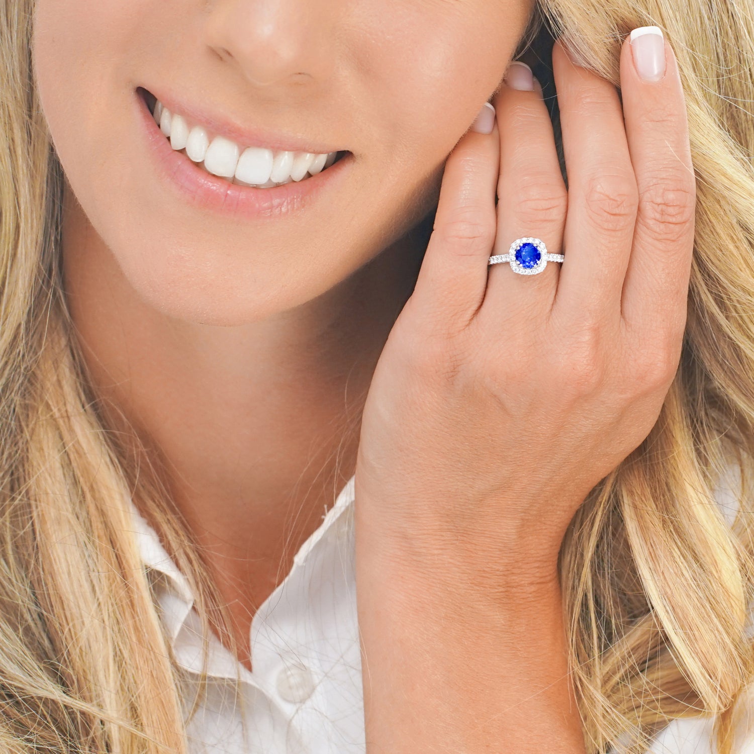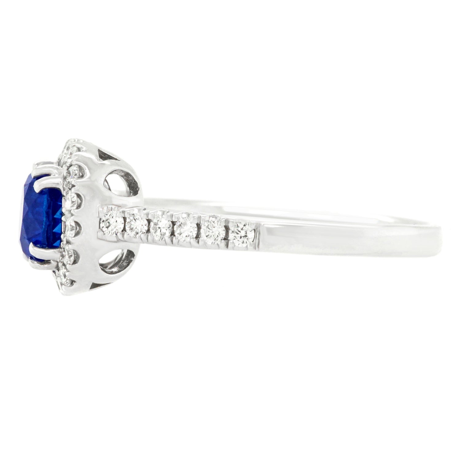 Circa 2000s, 14k, American. Surrounded by .50 carats of fine white diamonds, the star of this show is the rich cornflower blue 1.50-carat sapphire. Elegant and timeless, this ring is perfectly classic and brilliantly beautiful. Finely fashioned, it is in excellent condition. a period of 7 days.