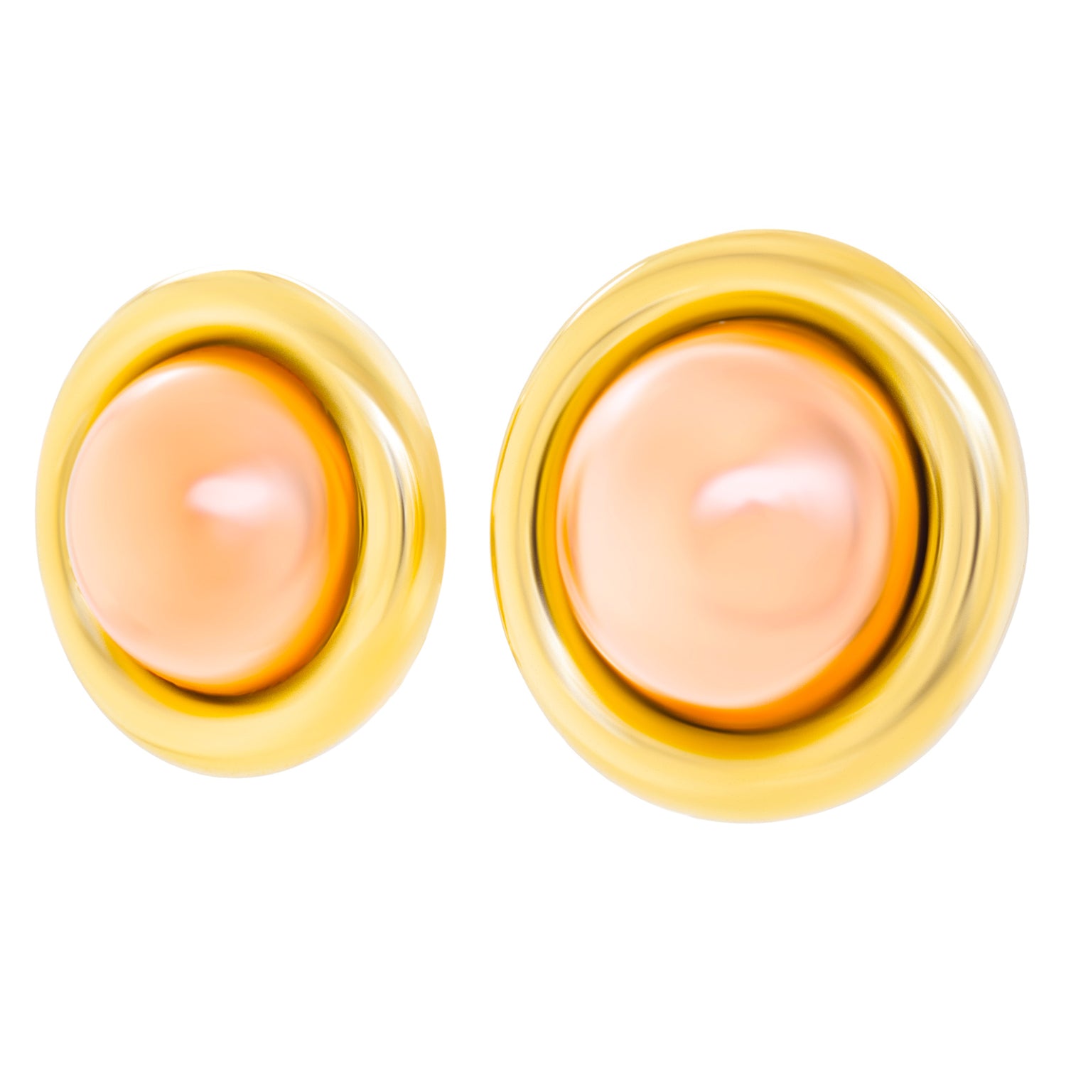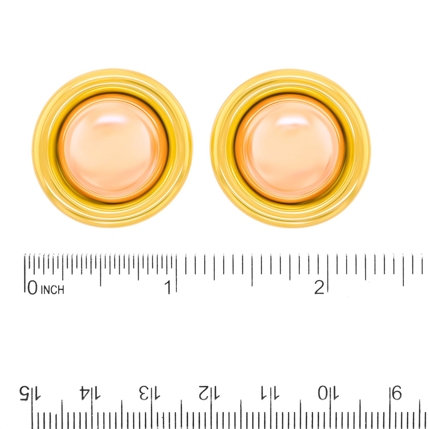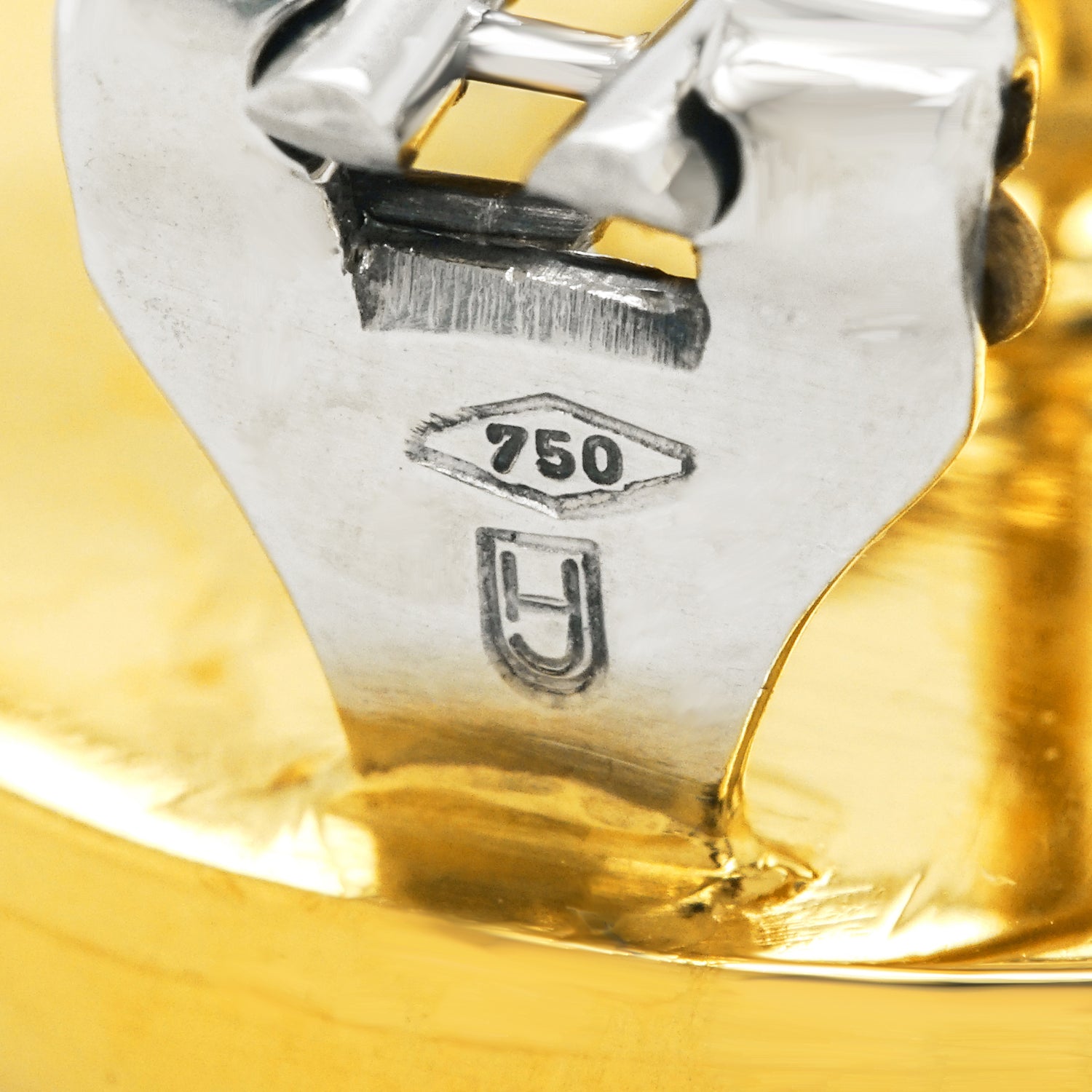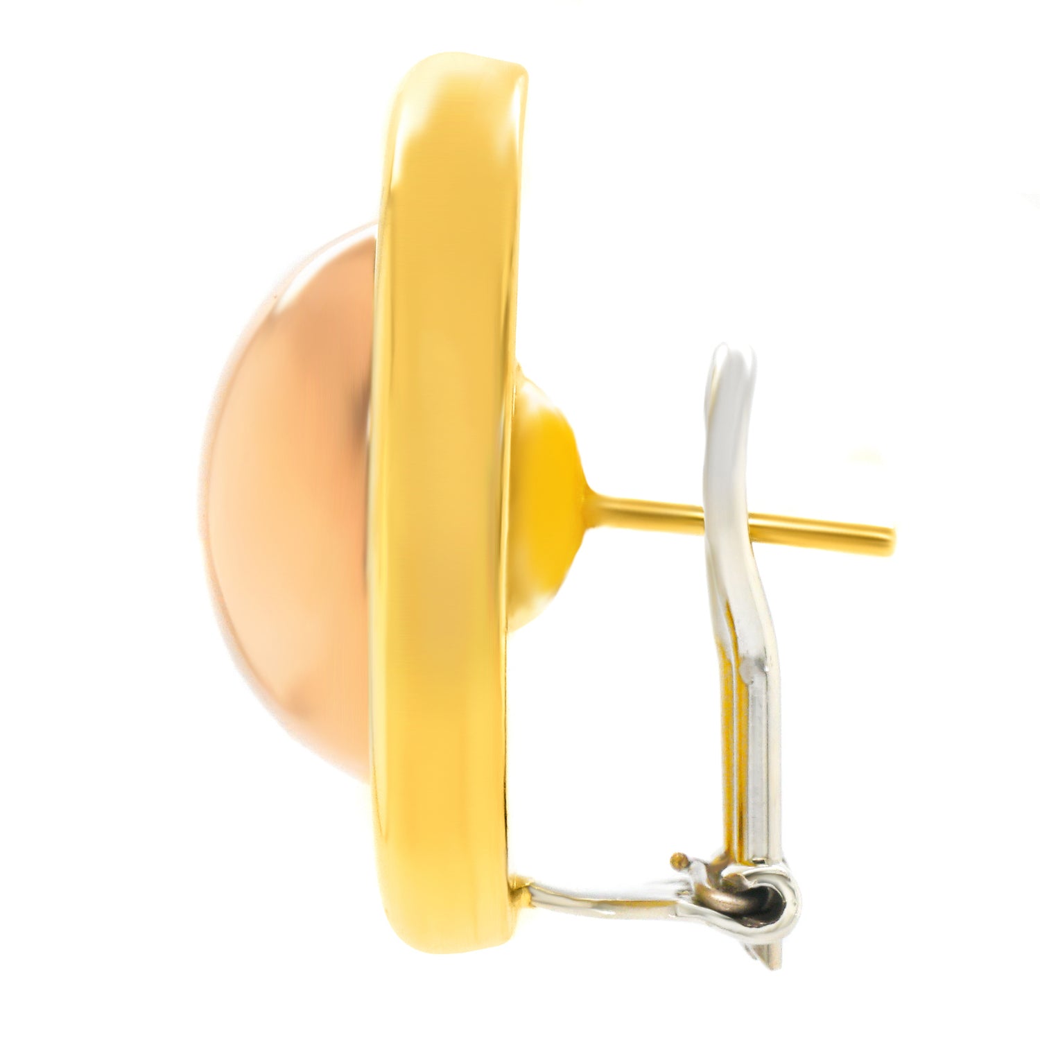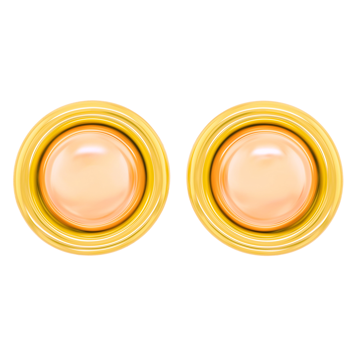 Circa 1970s, 18k, attributed Switzerland.  From Deco to the Postmodern Idiom, circles-within-circles beguile our imagination and capture our attention. These mirror-polished 18k yellow and pink gold earrings breezily go from lunch with the girls to the discotheque. Meticulously fabricated, they are in excellent condition.