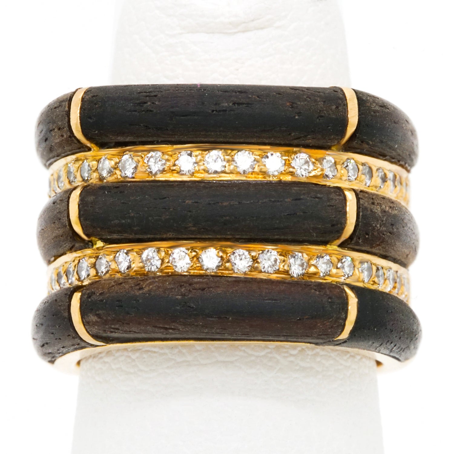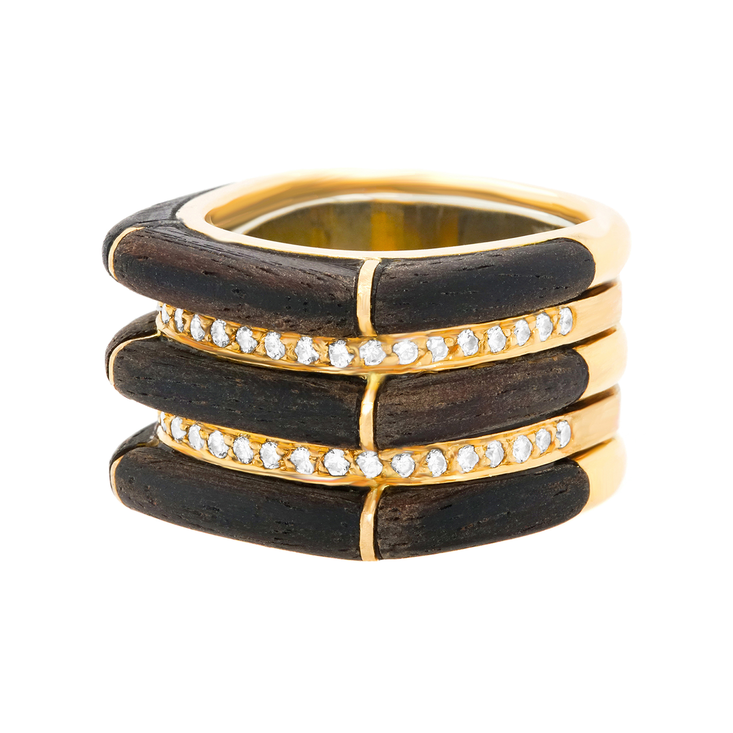 #23005 - Paul Binder Sixties Modern Diamond Ebony and Gold Ring