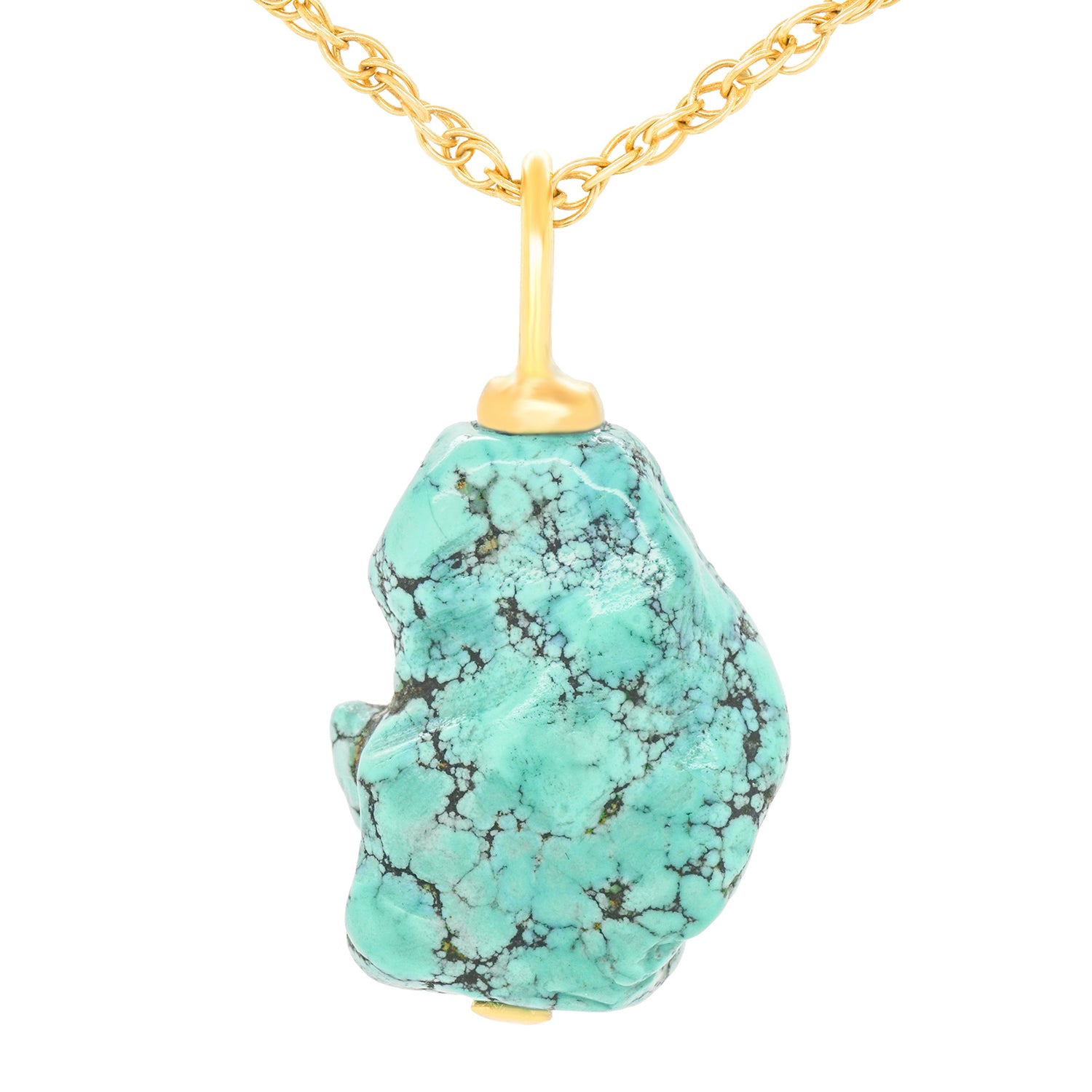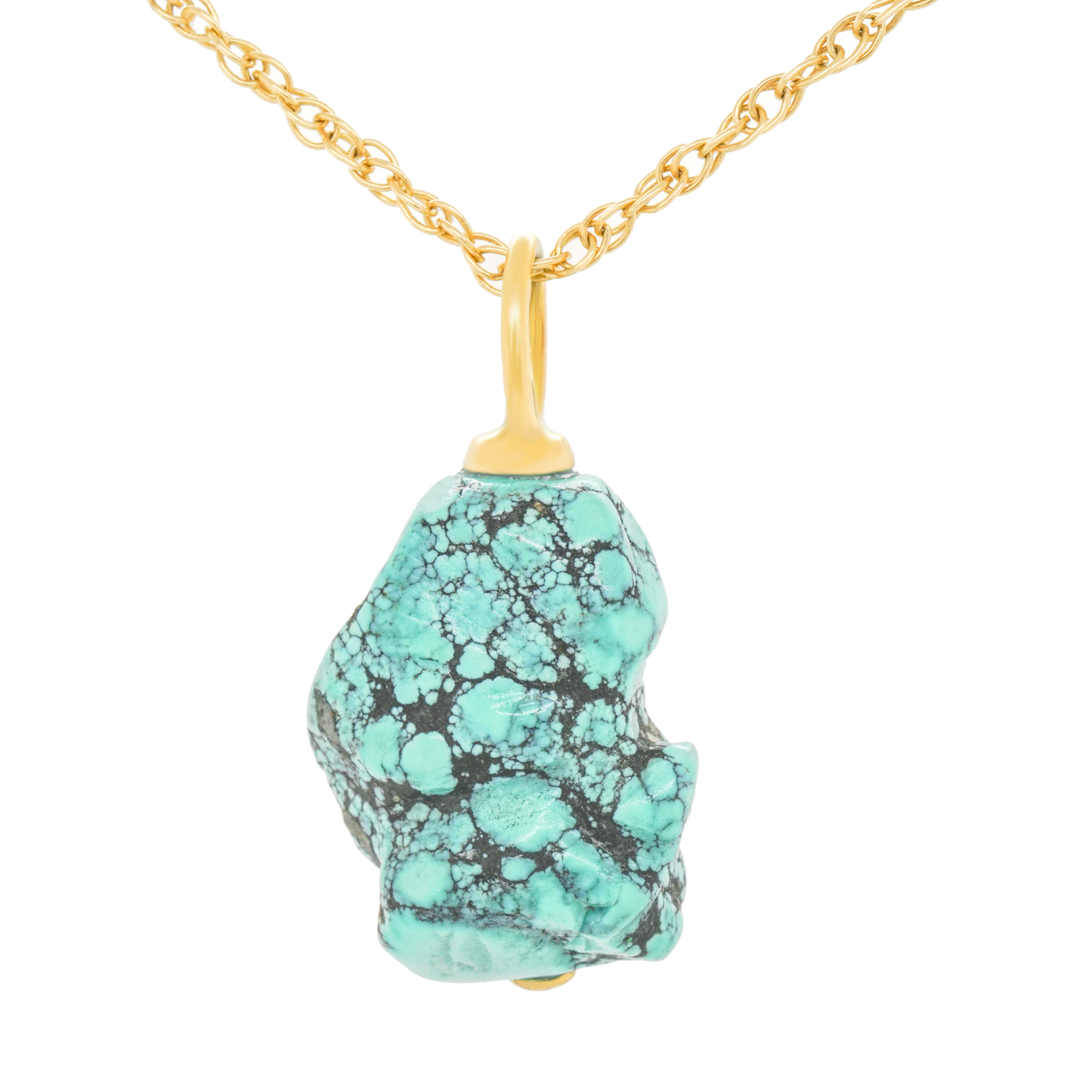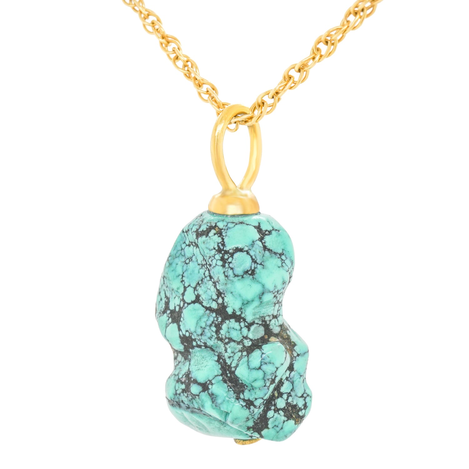 Circa 2000s, 18k, American. In nature, there are only perfect shapes, color, and sounds. This pendant is a brilliantly hued natural piece of polished turquoise, elegantly set with an 18k gold bale. The look is effortless chic. Excellent condition.