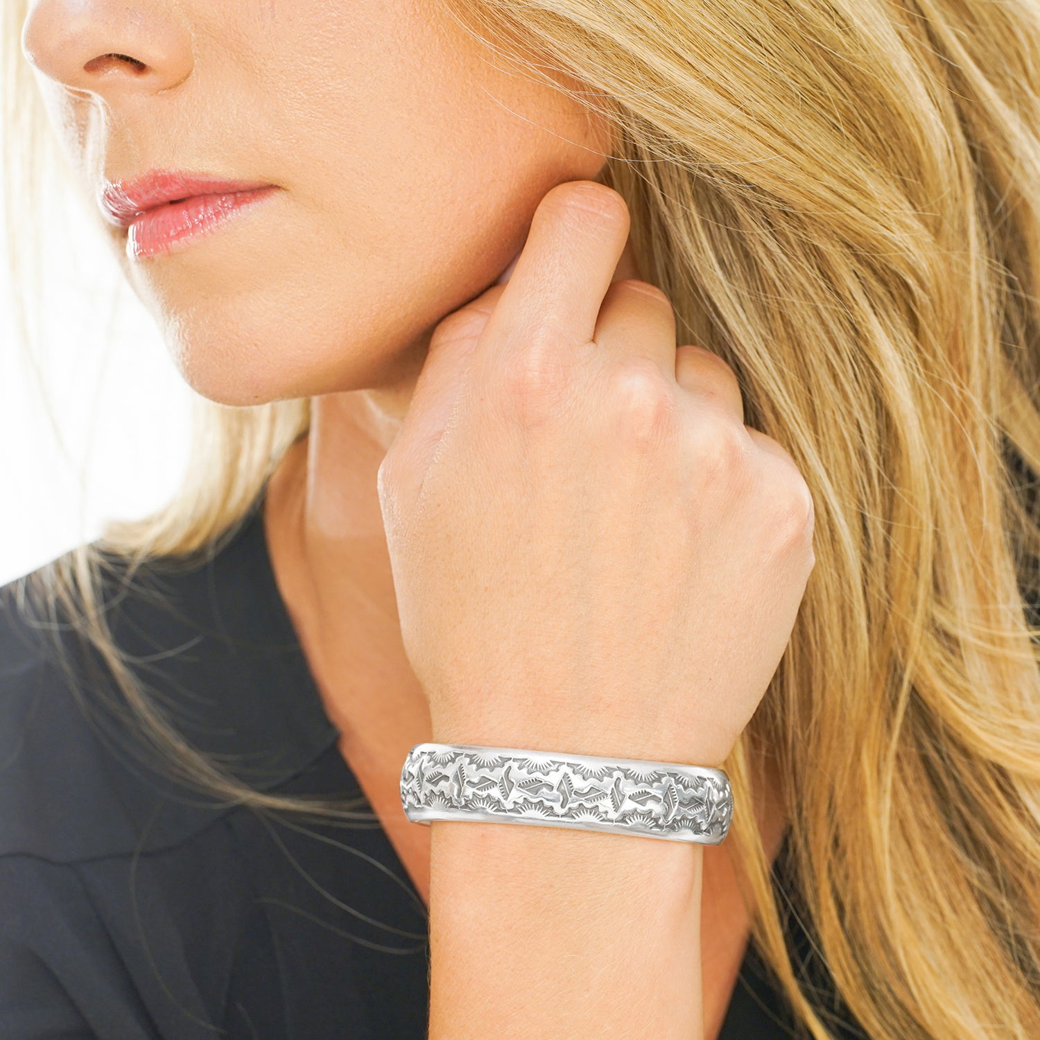 #23040- Verna Tahe Sterling Cuff c1990c Navajo