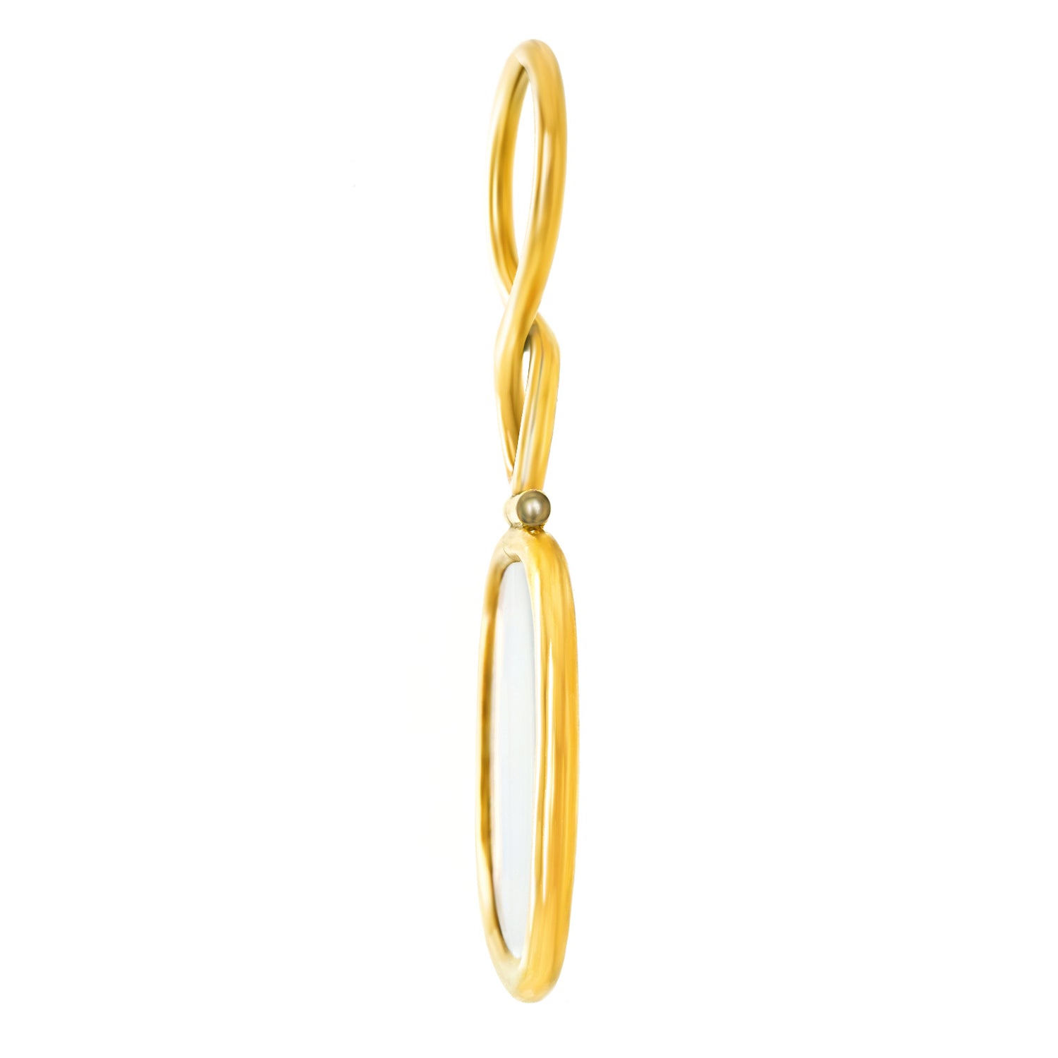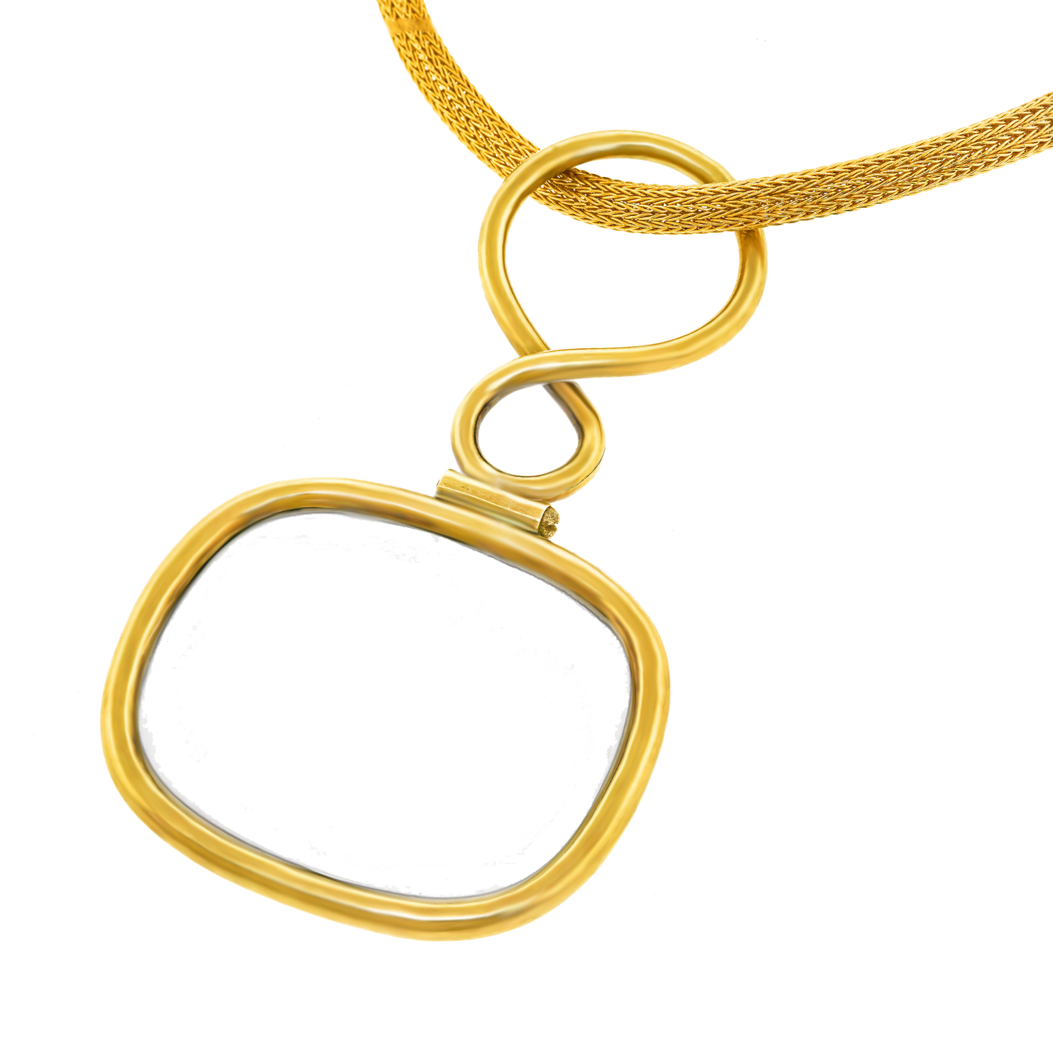 Circa 1900, 14k, American. This charming antique quizzing glass (magnifier), or "quizzer," finds its second life "a la mode" as a charming "found object" pendant. The look is ironically stylish; a sort of Regency London meets the Brooklyn club scene chic! Excellent condition.