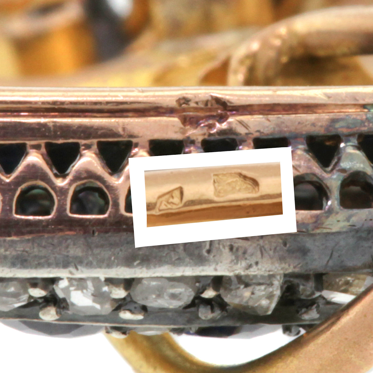 Very good condition. Noted is an earlier replacement of the catch with one that is safer and not removable. Two small appliances remain on the underside, which could have been used to change the use of this piece from a pin to a pendant and possibly other forms.