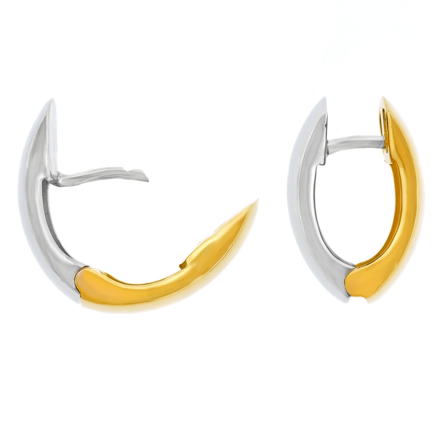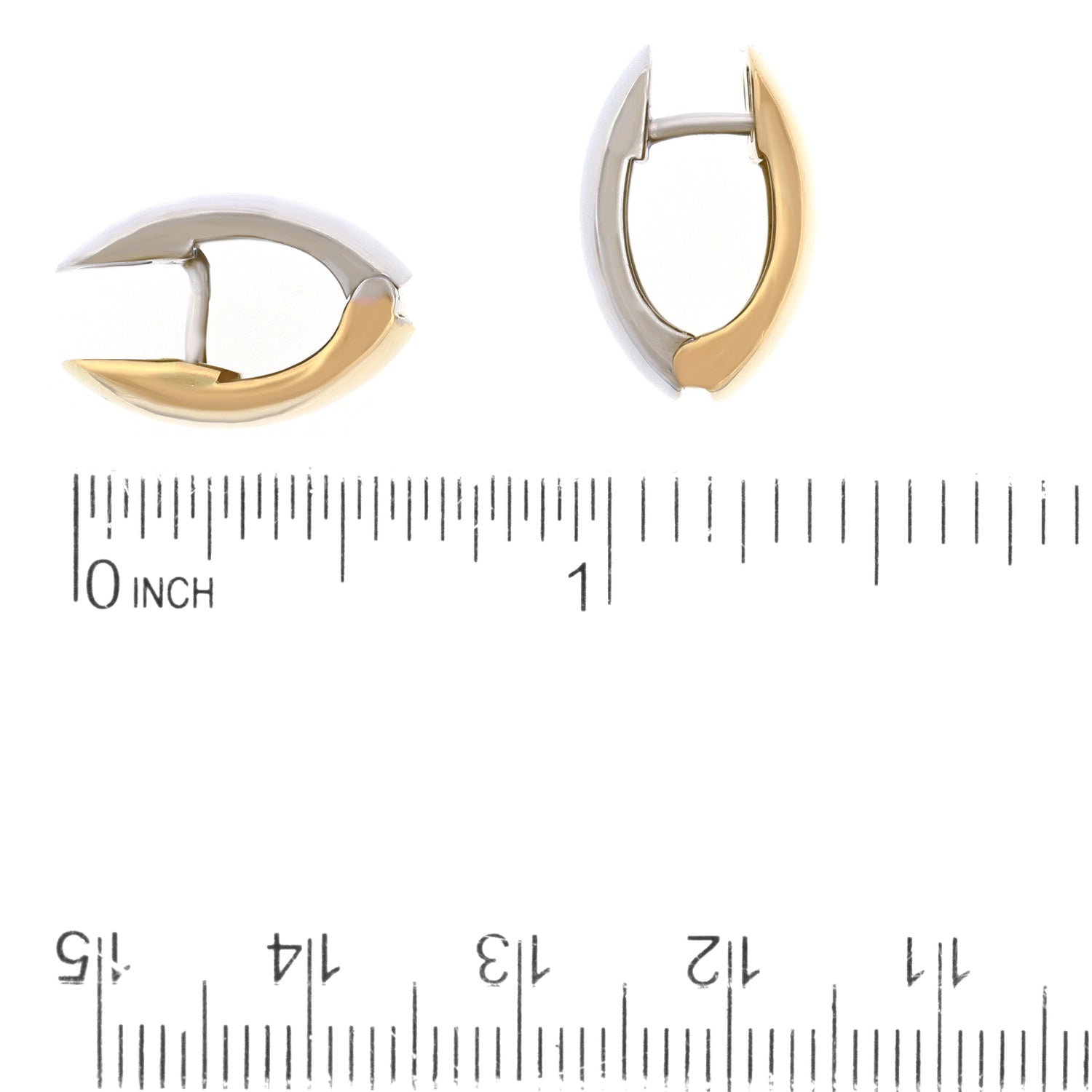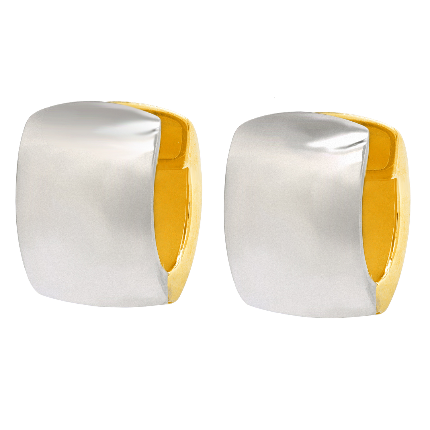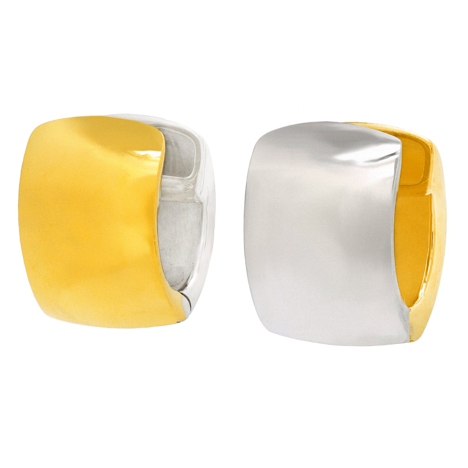 Circa 1980s, 18k, Switzerland. These 18k polished gold modernist earrings are superbly made, brilliantly styled, and eminently wearable. The look is edgy, contemporary eighties chic. Wear them as a white pair, yellow pair, or one of each… negative/positive! Beautifully made, they are comfortable and in excellent condition.