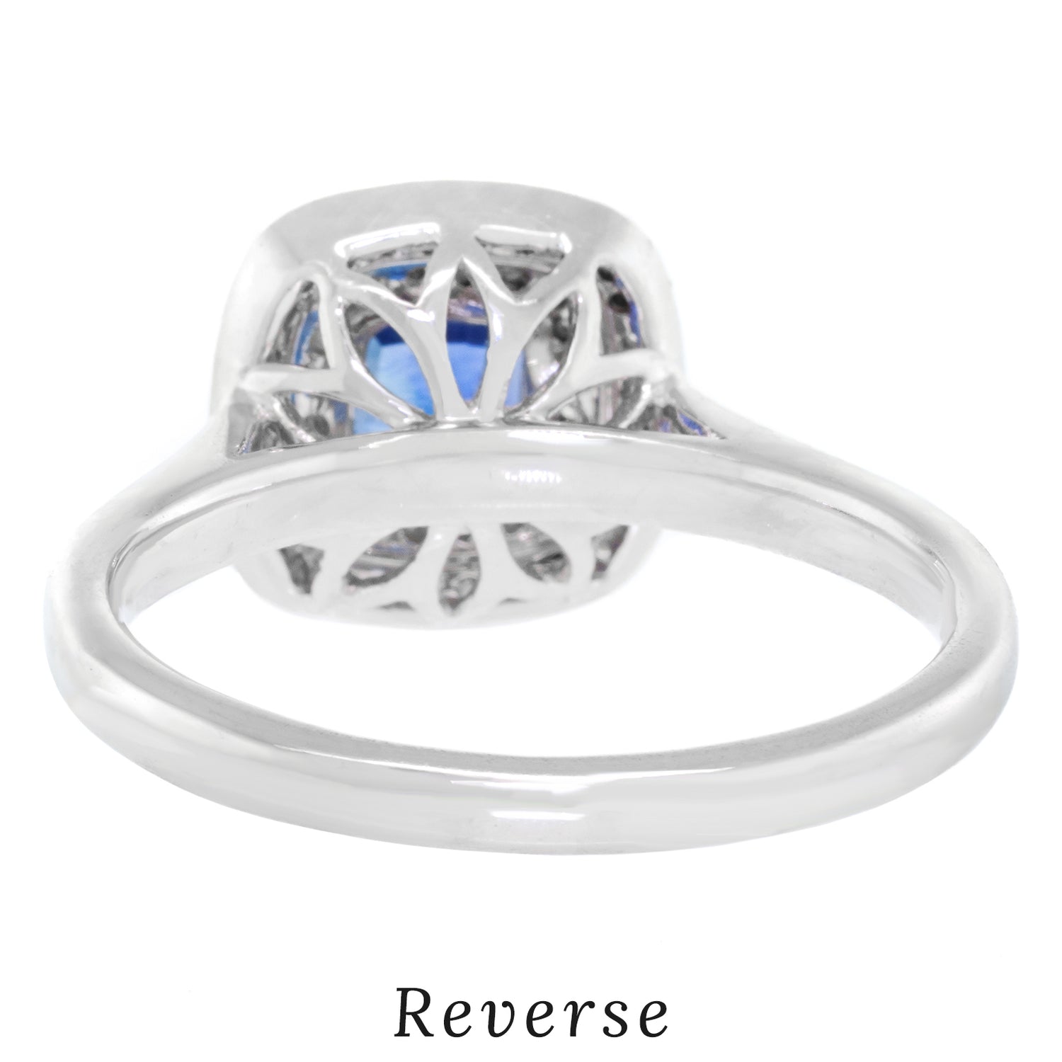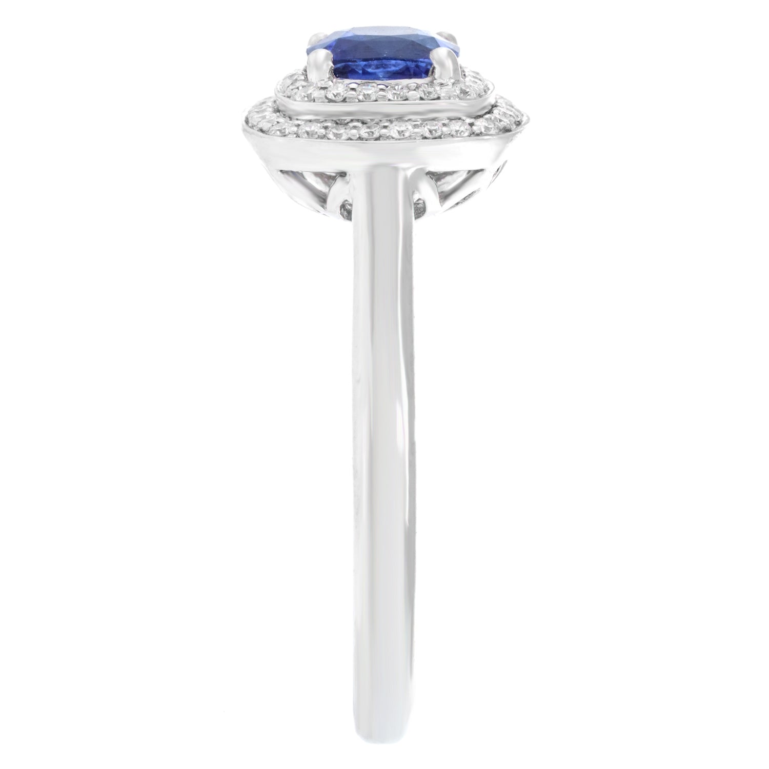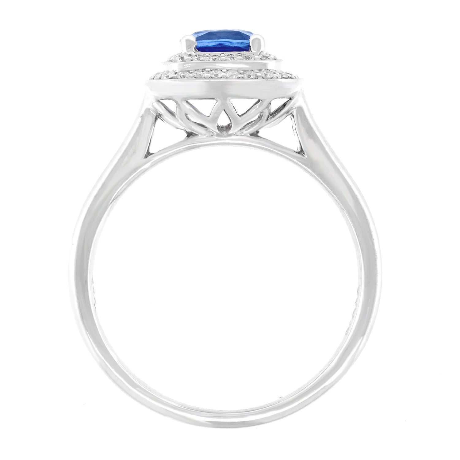 Circa 2000s, 18k, by Spark Creations, New York. The 1.0-carat lush cornflower blue sapphire in this gorgeous 18-karat white gold ring is surrounded by a double row of brilliant white diamonds (.20 carats, G color, VS clarity). Perfect for every day or as an engagement ring, the classic look is underscored by superb fabrication. For over 40 years, Spark Creations, based in New York City, has made spectacular jewelry. Excellent condition.