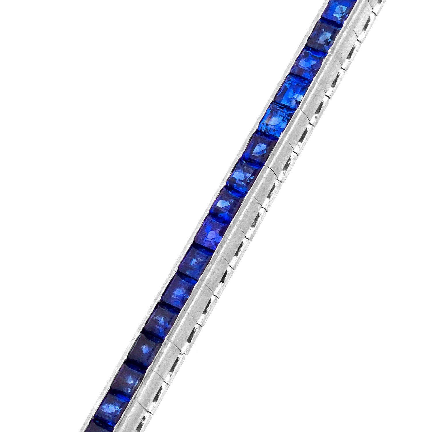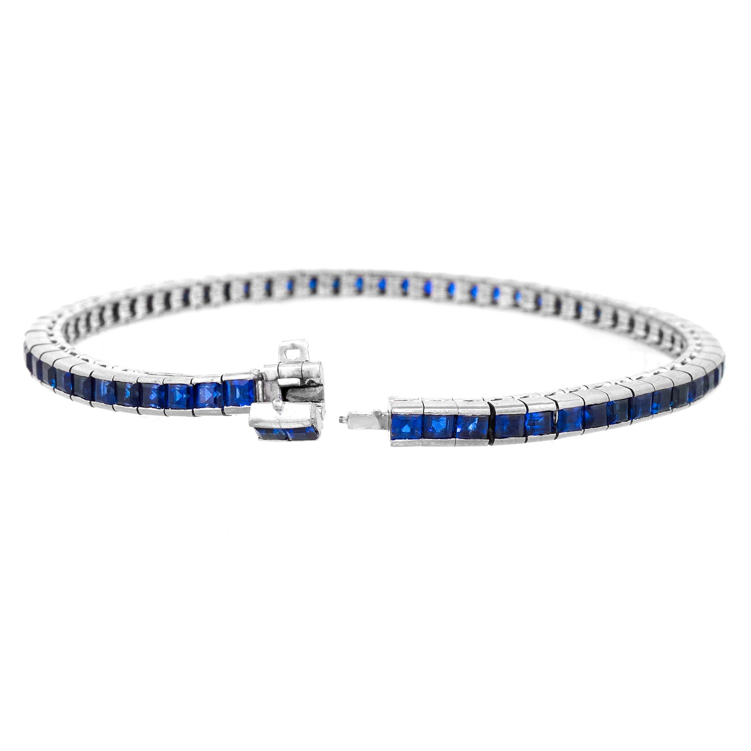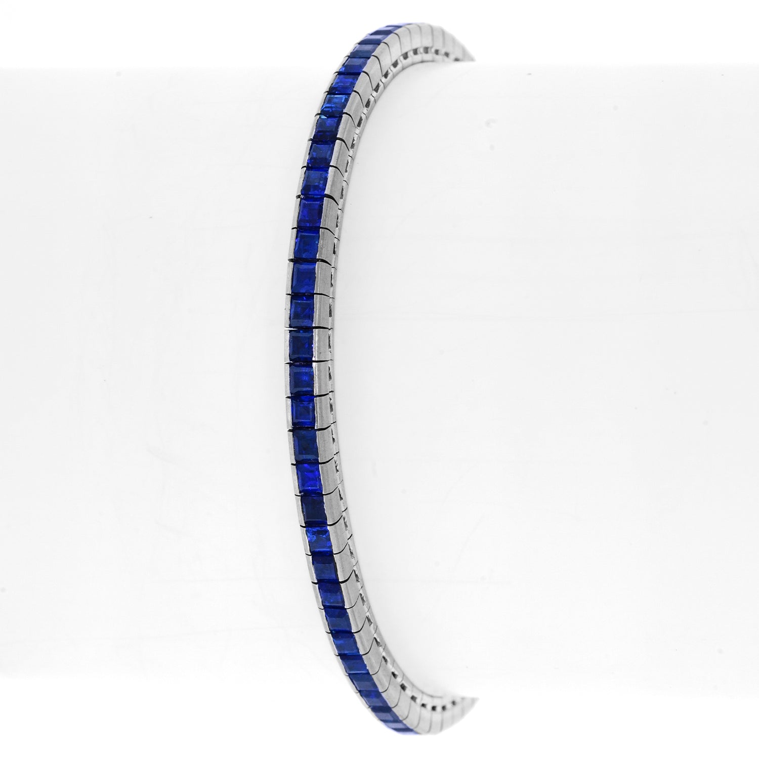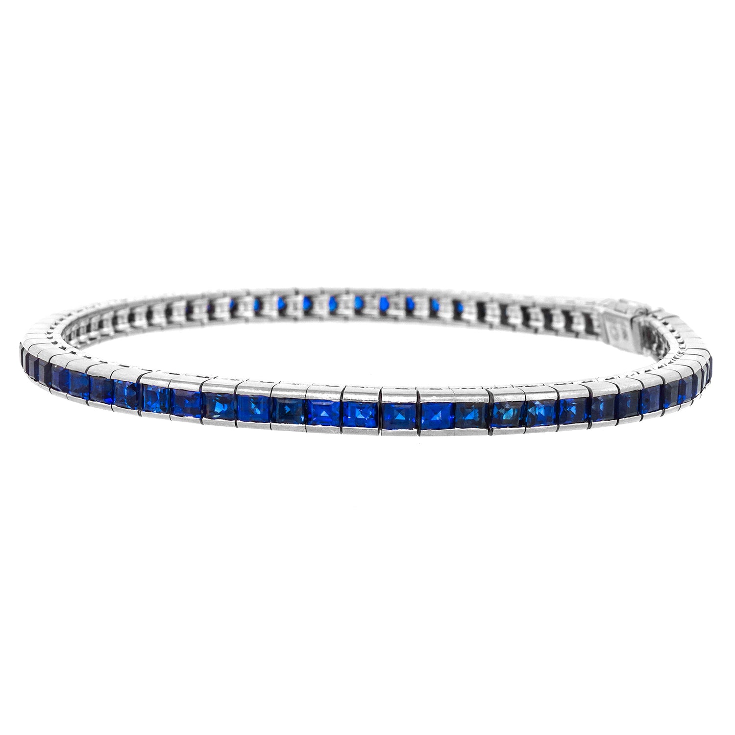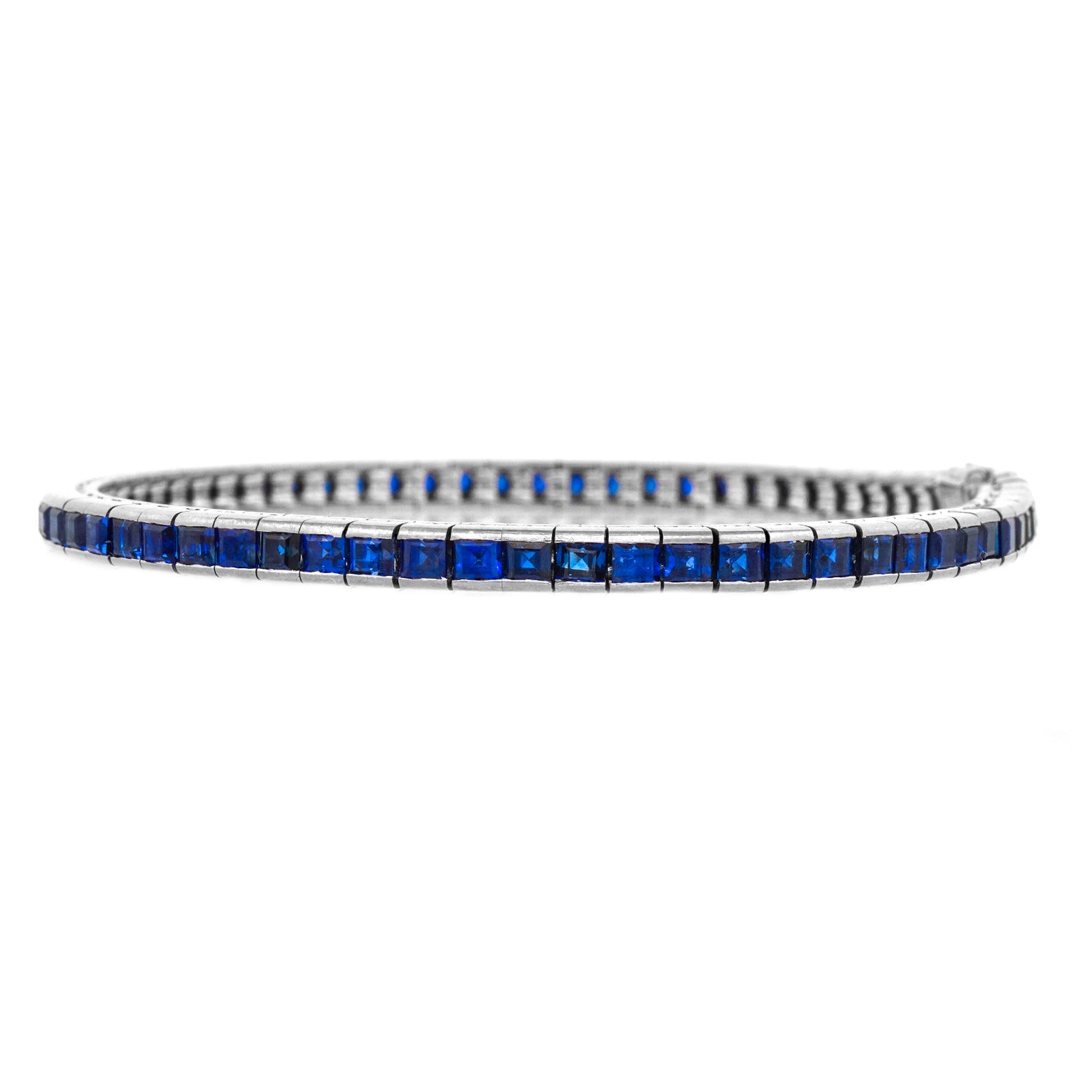 Circa 1960s, 18k, by Gubelin, Switzerland. Simple and elegant, this gorgeous line bracelet is all about the sublime 7.70 carats of cornflower blue sapphire.  Renowned for quality design and meticulous fabrication, Gubelin's mastery of casual perfection is on display in this bracelet. Excellent condition.