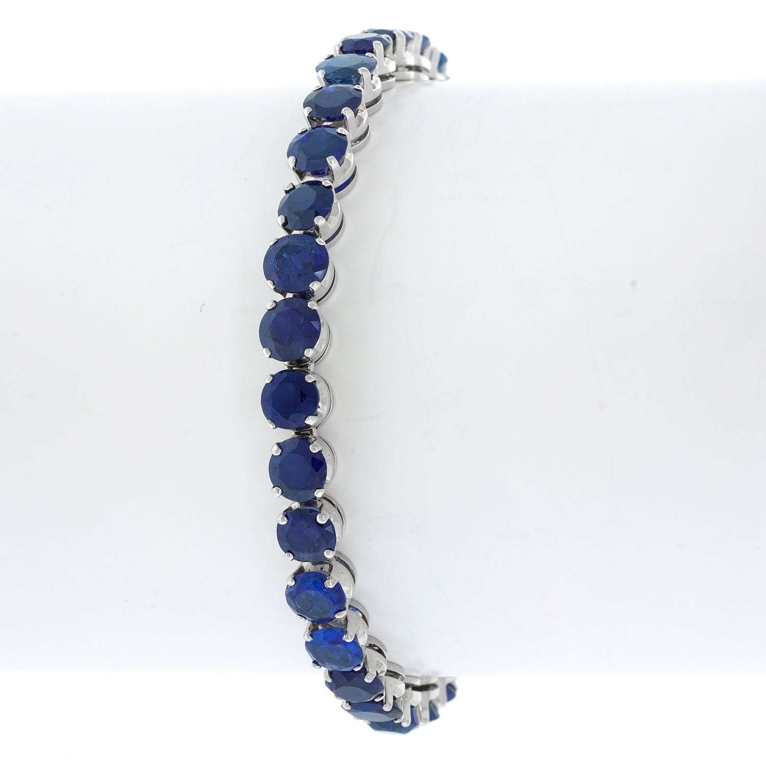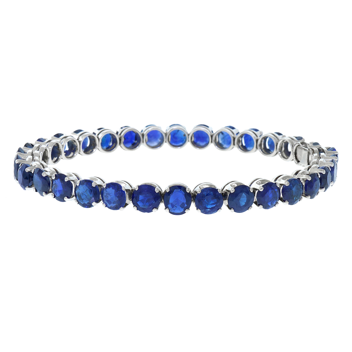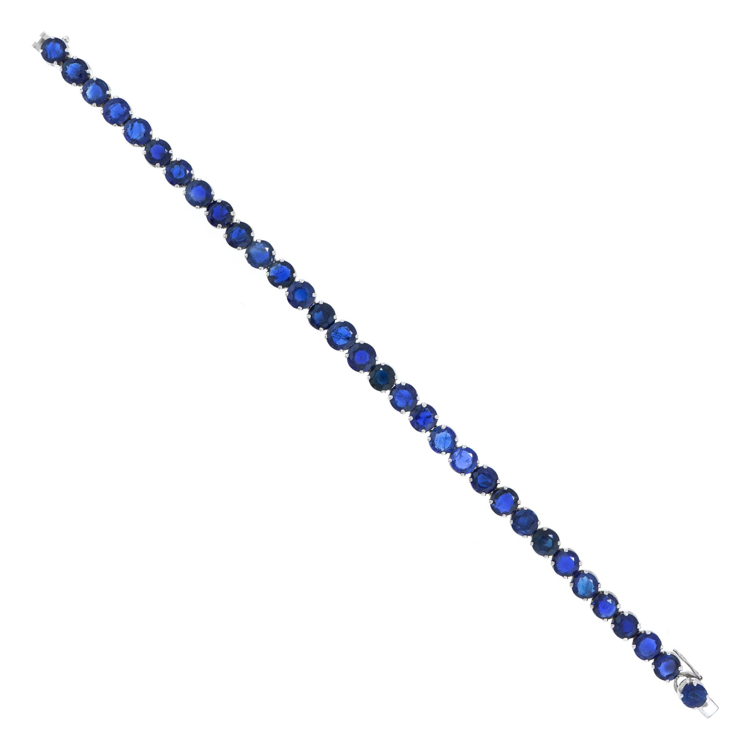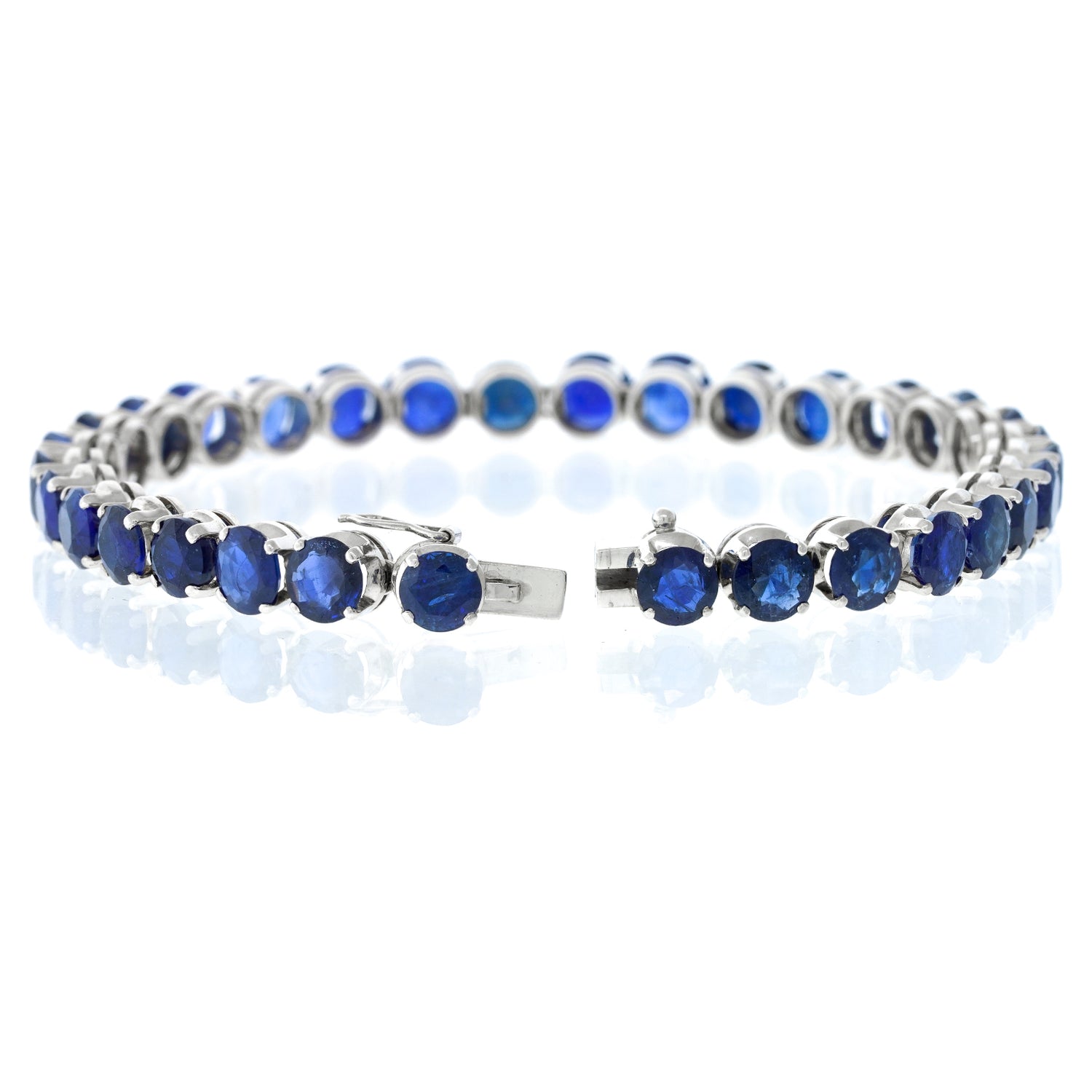 Circa 1970s, 18k. Colorfully elegant, this gorgeous line bracelet is all about the 16.0 carats of fine blue sapphires. Set in eighteen-karat white gold, this well-made bracelet is the perfect everyday, everywhere jewel. Sublime on its own, great paired with other bracelets, or very chic next to your watch for a multiples look. Excellent condition.