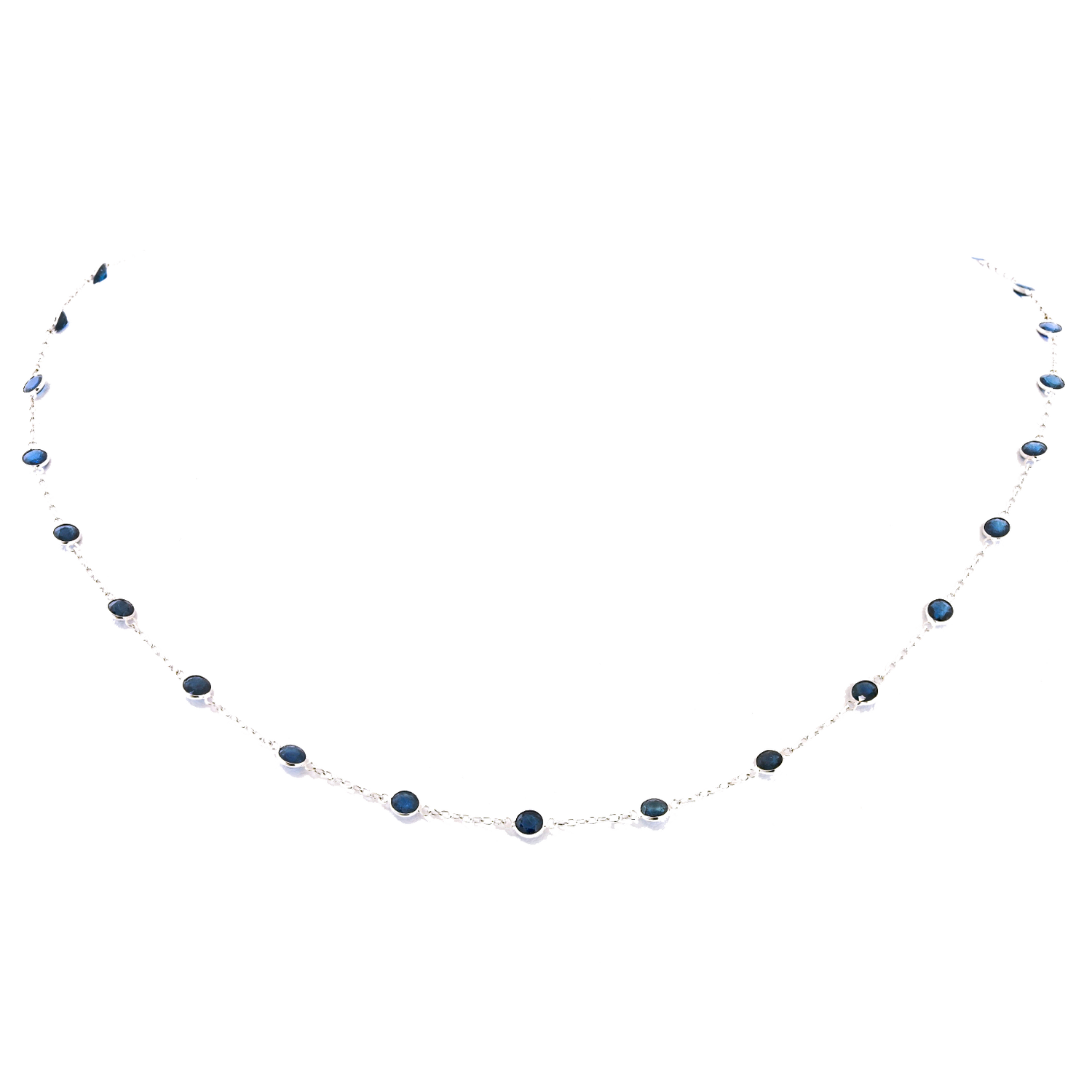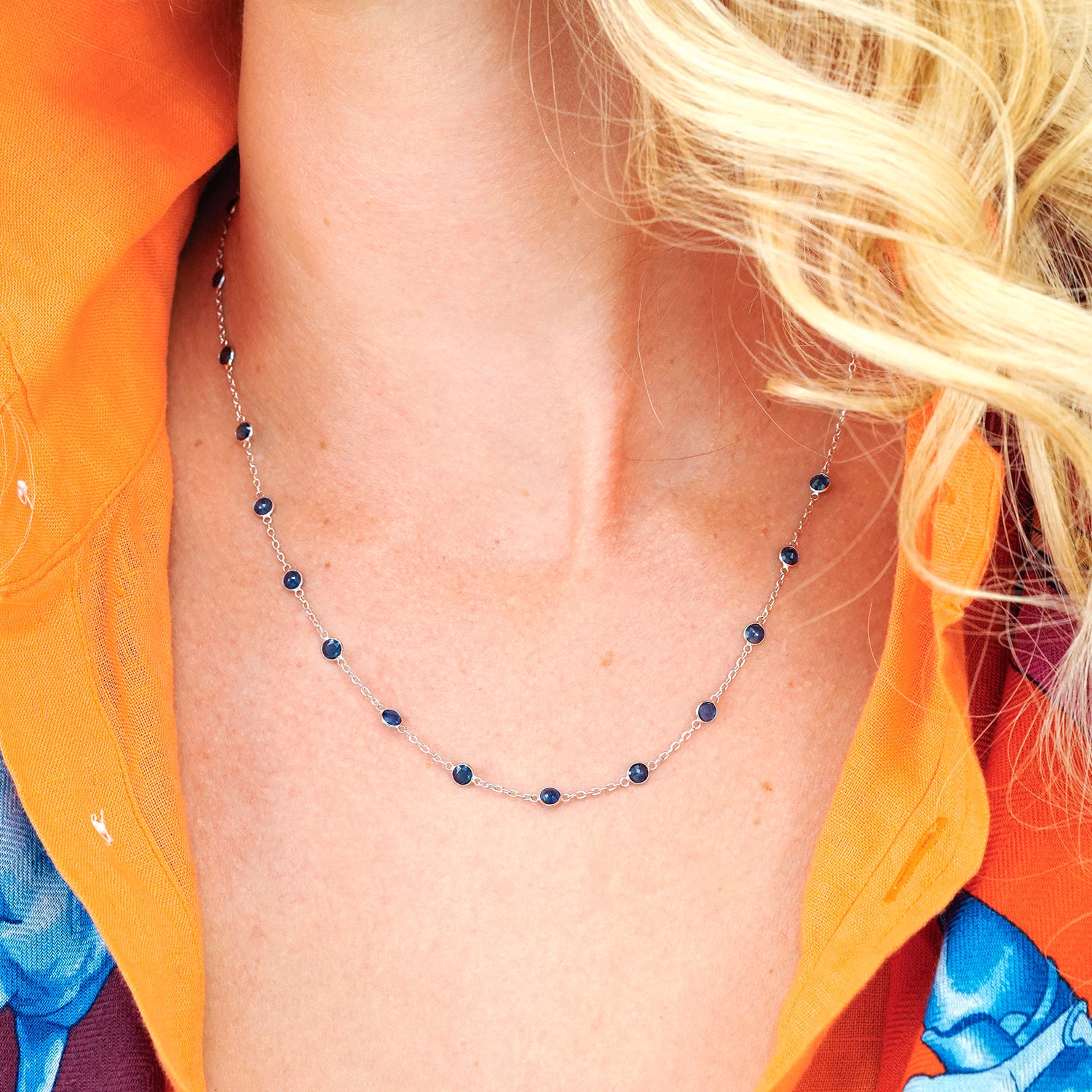 Circa 1980s, 18k, Swiss. New millennium fashion meets twenties chic in this 18-inch sapphire-strewn necklace. Perfect anytime, anywhere, it features 5.60 carats of intense cornflower blue sapphires. Finely constructed in 18k yellow and white gold, it is in excellent condition.