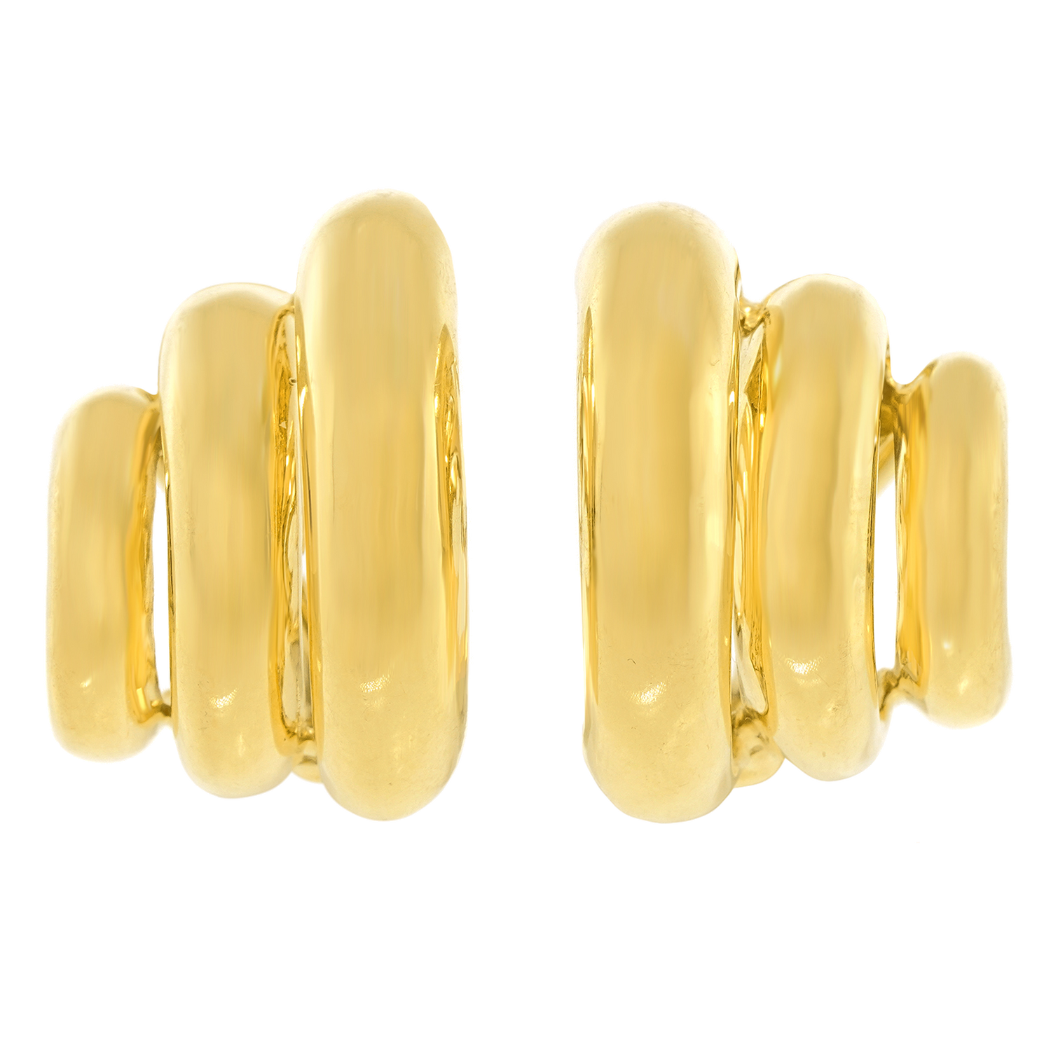 Circa 1990s, 18k, by Seaman Schepps, American. The mousetrap design was one of Seaman Schepps most iconic designs. This pair of eighteen-karat yellow gold earrings are timeless chic at its American girl best. Well made and in excellent condition, this pair was made in the nineties. The design is still proudly featured in their collection to this day.