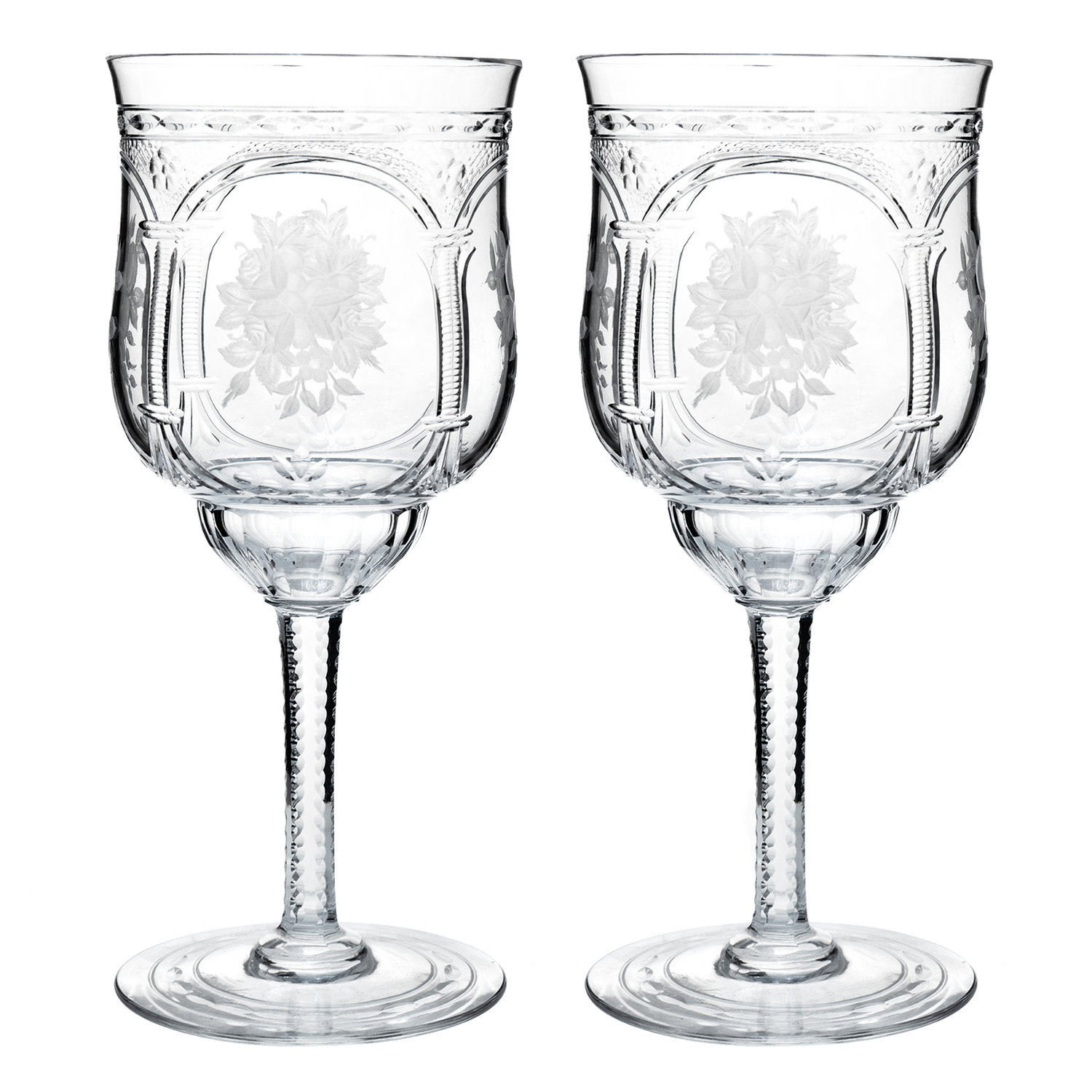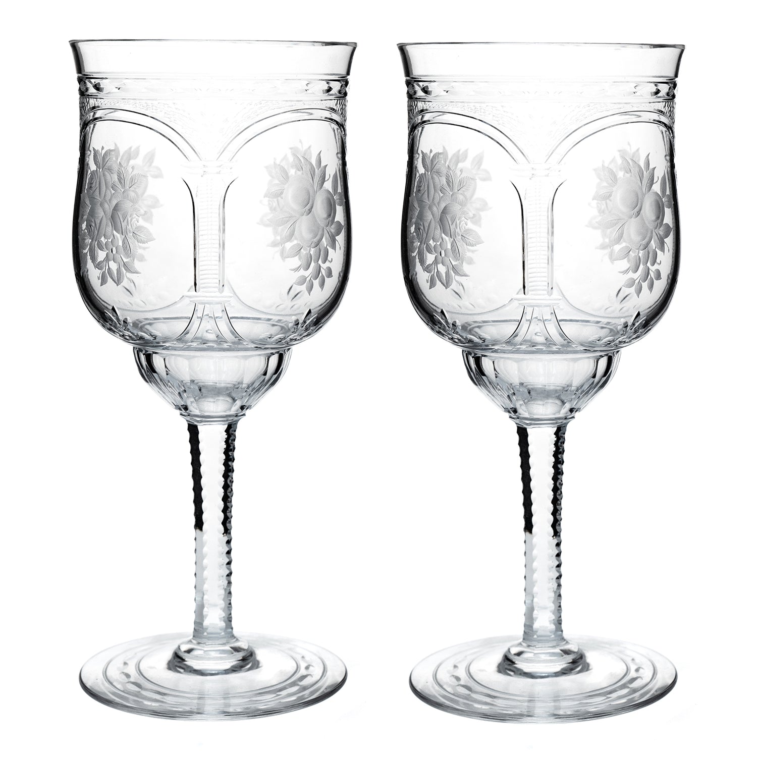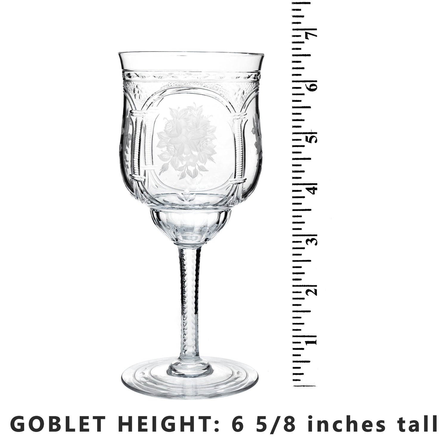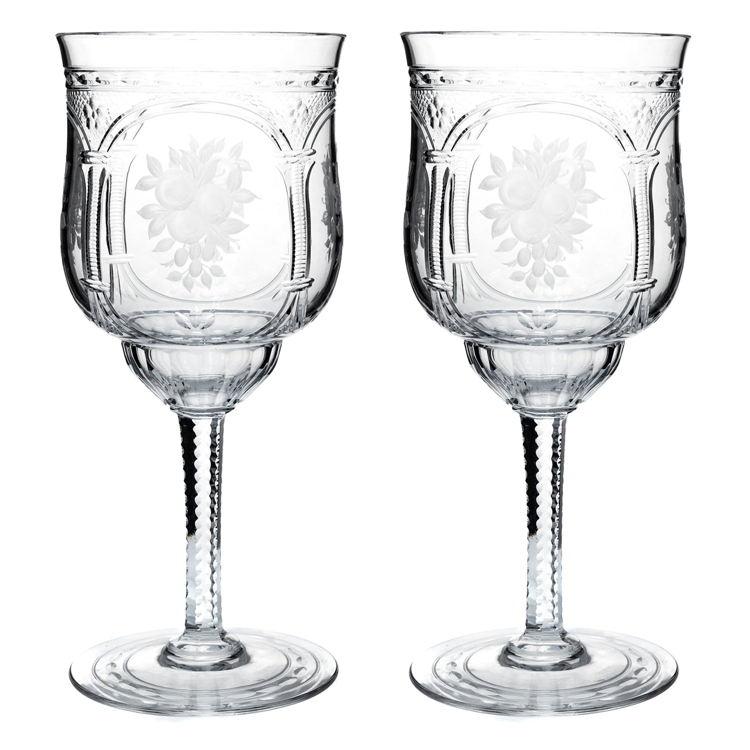 Circa 1890-1900, by Baccarat, France. This set of 12 magnificent late-nineteenth-century crystal water goblets by Baccarat is perfect for any décor or table. Today more commonly used for wine, they showcase the sublime design work and superb craftsmanship of France's finest glass house. They are exquisitely detailed with neoclassical columns and graceful arches that frame delicate vignettes of fruited bounty. Excellent condition.