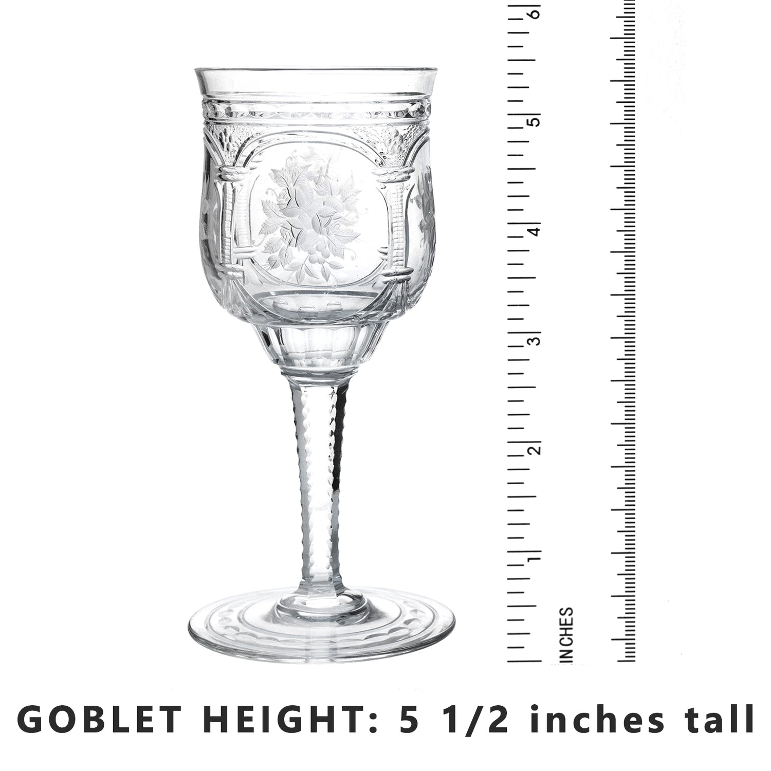 12 clear wine goblets, 5 ½ inches tall by 2 1/2 inches wide
