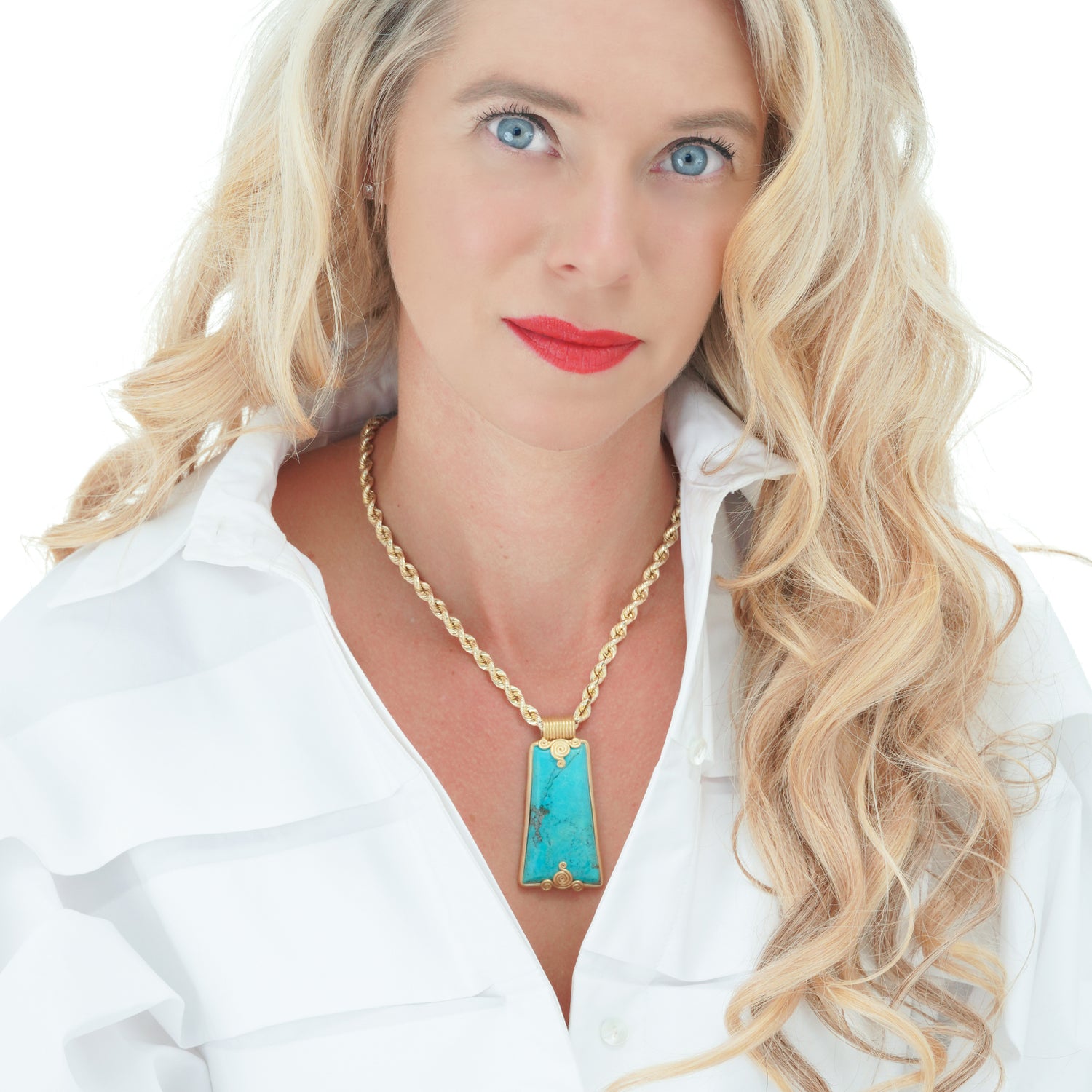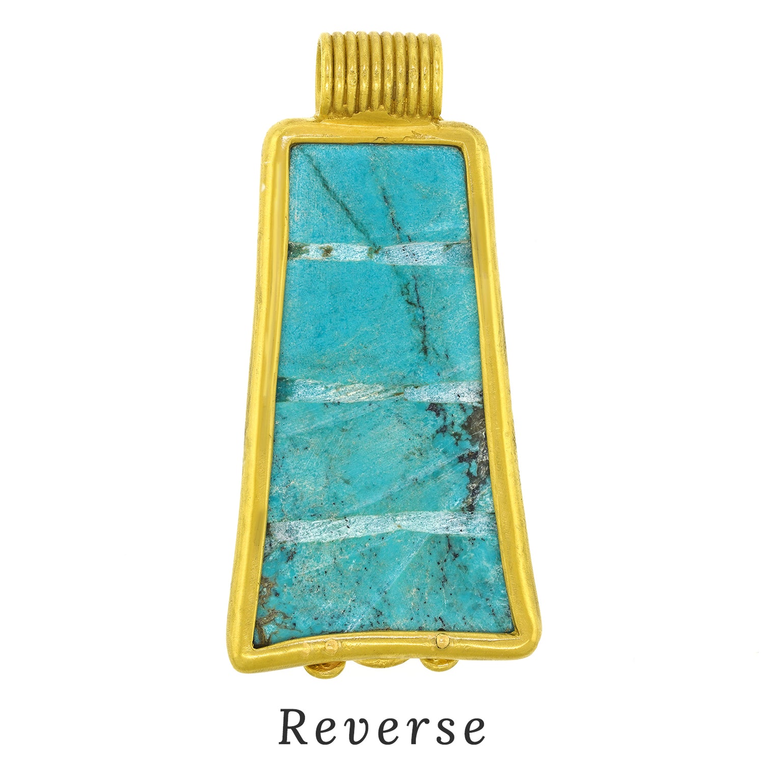 Seventies Archaic Motif Turquoise-set Gold Pendant