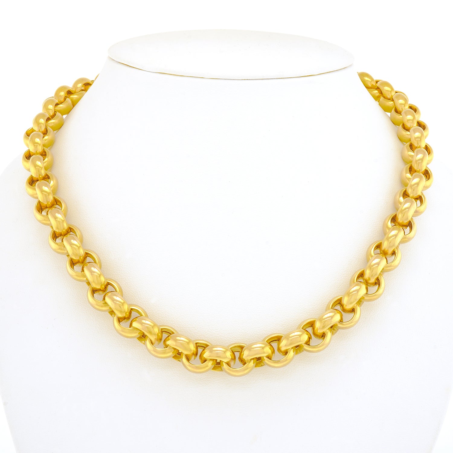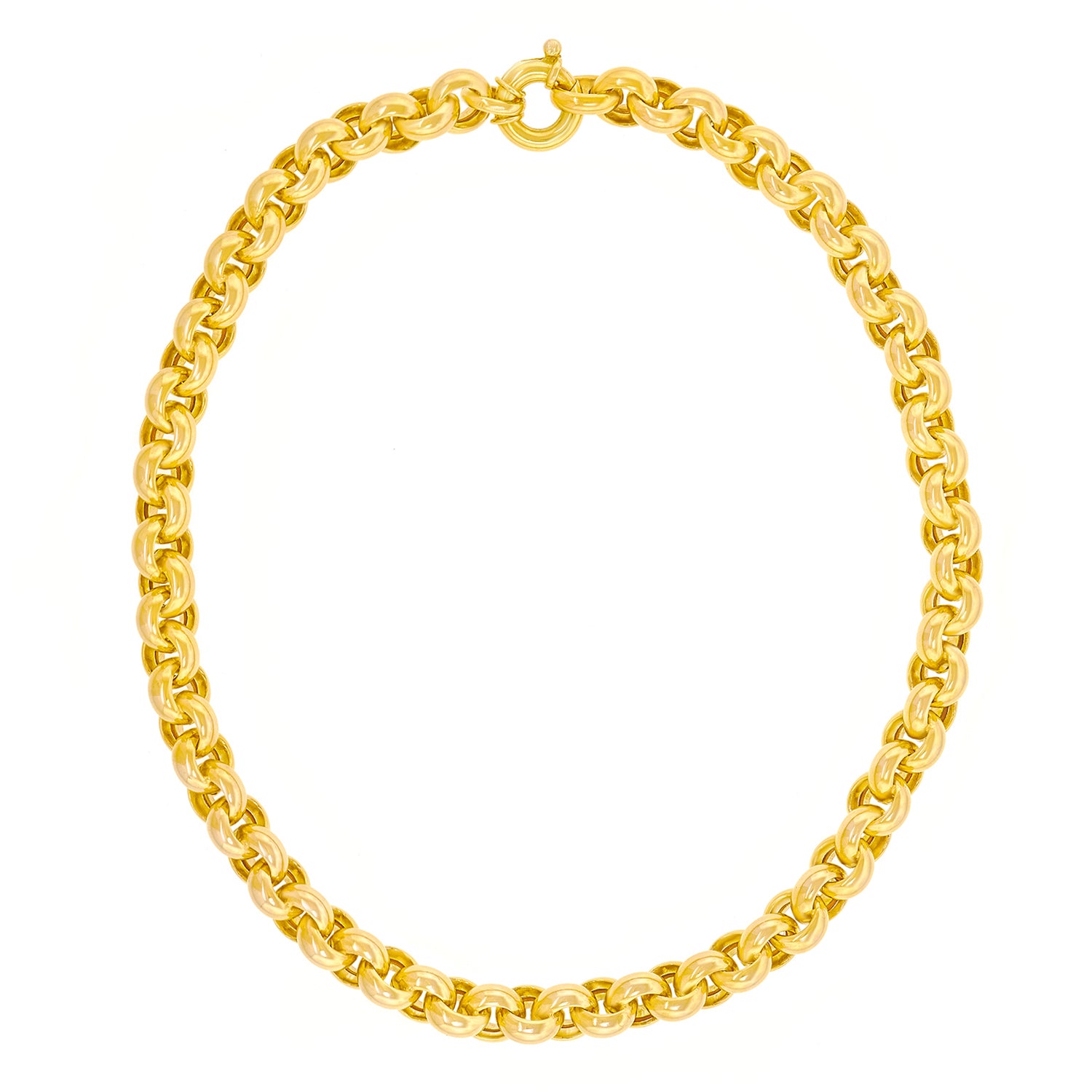 Circa 1970s, 14k, Italy.  The perfect everyday necklace, this Italian rolo link has a robust chunkiness that is pleasing to the touch and agreeable to the eye. Substantial and well-made in 14k yellow gold, it is comfortable to wear and in excellent condition.
