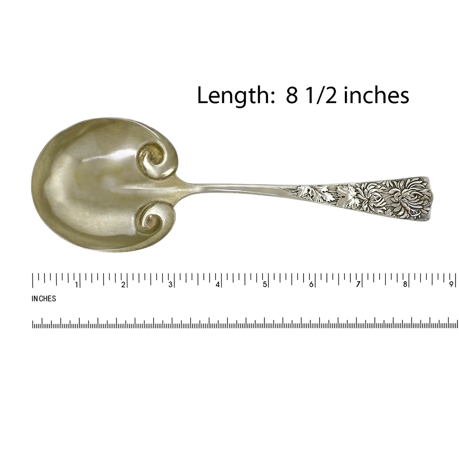 Circa 1885, Sterling, by George W. Shiebler. Excellent condition with no monogram in the beautiful Chrysanthemum pattern. Light gold wash on the bowl.