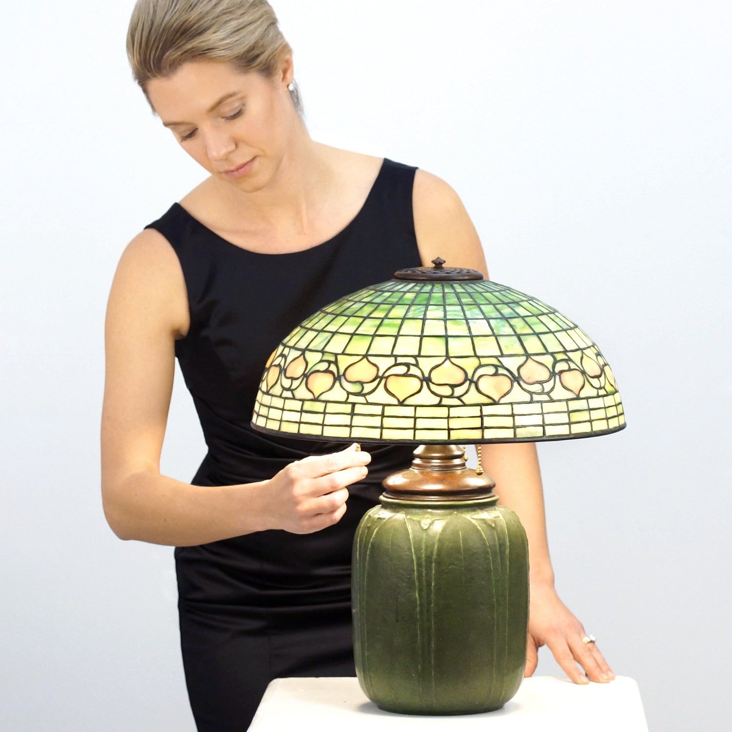 #13349 - Signed Tiffany Studios Leaded Glass Acorn Lamp with Grueby Base