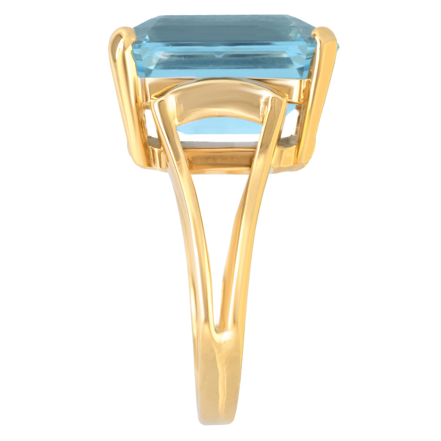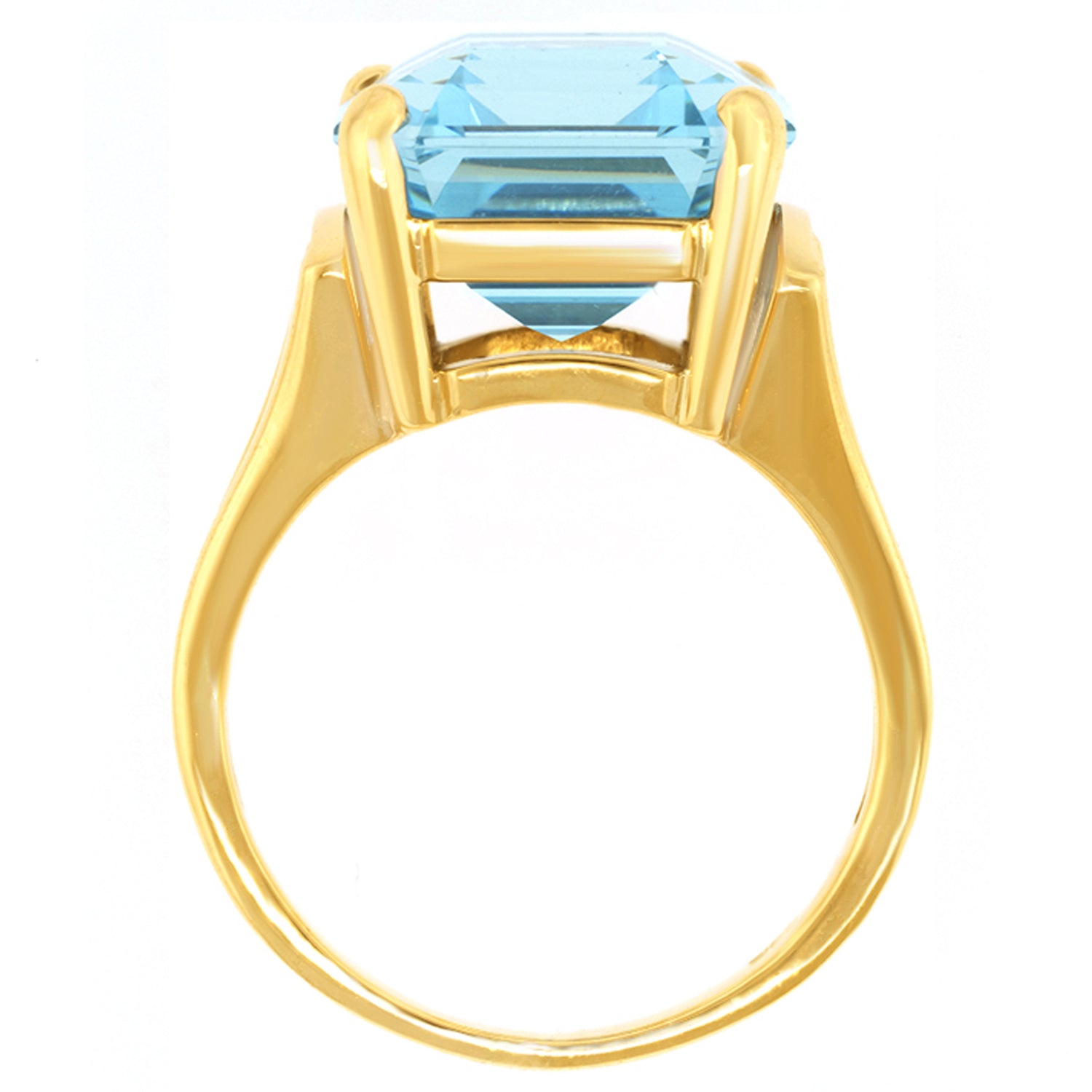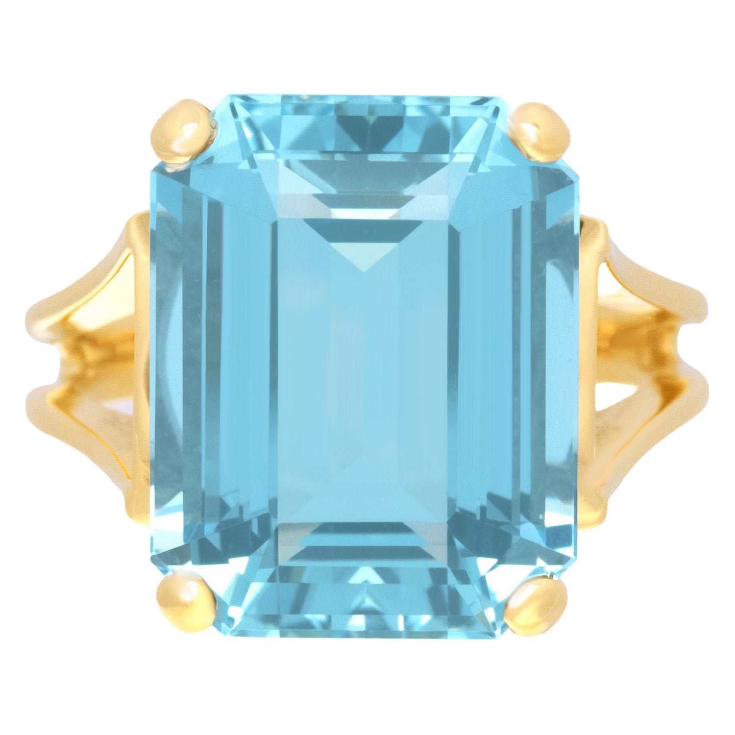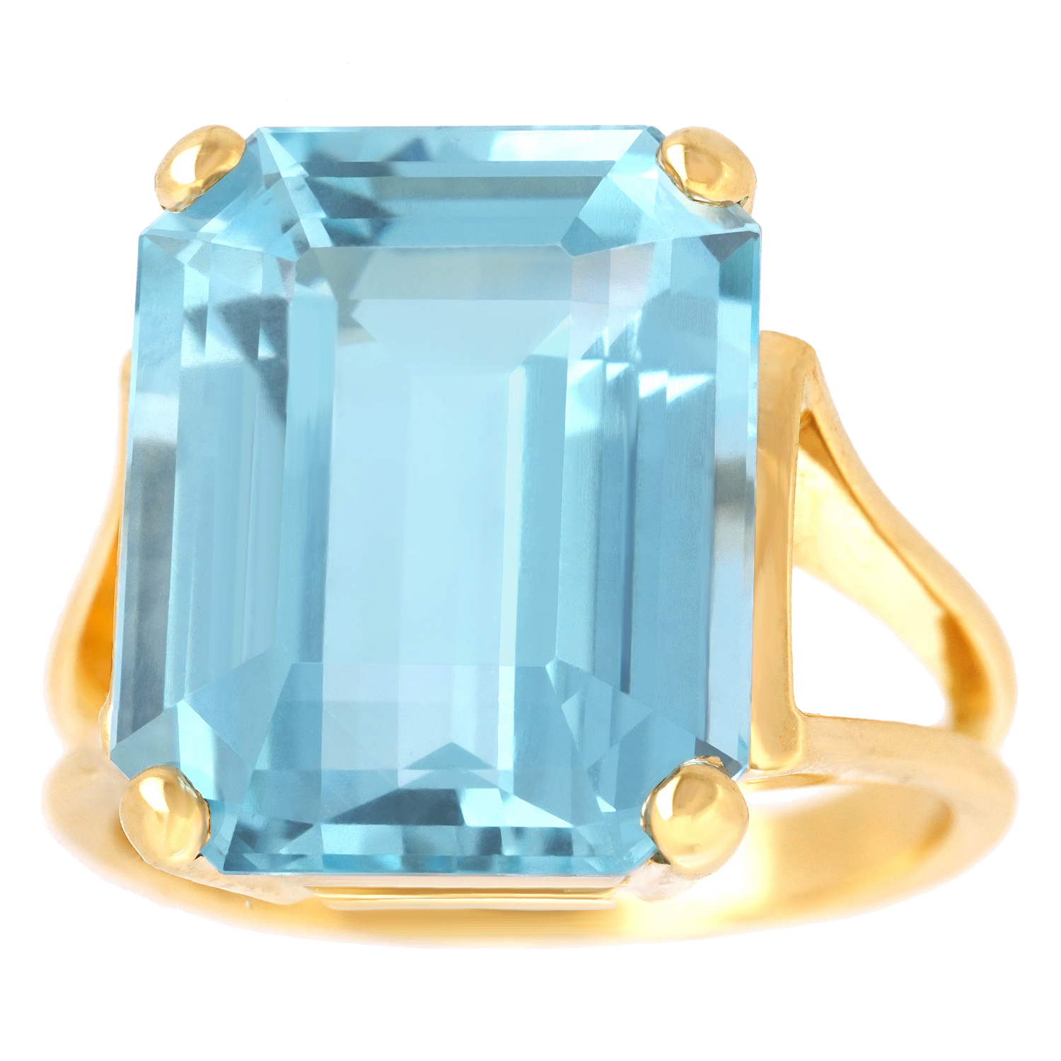 Circa 1960s, 14k, American. From the catwalk to the sidewalk, this fashionable, gemmy, sixties ring is American girl glamour at its colorful best! Set with a delicately-hued deeper blue 11.0-carat aquamarine, it is well made in 14k yellow gold. Excellent condition.