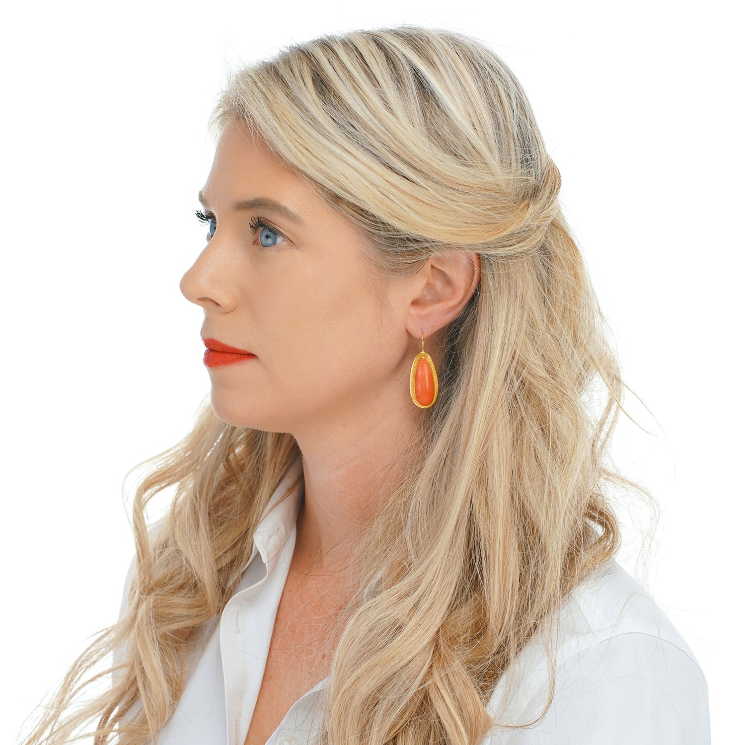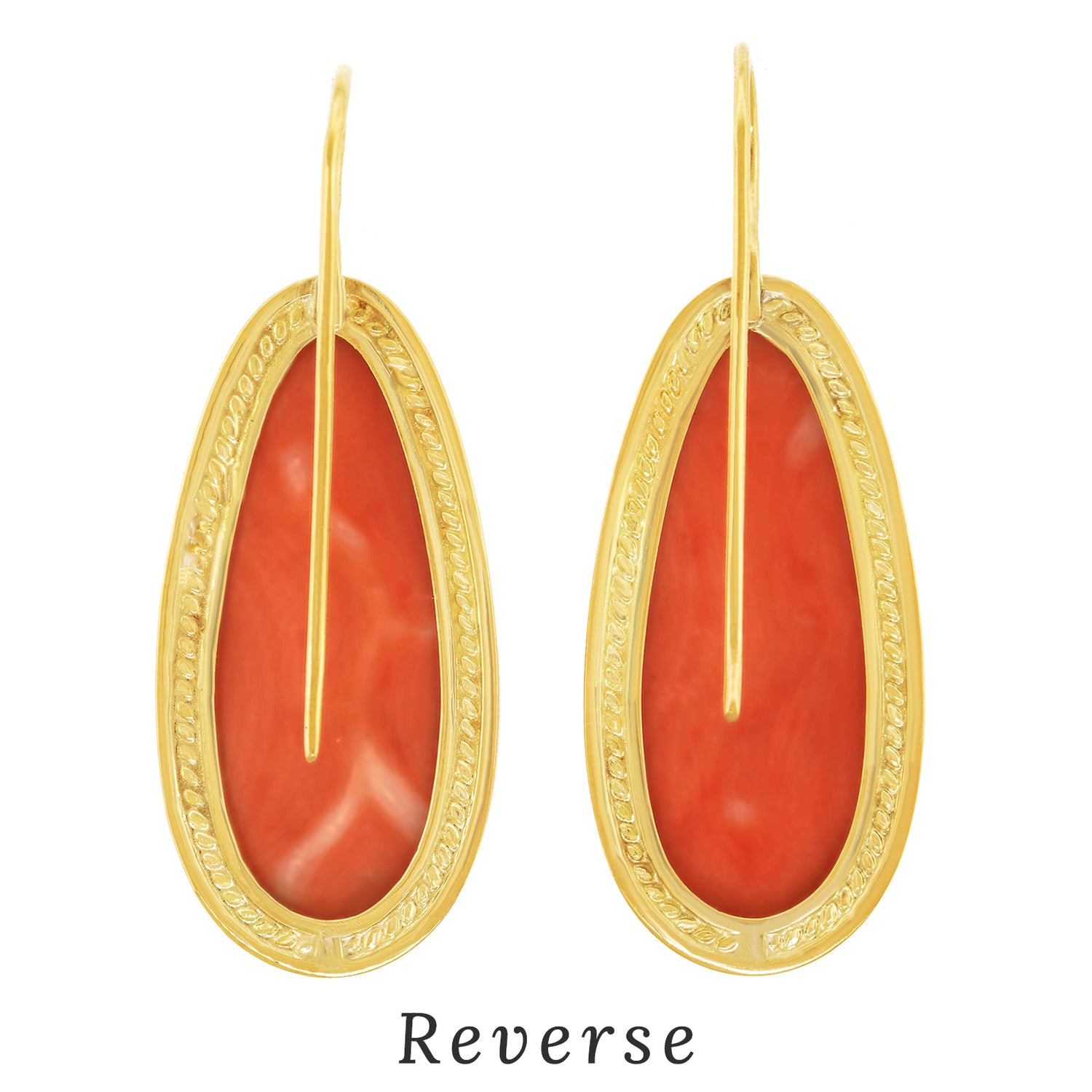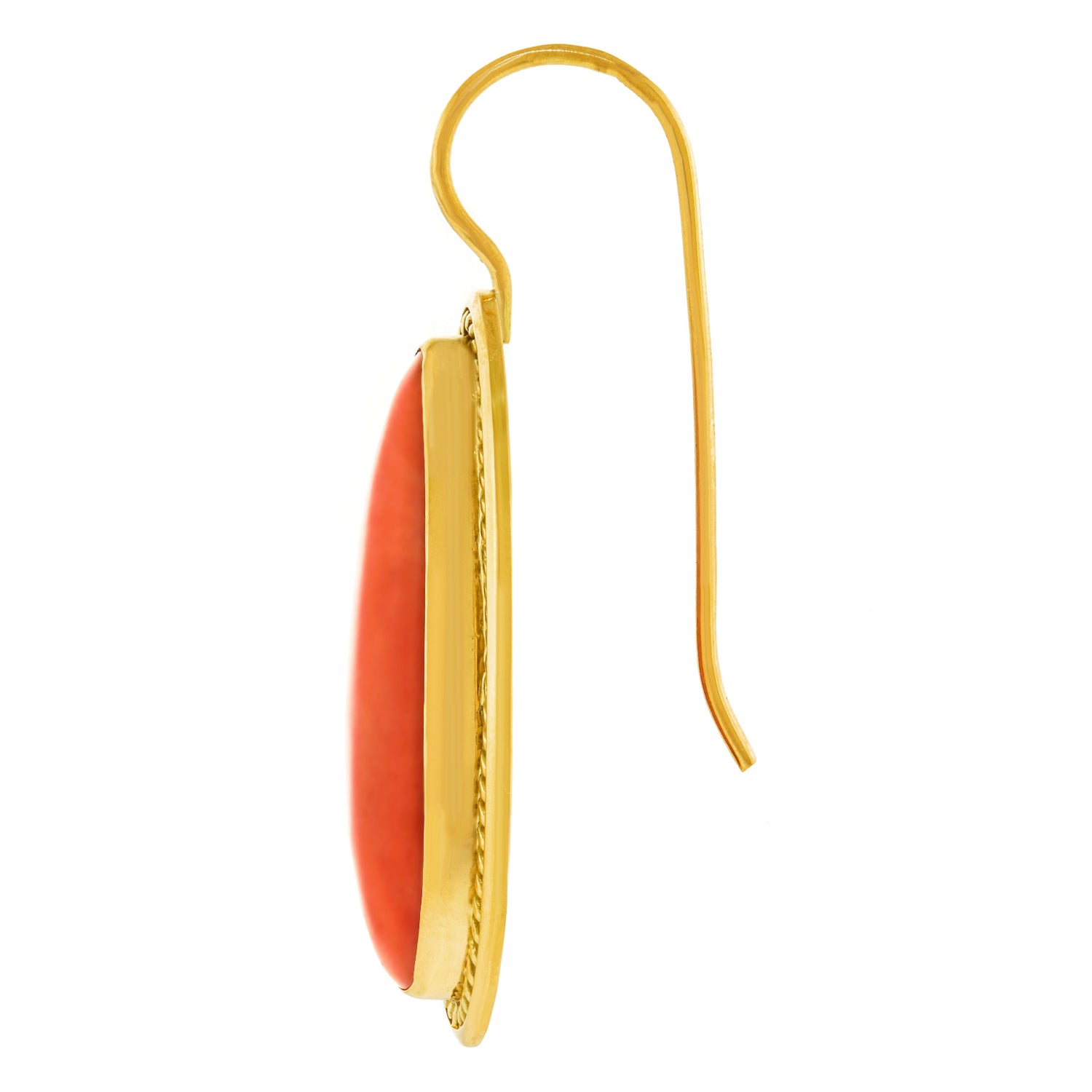 Circa 1960s, 18k, attributed Italy. Set in 18k gold cable-twist frames, these gorgeous coral earrings are classic sixties style. Simplicity, color, and movement are the essence of their look. Finely fabricated, they are in excellent condition.