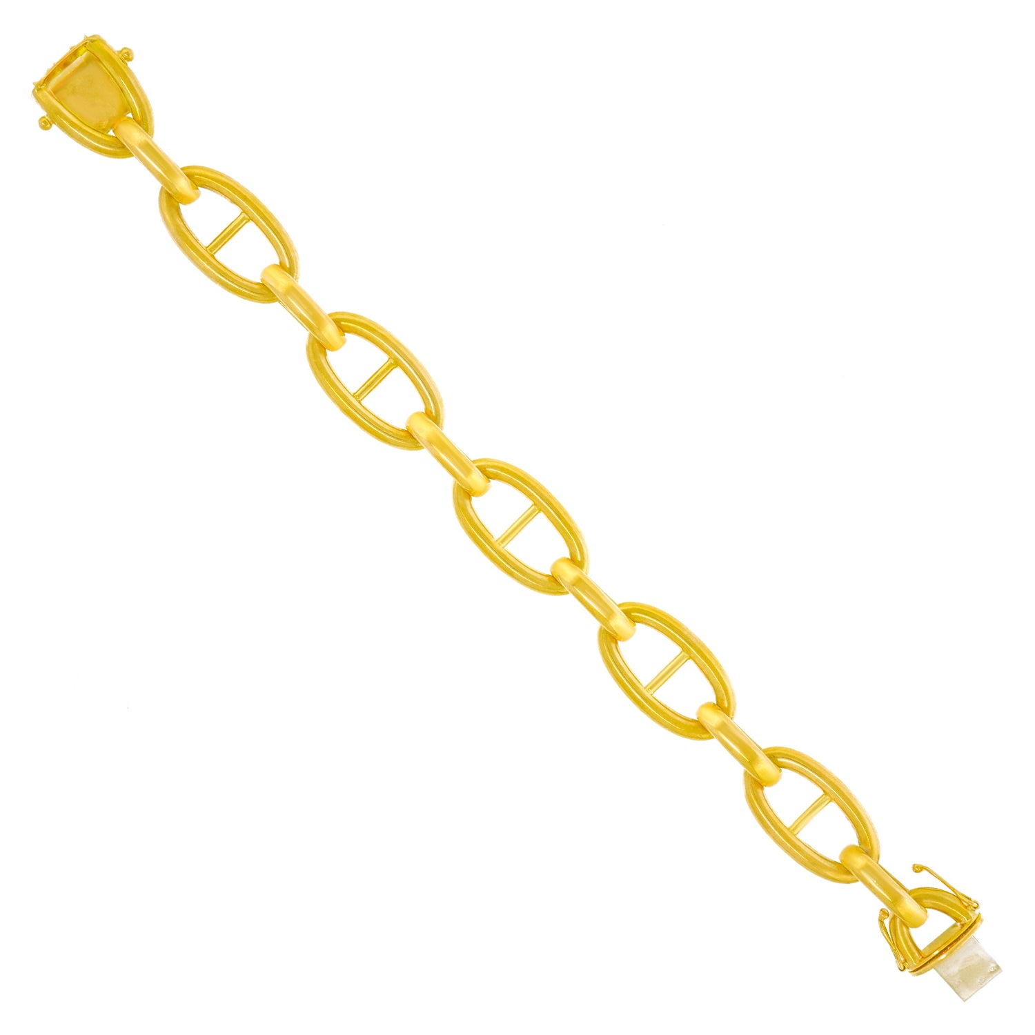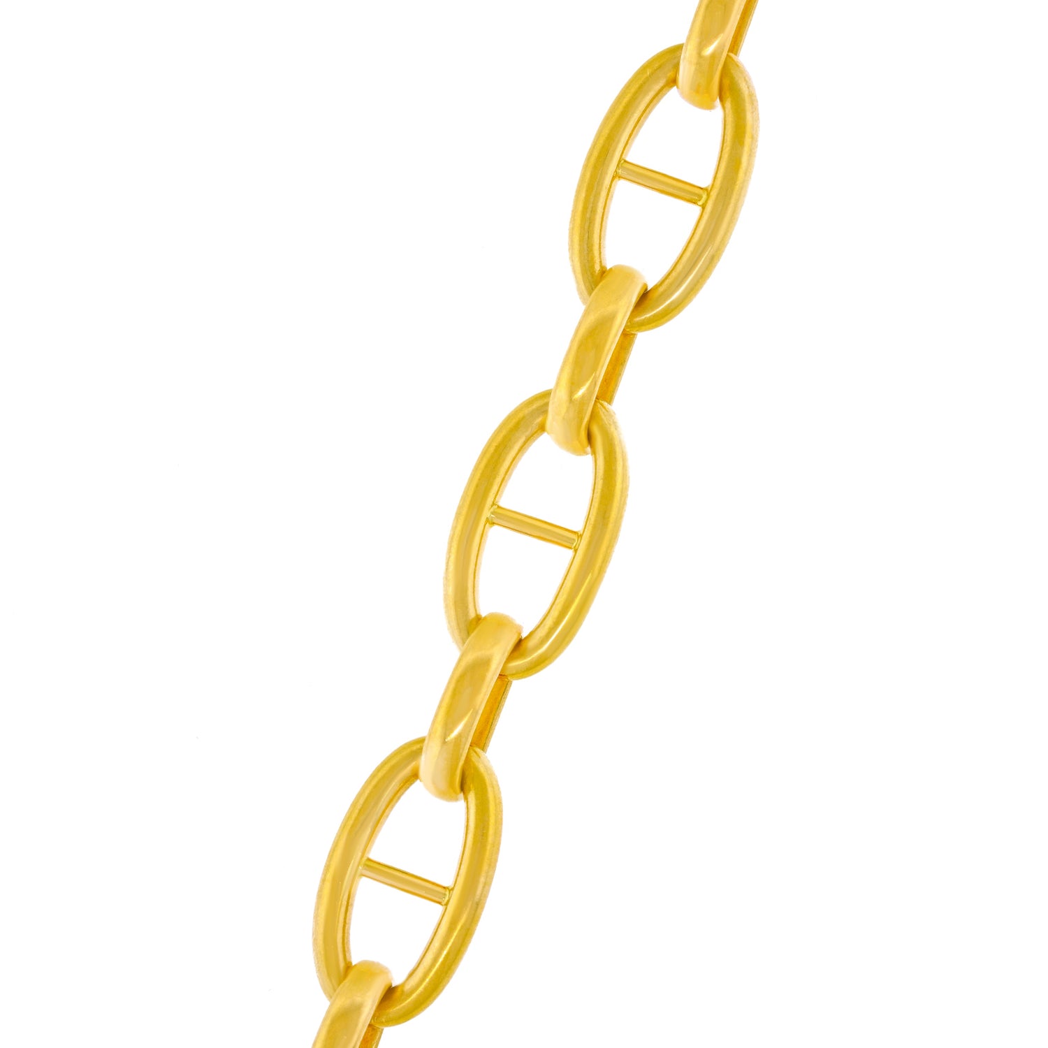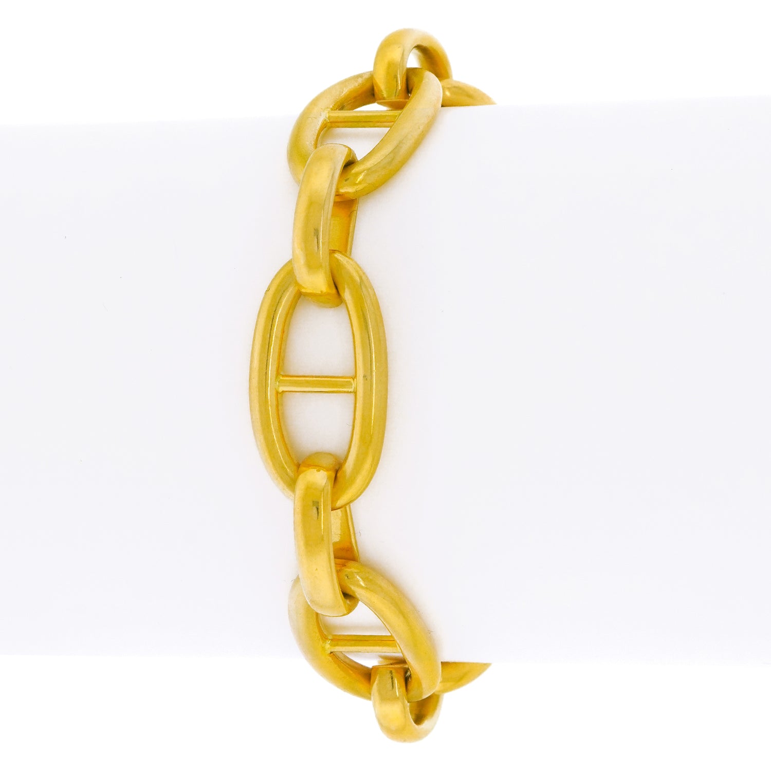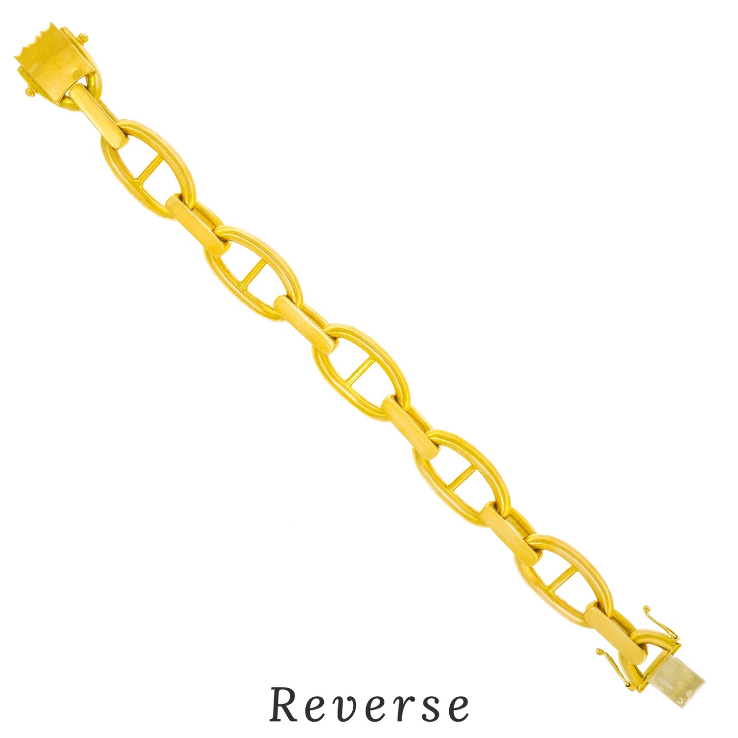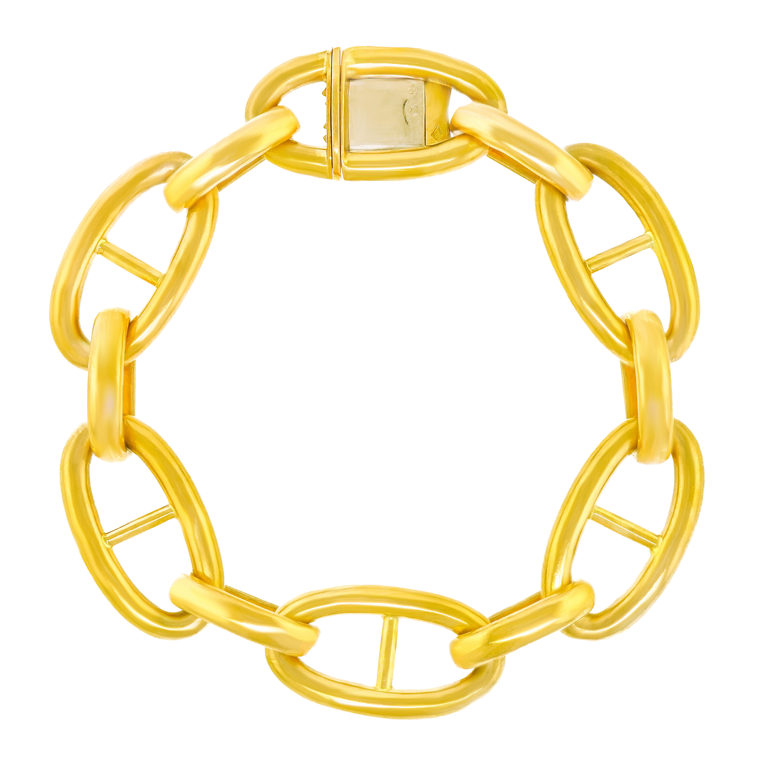 Circa 1960s, 18k, by Gay Freres, France. This phenomenal 18k yellow gold bracelet is the epitome of everyday French chic. Its classic anchor chain motif is pleasing to the hand and agreeable to the eye. This Parisian jewel is beautifully made and in excellent condition.