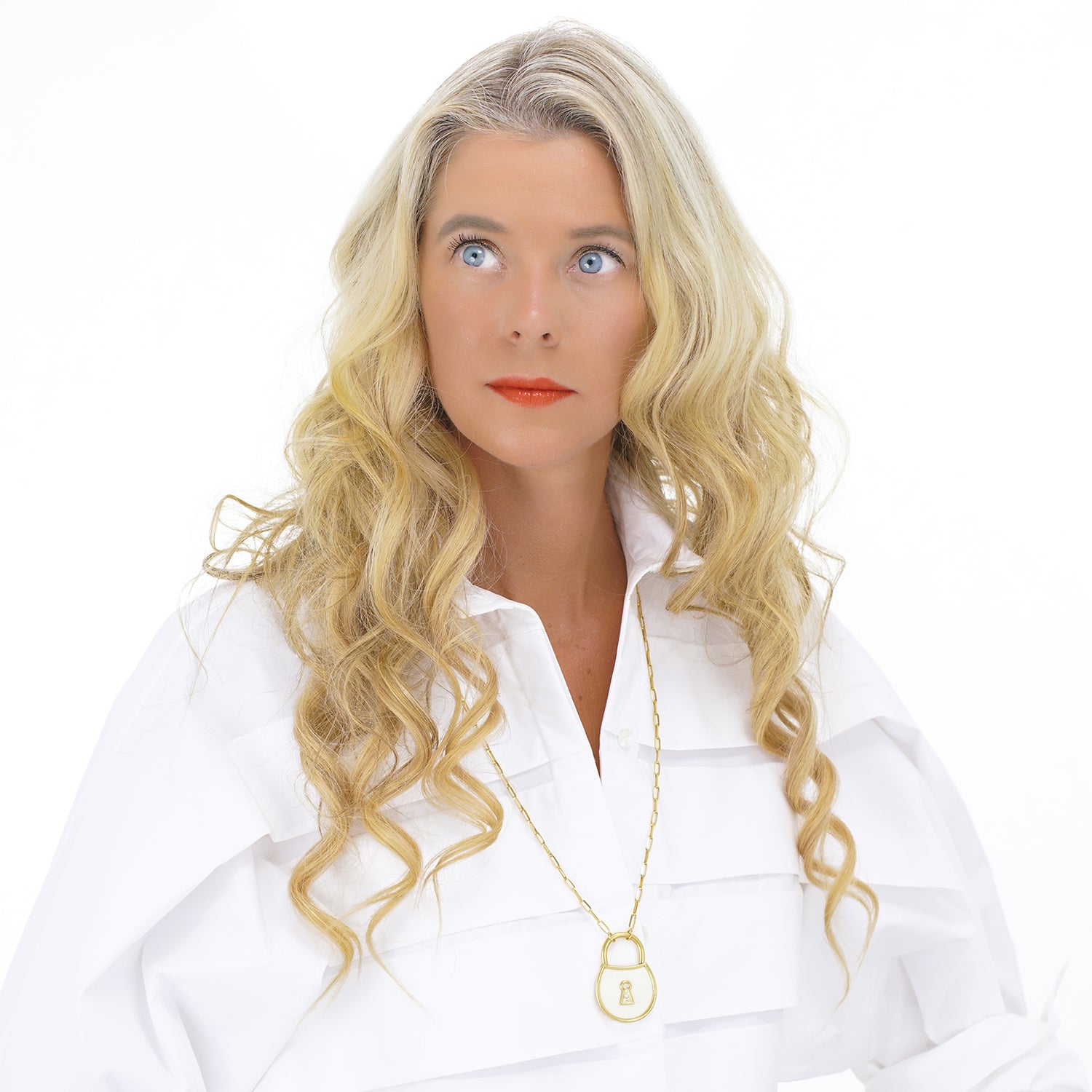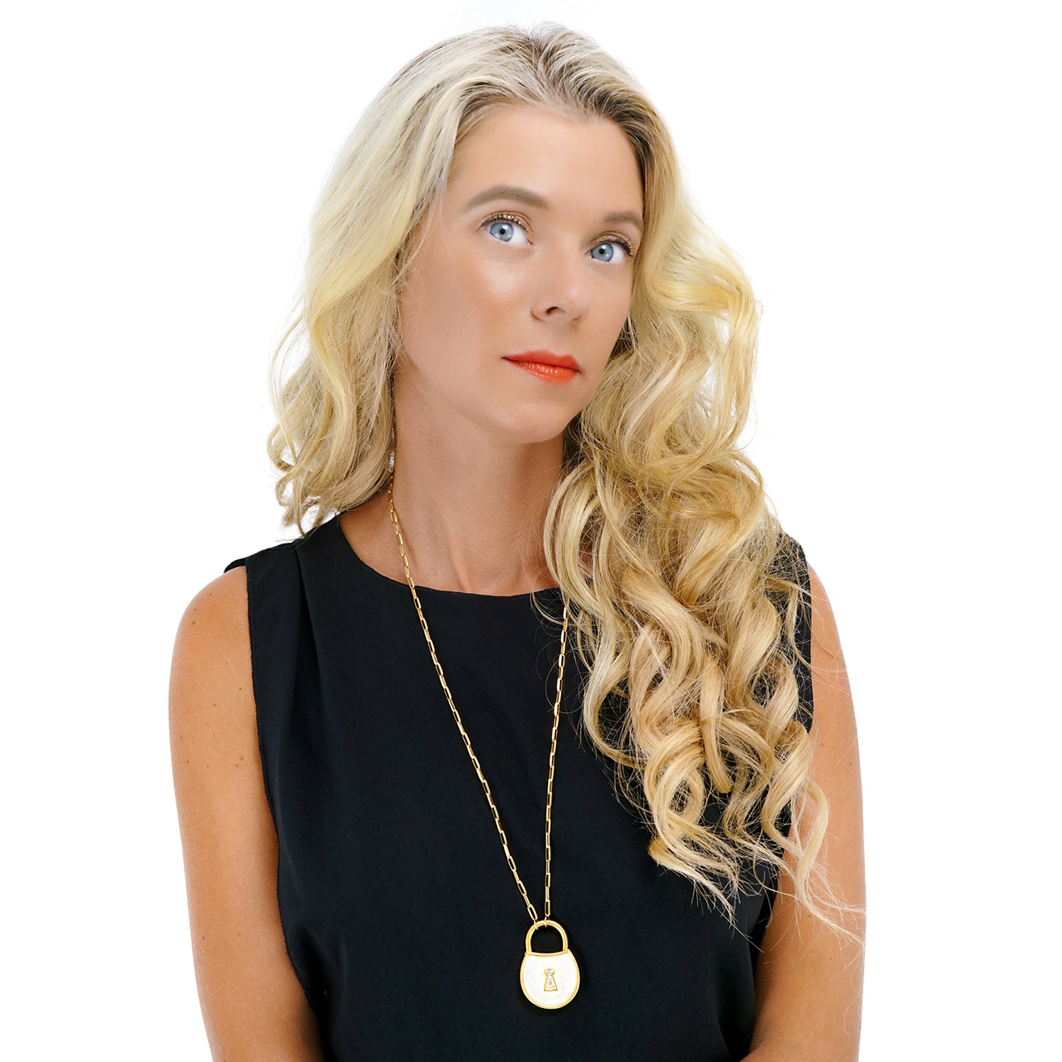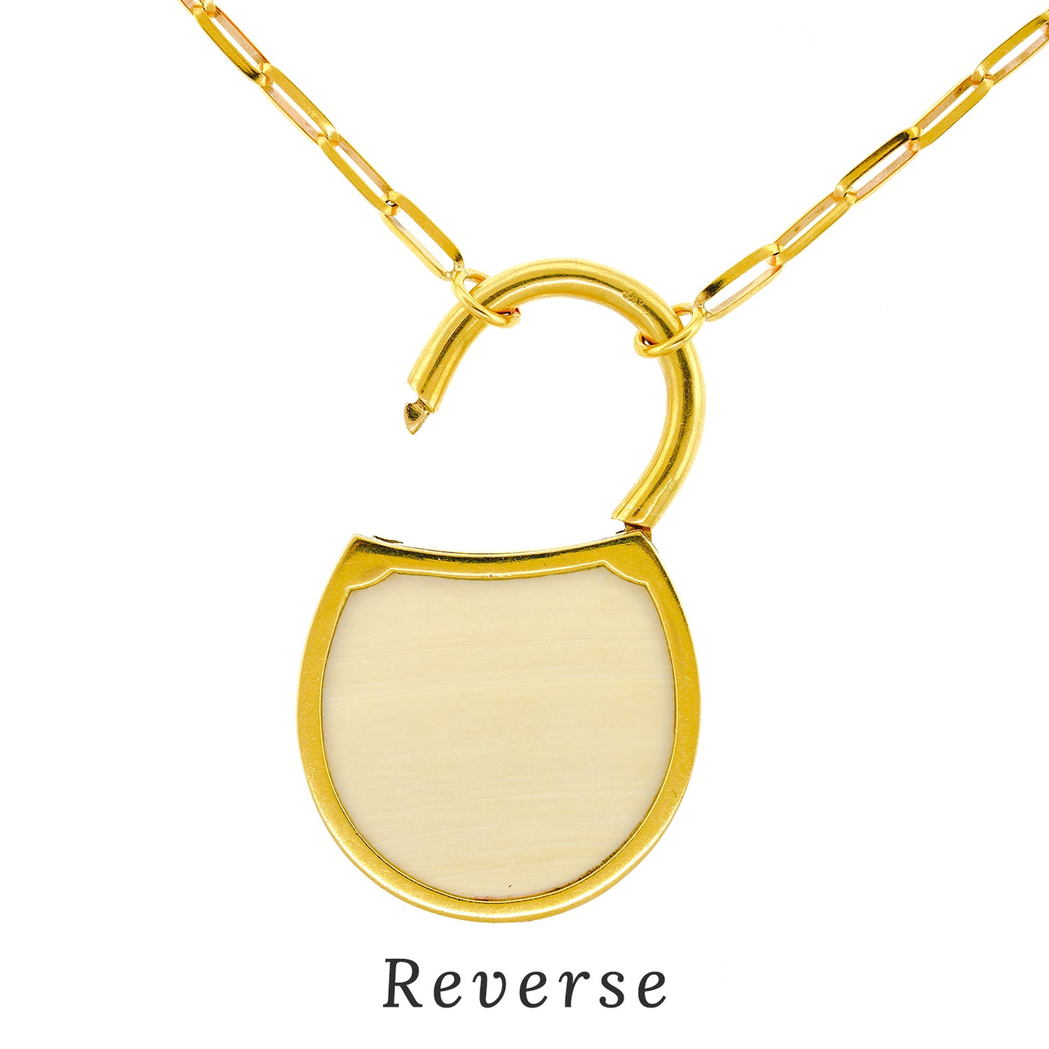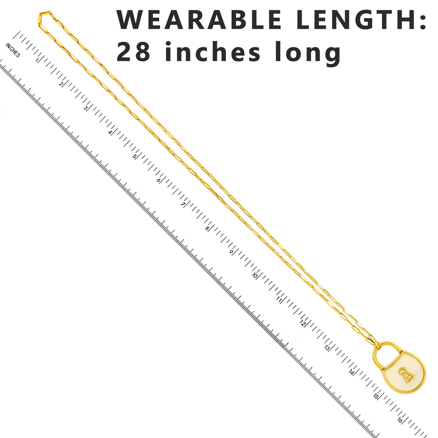 Measurements: Pendant is 1 7/8 inches high by 1 1/4 inches wide and attached chain is 28 inches long