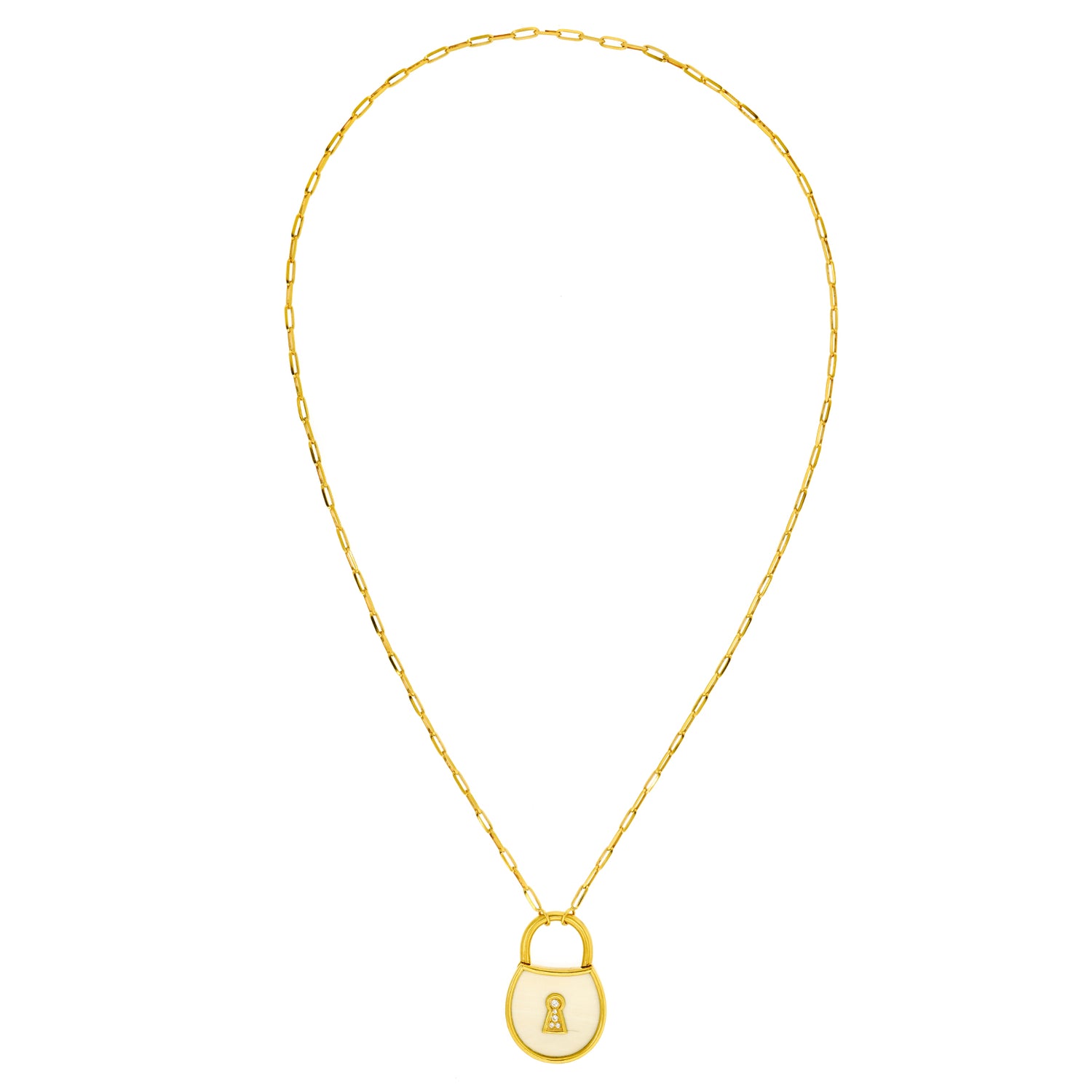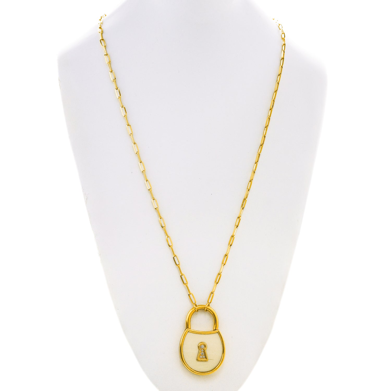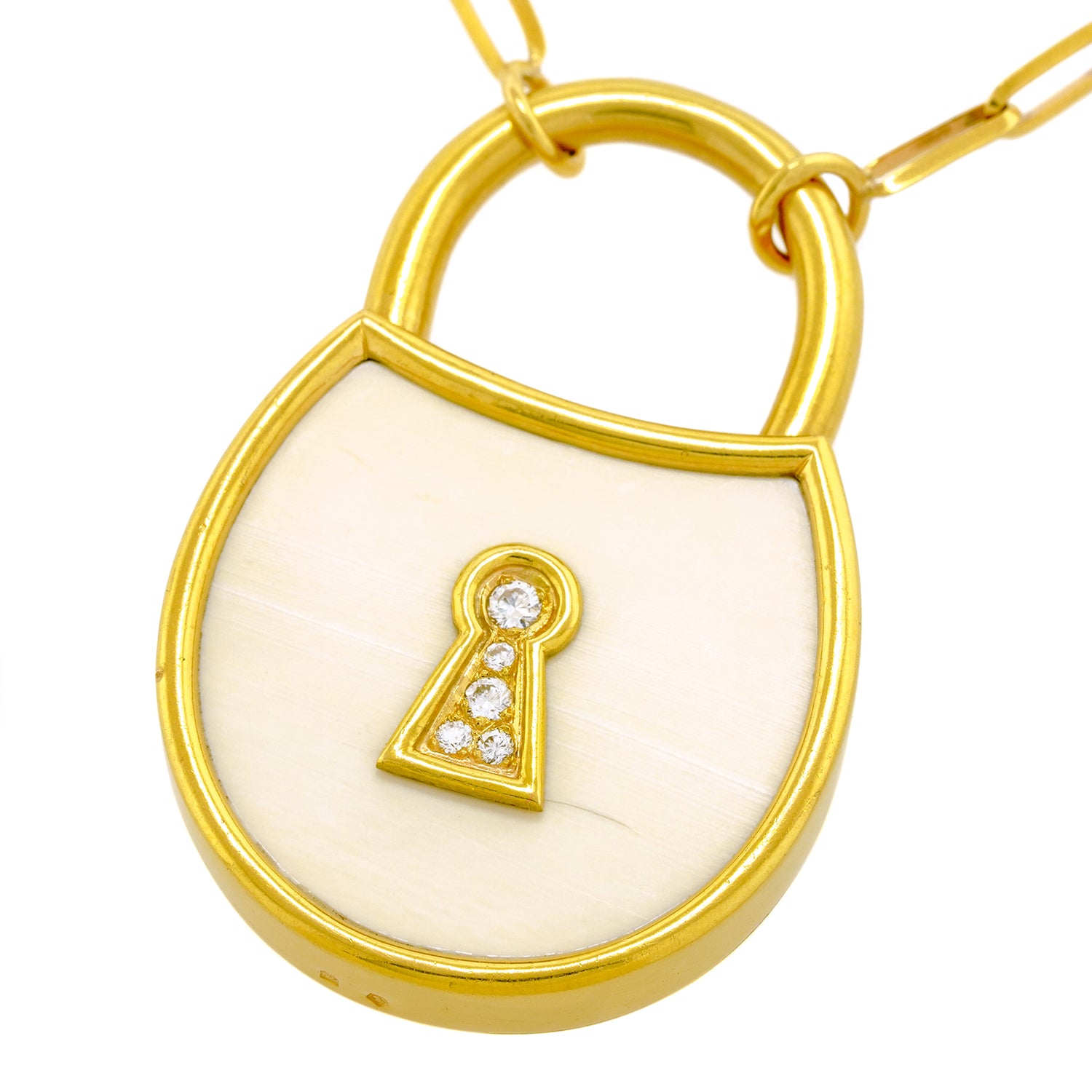Circa 1960-70s, 18k, France.  This oh-so-chic necklace has the verve and style that makes us fall In love with French jewelry every time. From a chunky fall sweater to a little black dress, this necklace is the perfect one-of-a-kind accessory. Meticulously fashioned in eighteen-karat gold and set with bright white diamonds, it is in excellent condition.