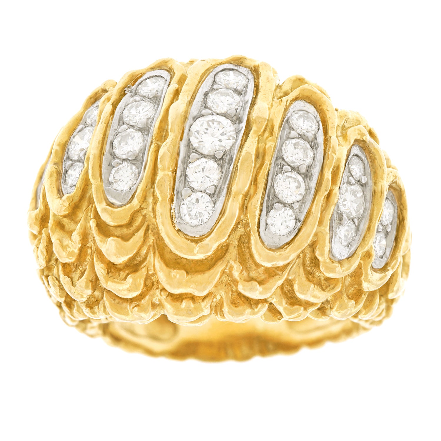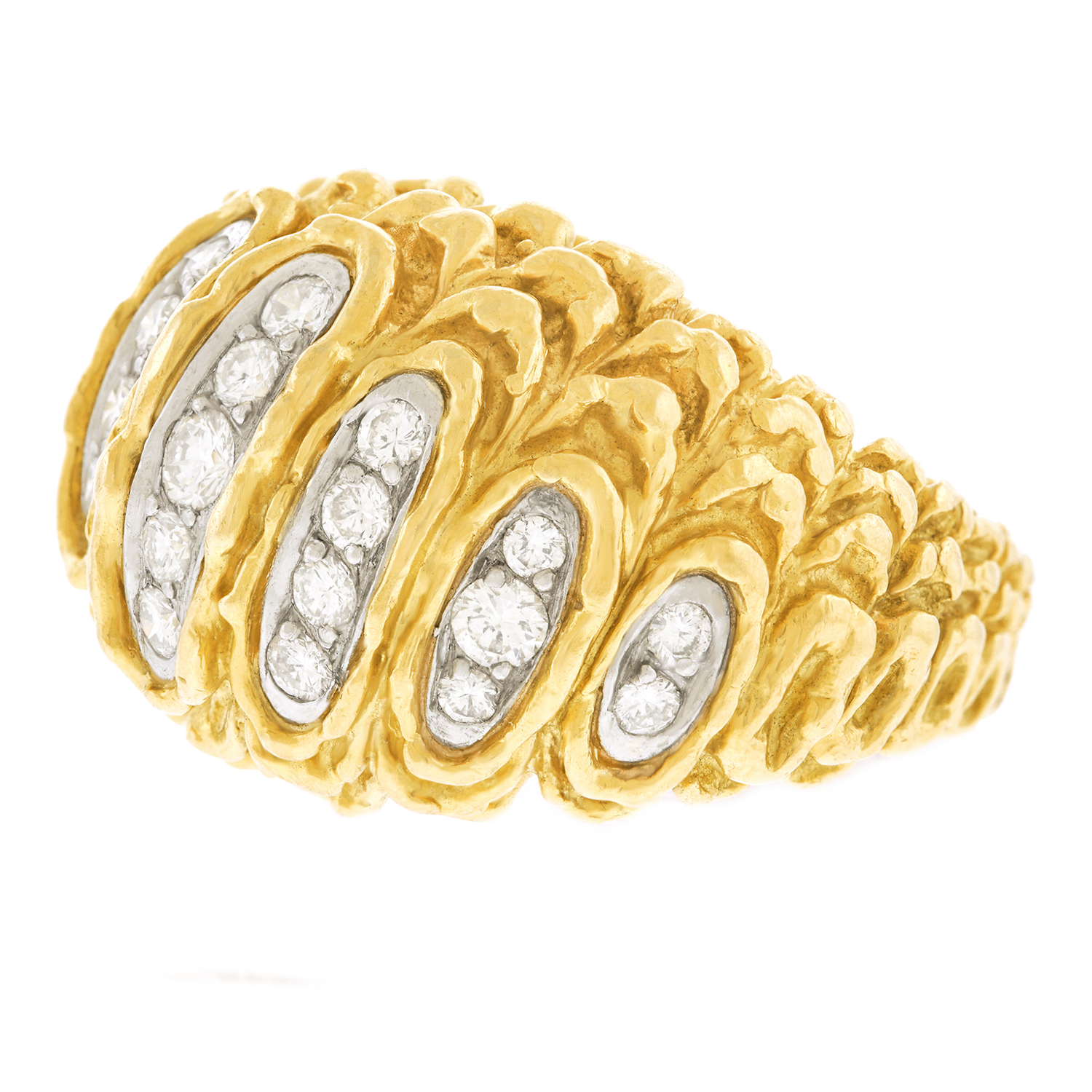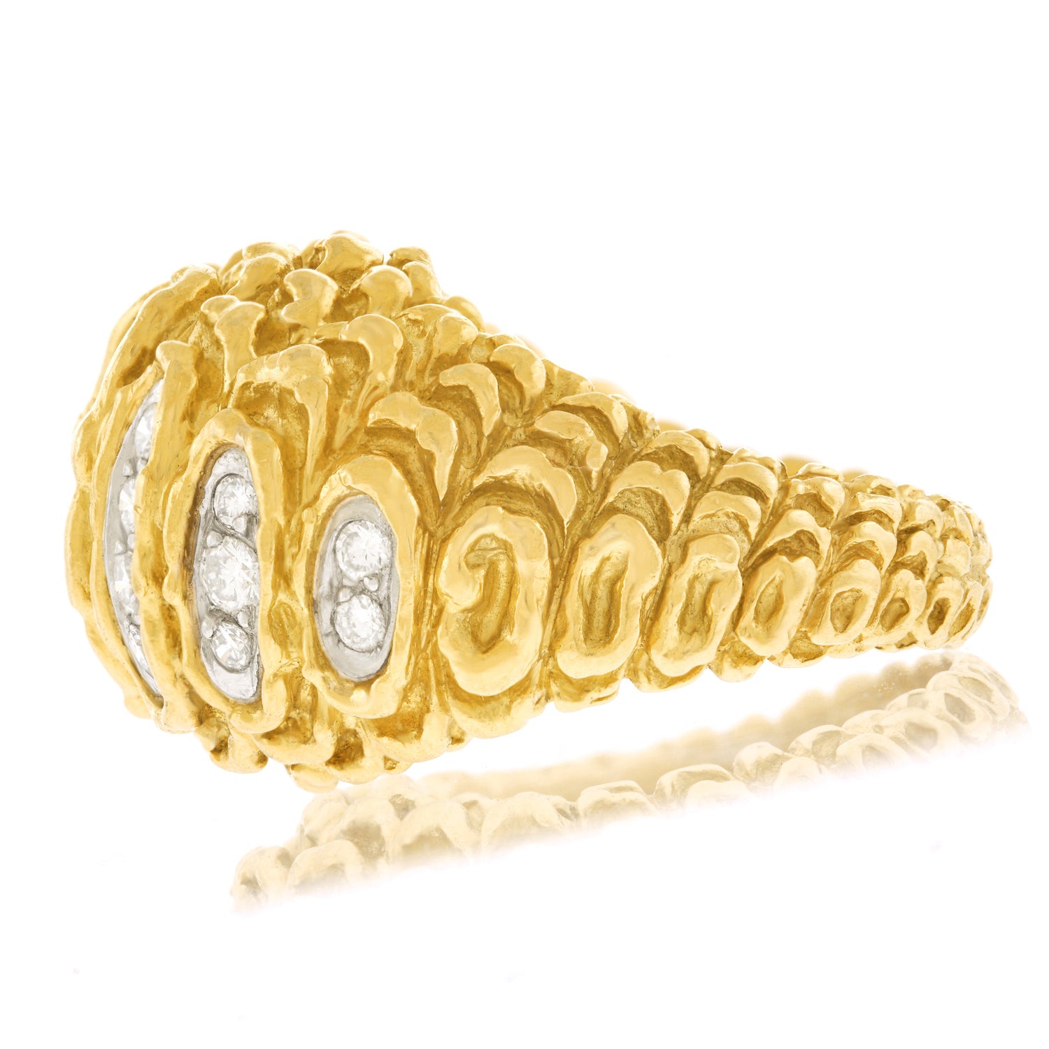 Circa 1964, 18k, Kutchinsky, London. This fabulous one-of-a-kind diamond set ring has the visual authority only originals have. Original sixties style, original organic design, original post-modern verve, original London chic… original Kutchinsky. Known for tasteful designs, quality fabrication, and superb stones, Kutchinsky of London was one of the great jewelry houses of the second half of the twentieth century. This ring is a beautiful example and in excellent condition.