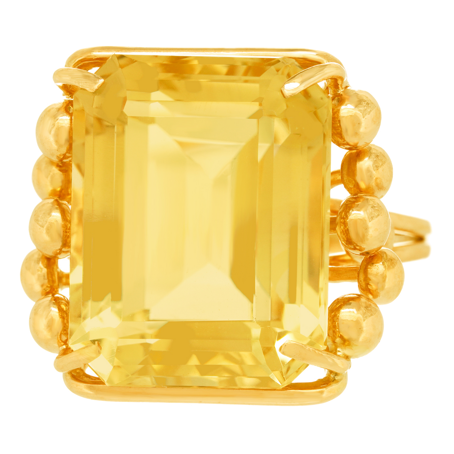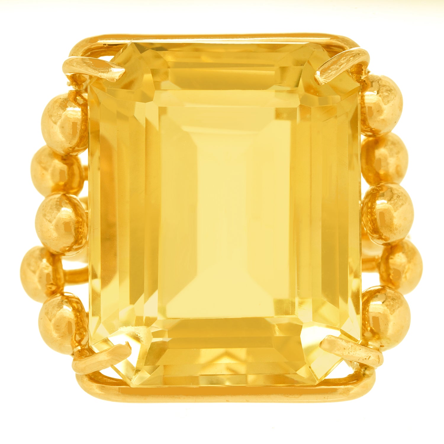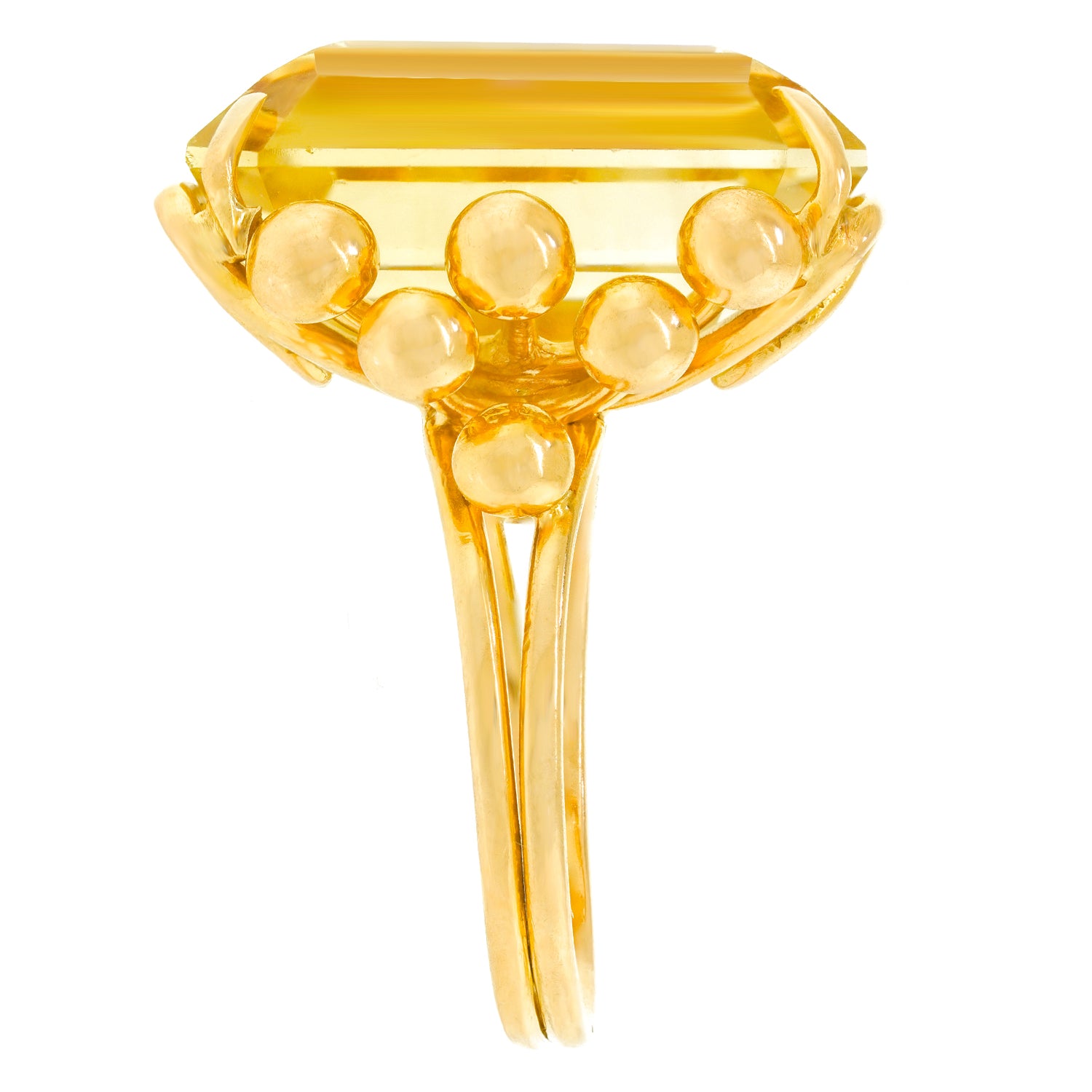 Circa 1960s, 18k.  This fabulously bold sixties ring is set with a lush 19.25-carat citrine. Uniquely stylish, the elaborately constructed gold bubbles are soooo pop art. A moment in time where Art meets fashion!