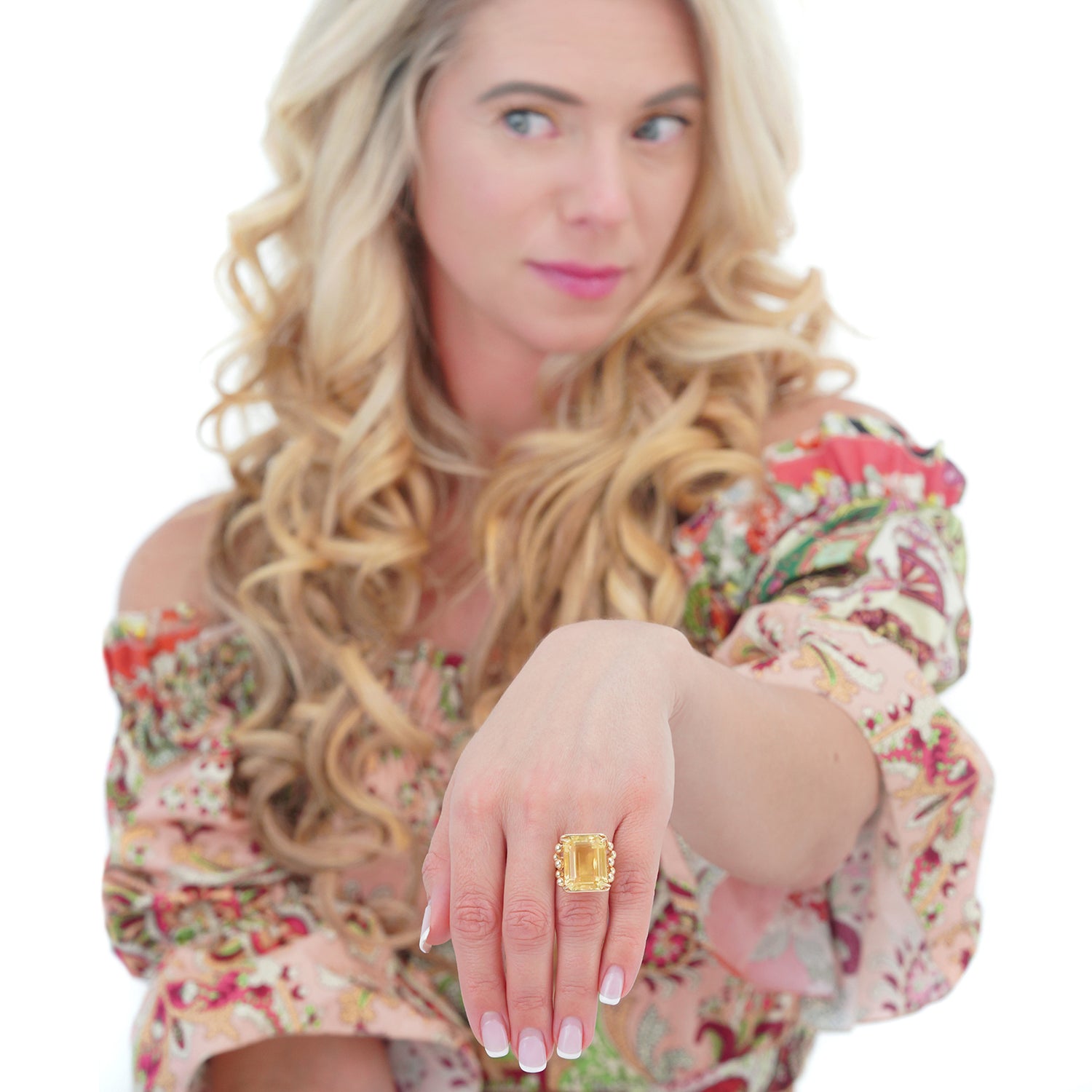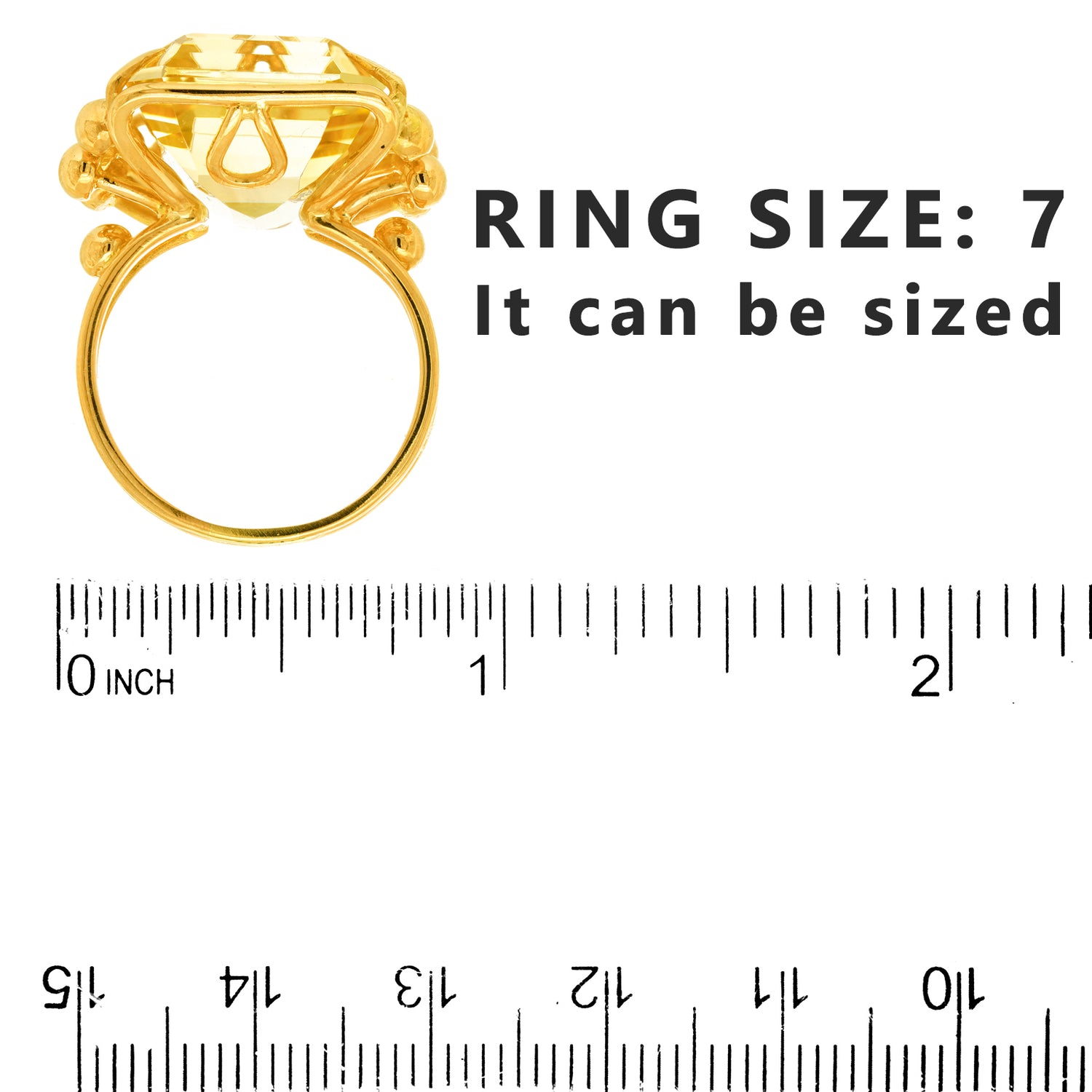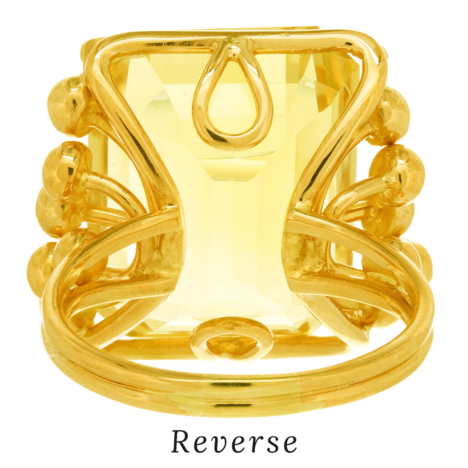 Circa 1960s, 18k.  This fabulously bold sixties ring is set with a lush 19.25-carat citrine. Uniquely stylish, the elaborately constructed gold bubbles are soooo pop art. A moment in time where Art meets fashion!