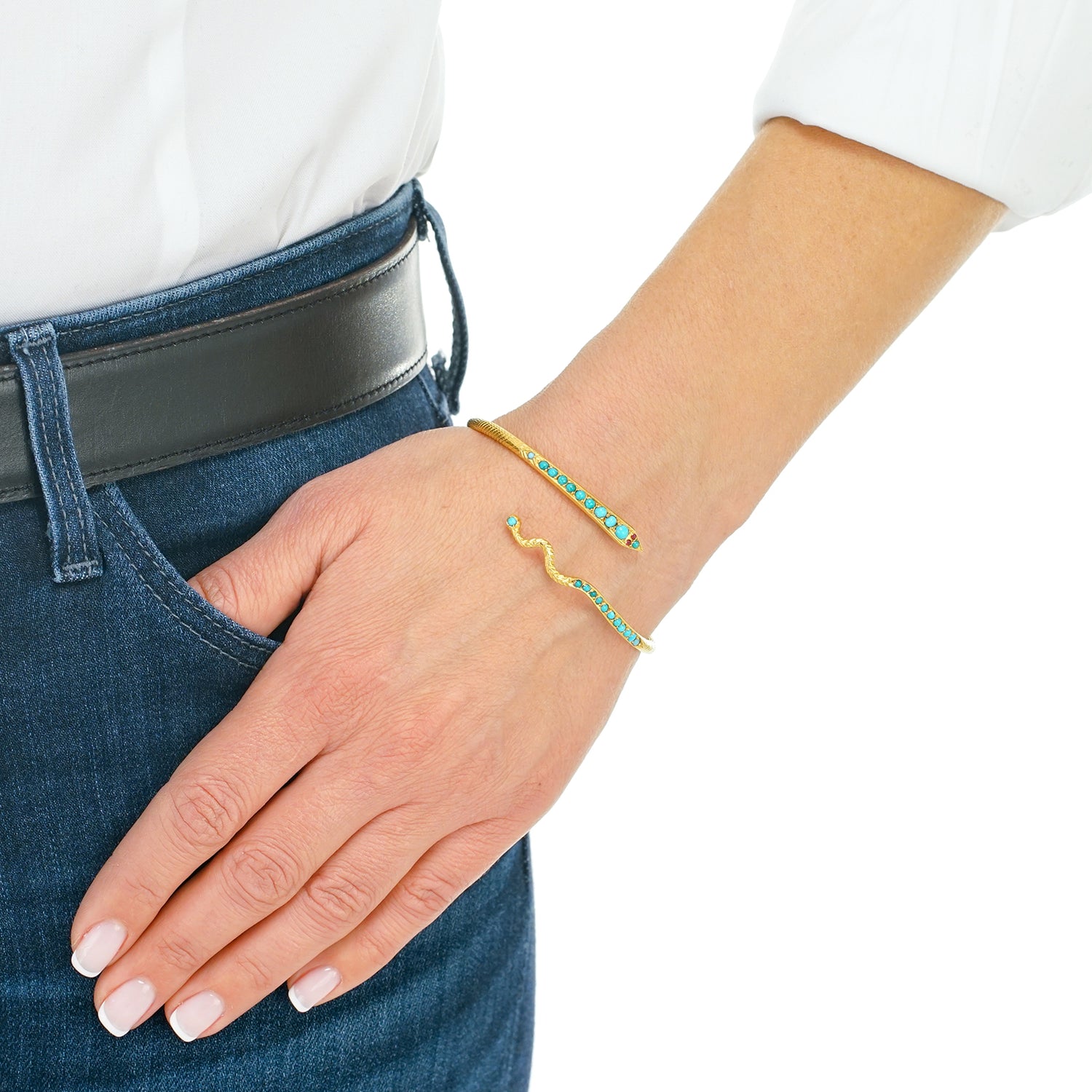 Remarks from Lawrence Jeffrey: "Sleek little serpents have long decorated our fingers and wrists; we love them for their exotic charm!"