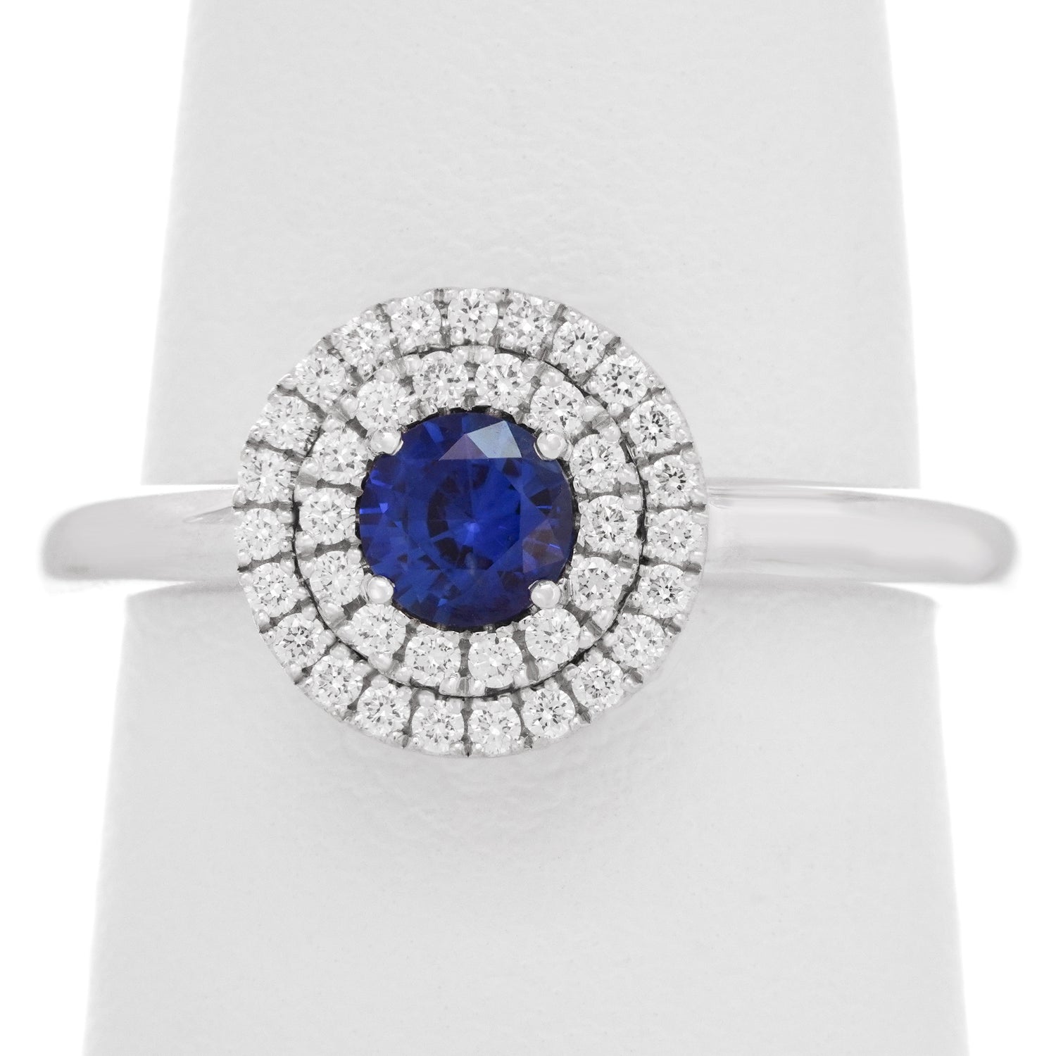 Stones: .40 carat sapphire and .20 carats total weight of G color, VS clarity diamonds