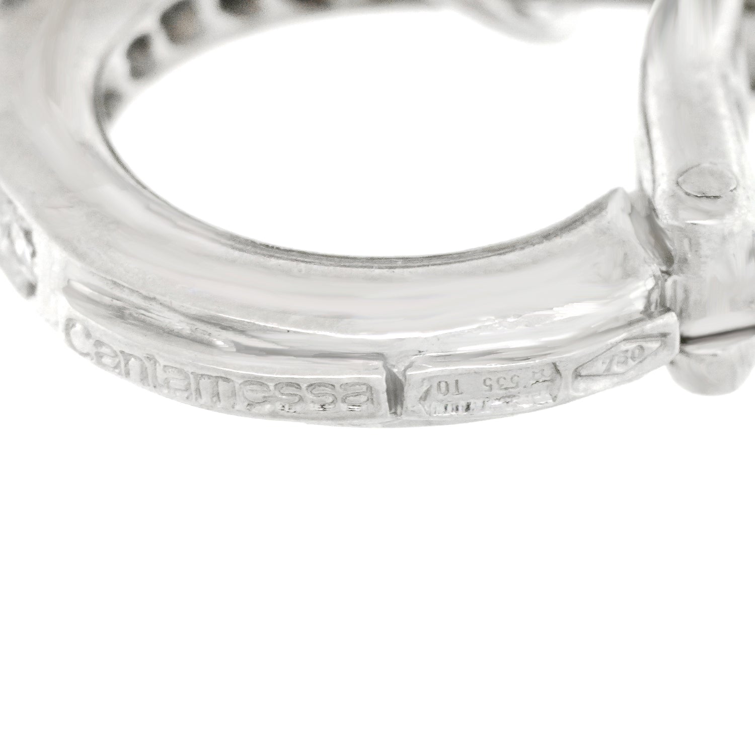 Circa 2000s, 18k, by Cantamessa, Italy.  From the catwalk to the sidewalk, these exquisite three-inch-long chandelier earrings are sapphire perfection! Harmoniously intricate, the look is all about visual balance - outrageous and elegant, substantial yet delicate, fun, and refined. Meticulously fabricated with 5 carats of fabulous sapphires and .50 carats of brilliant white diamonds (G color, VS clarity), they are red carpet ready.  Excellent condition.