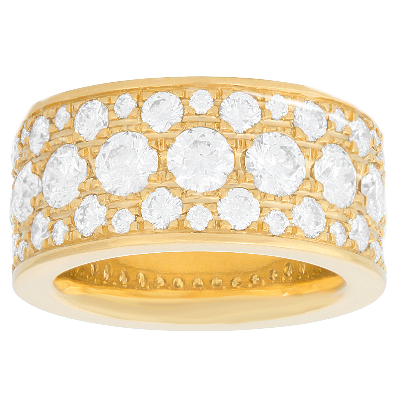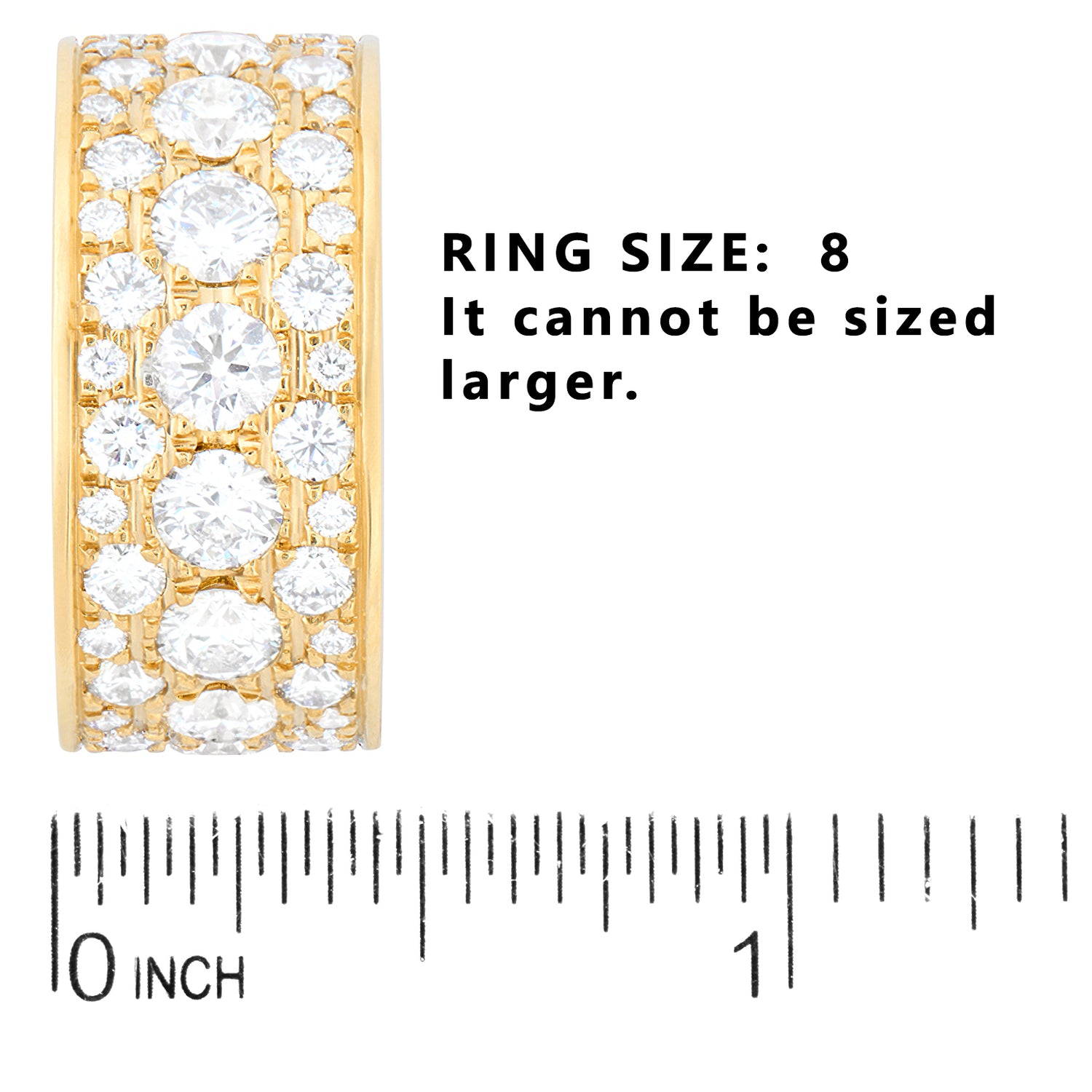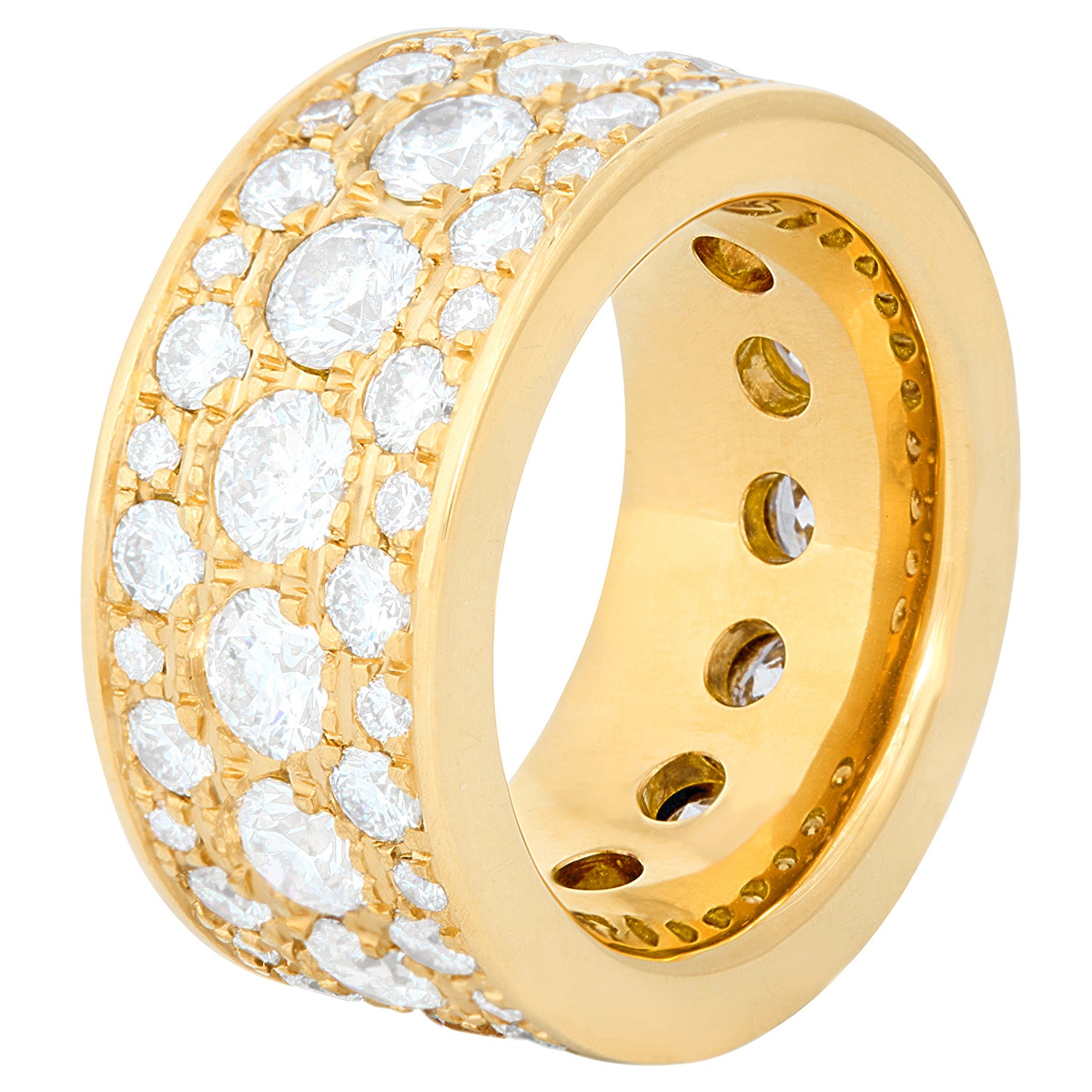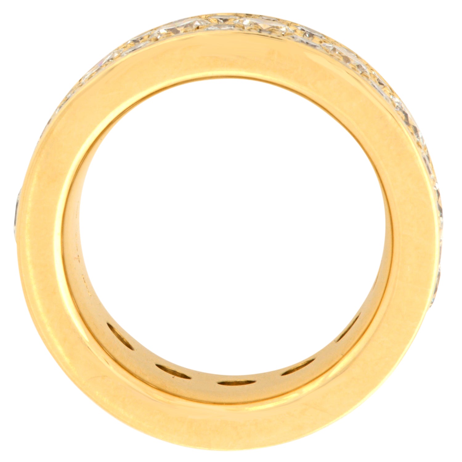 Circa 1980s, 18k, by Killer & Co., Solothurn, Switzerland. This elegant diamond and yellow gold ring radiates glamour. Underscored by 7.50 carats of brilliant white diamonds (F color and VS clarity), the look is everyday luxury on steroids, ...we always say yes to more diamonds! Fine fabrication in polished eighteen-karat gold and meticulous attention to detail completes the visual narrative. Excellent condition.