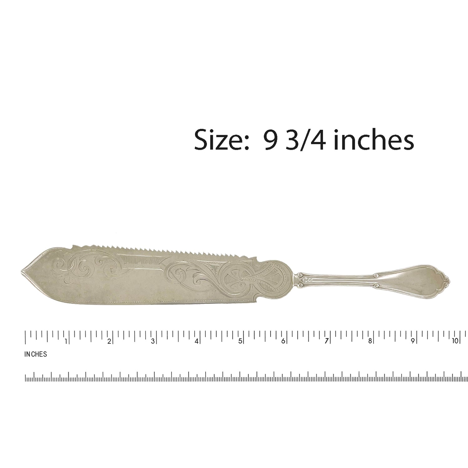 Circa 1880s, Sterling, by W. K. Vanderslice, San Francisco, CA. This lovely cake knife or saw is in the Gothic pattern by Vanderslice. William Keyser Vanderslice came from Philadelphia in 1857, and established his firm in San Francisco in 1858. Vanderslice & Co. survived many economic crises, but it did not survive the Great Fire and Earthquake of 1906. The company was absorbed by Shreve of San Francisco. Excellent condition.