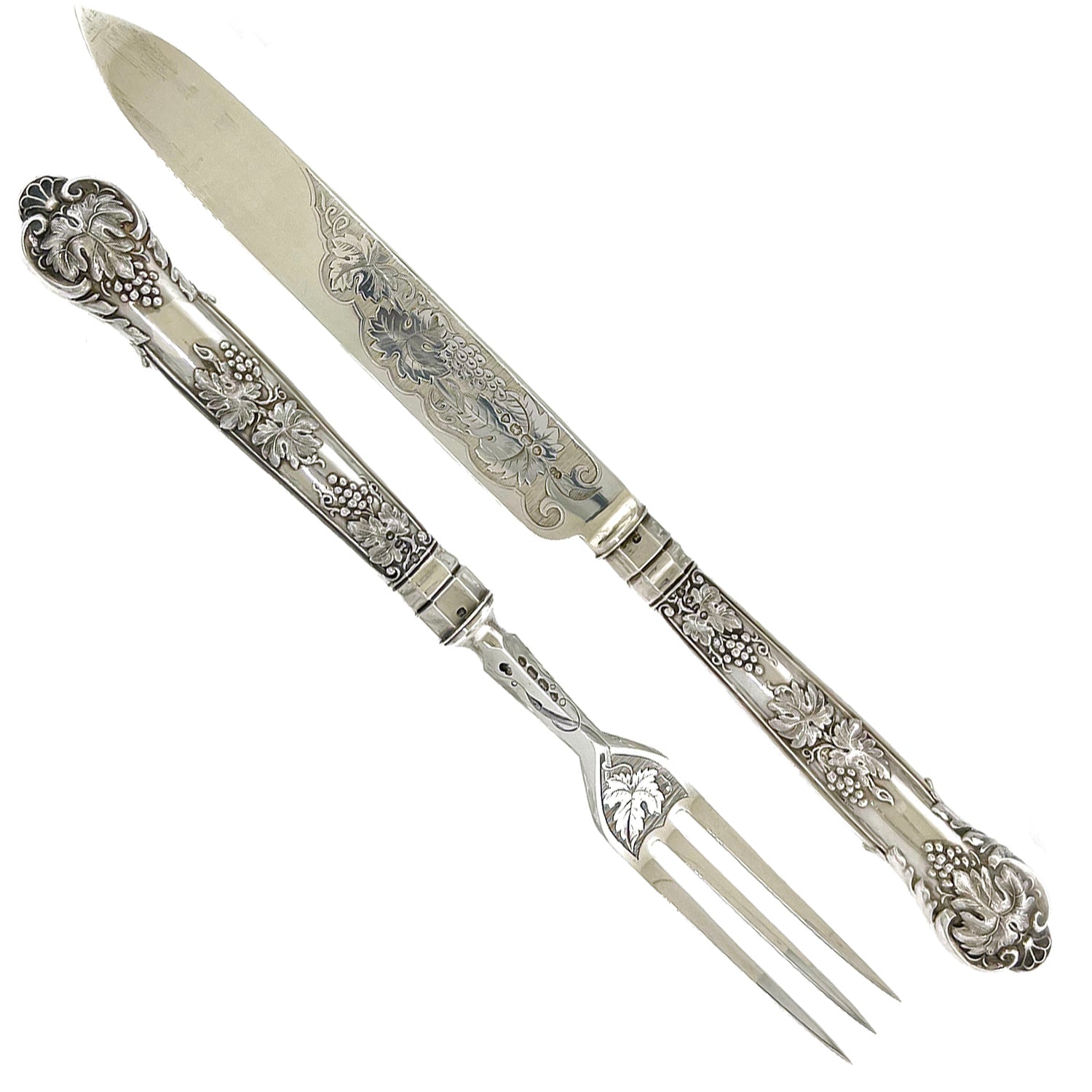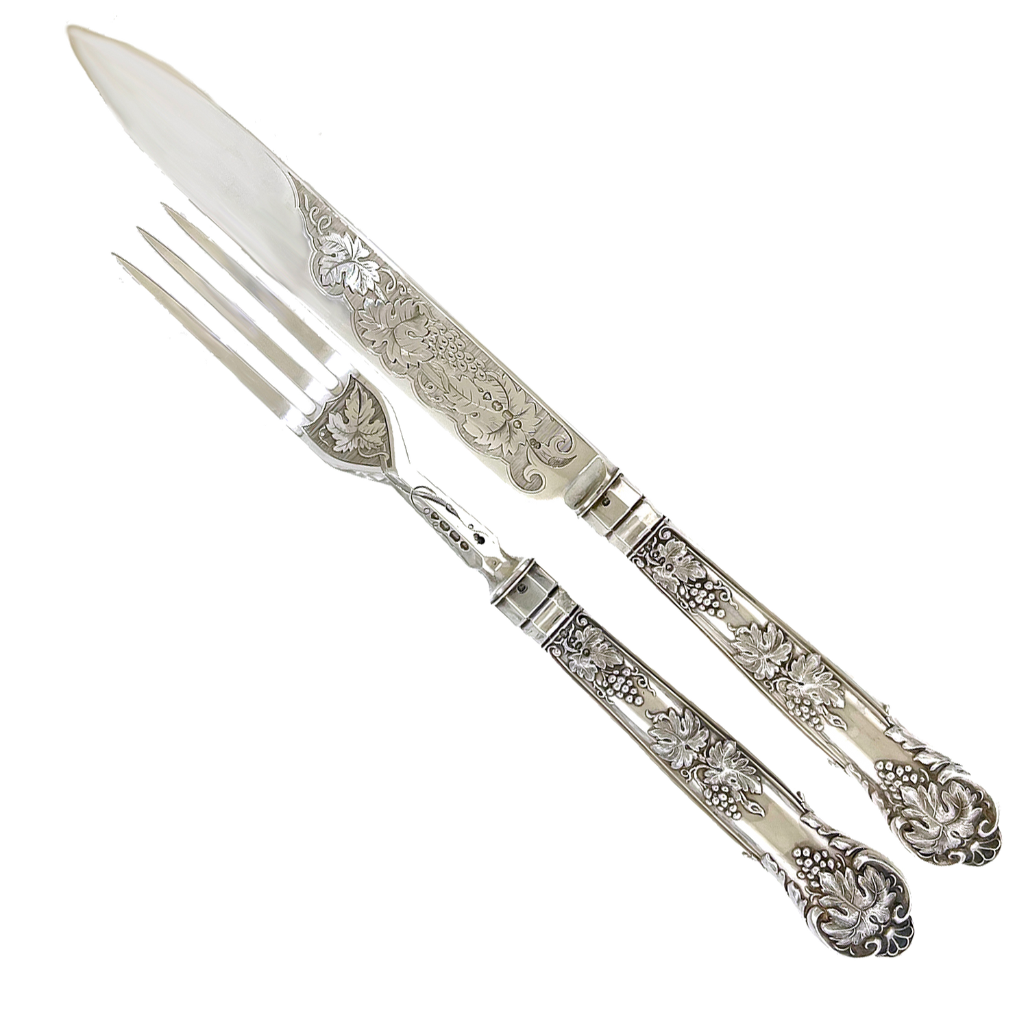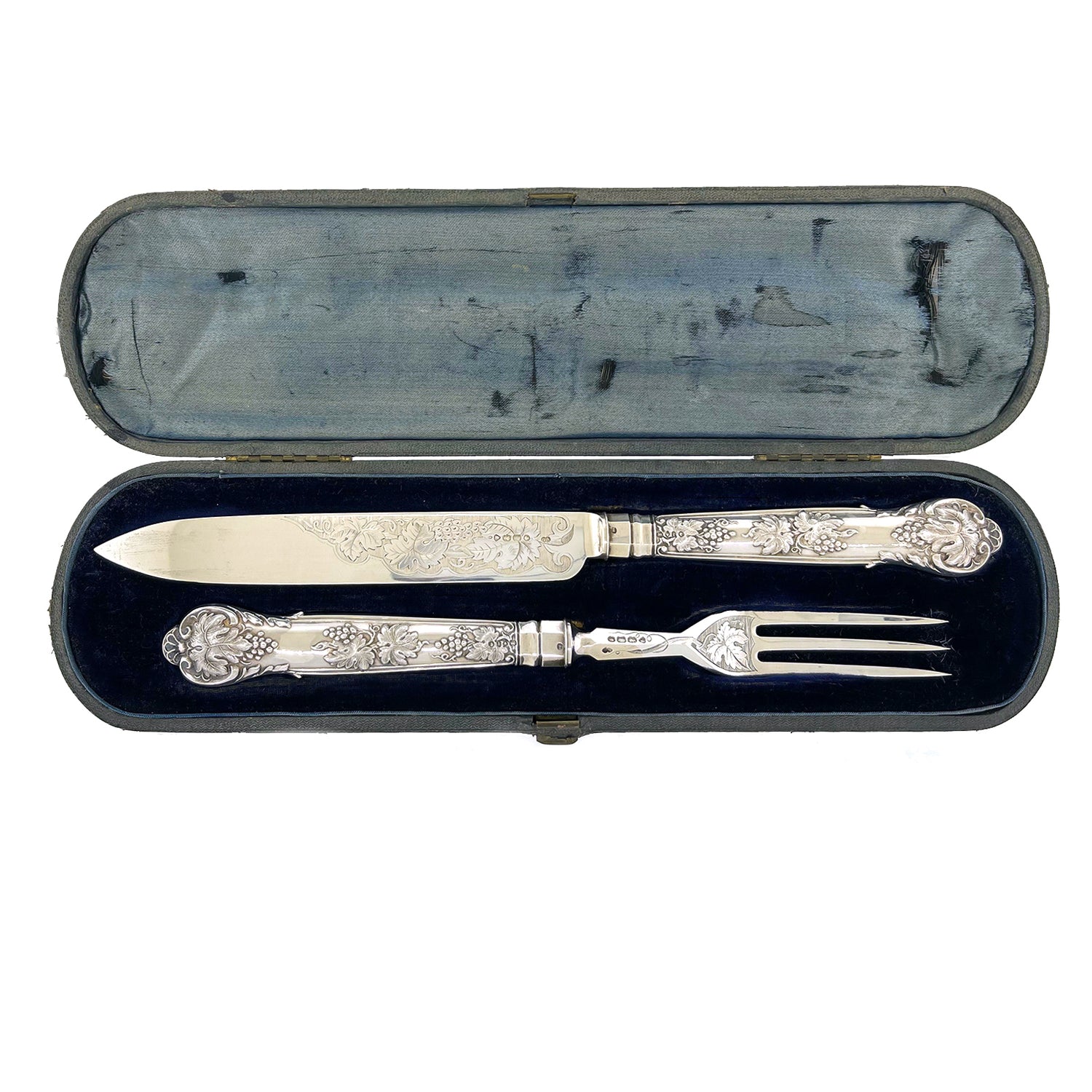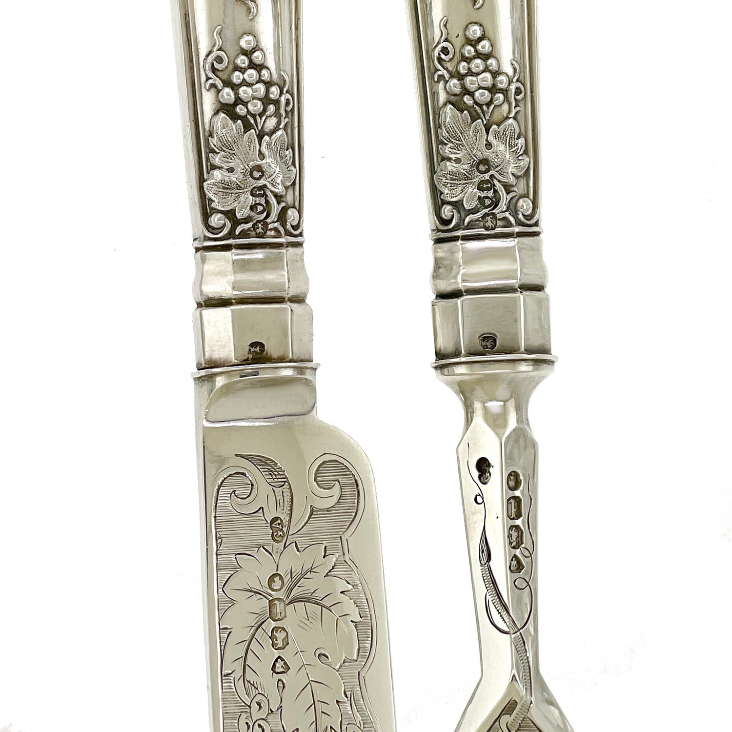 Circa 1866, Sterling, by George Adams, London, England. BRIGHT VINE pattern cake serving set by George William Adams with original box. Set retains crisp details and is in excellent condition.