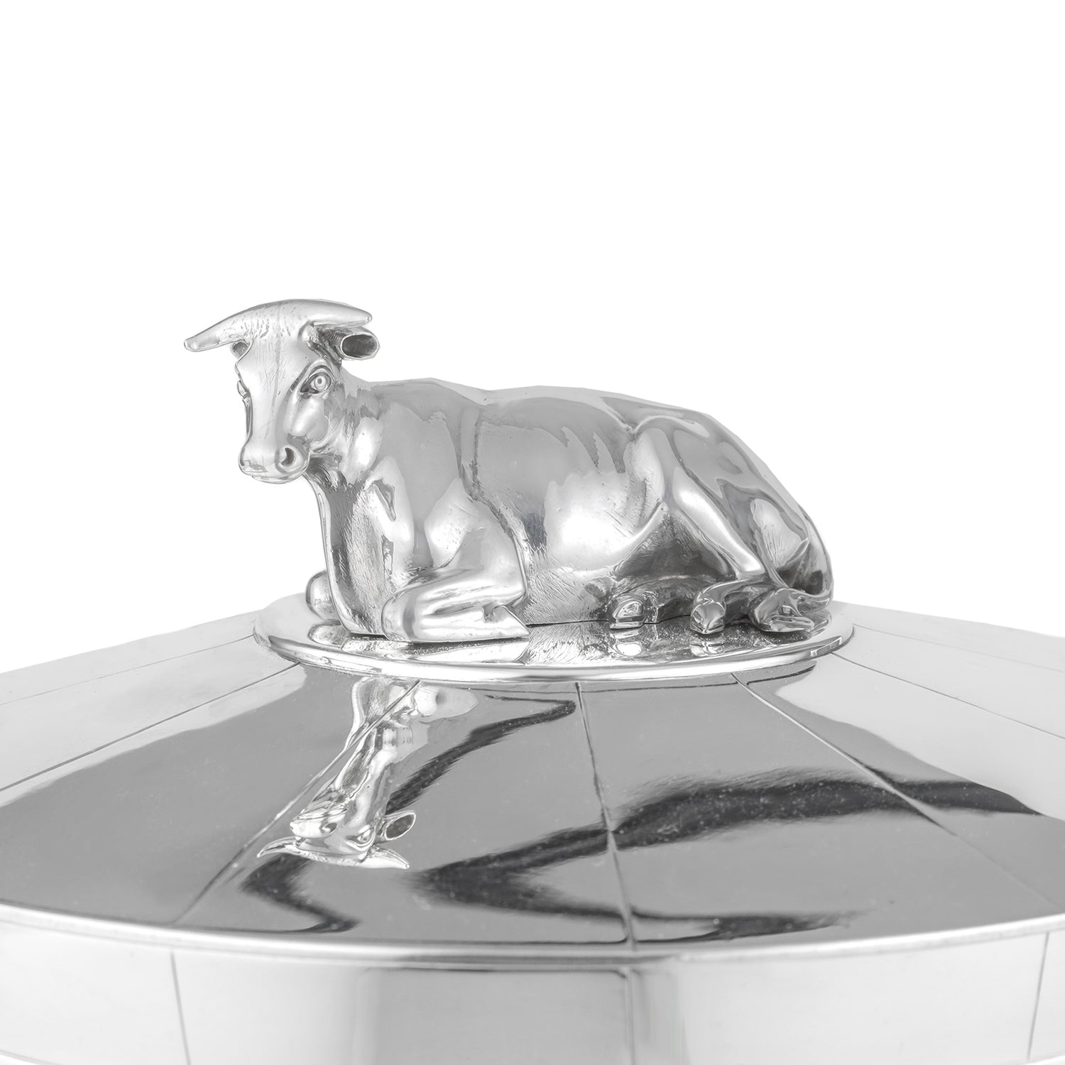 #24016 - Sterling Figural Cow Butter Dish and Underplate, London Circa 1837