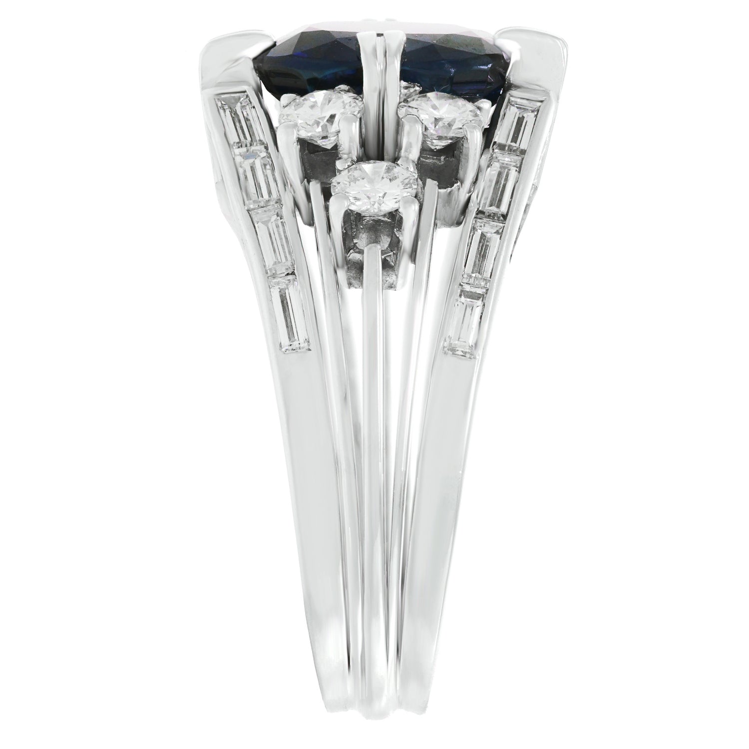 Circa 1960s, 18k, by Paul Binder, Zurich, Switzerland. This colorful Swiss modern jewel, with its refreshing bold form, is set with a 3.40 carat deep blue sapphire and 1.0 carats of fine white diamonds (G color, VS clarity). The look is one-of-a-kind luxury at its Zurich best! Known for high design and superb quality, Paul Binder was widely regarded as the finest Swiss goldsmith of his generation. The ring is beautifully handmade and in excellent condition.