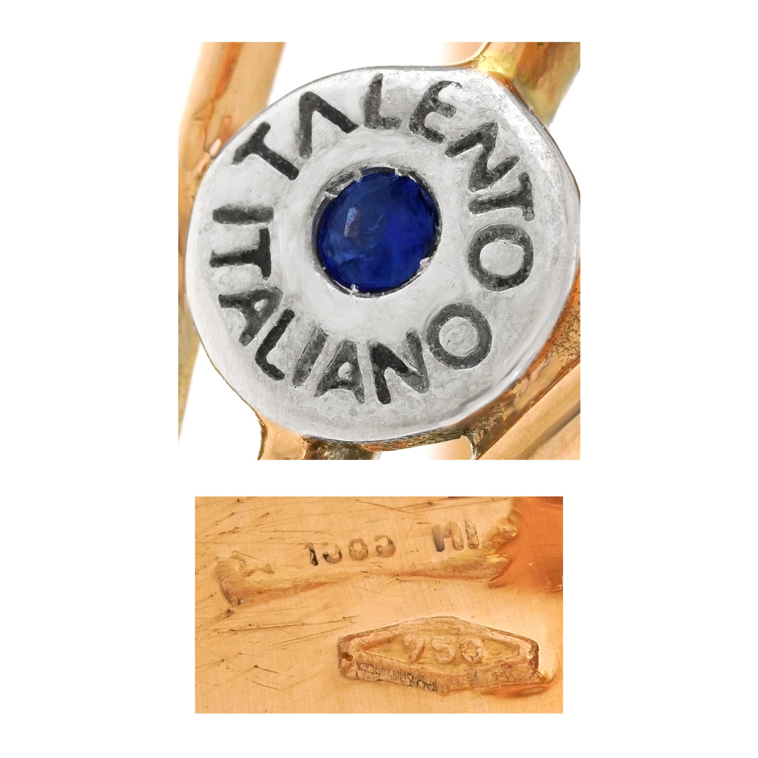 Hallmarks: Talento Italiano, 750 for 18k, Italian registration workshop mark for Milan.