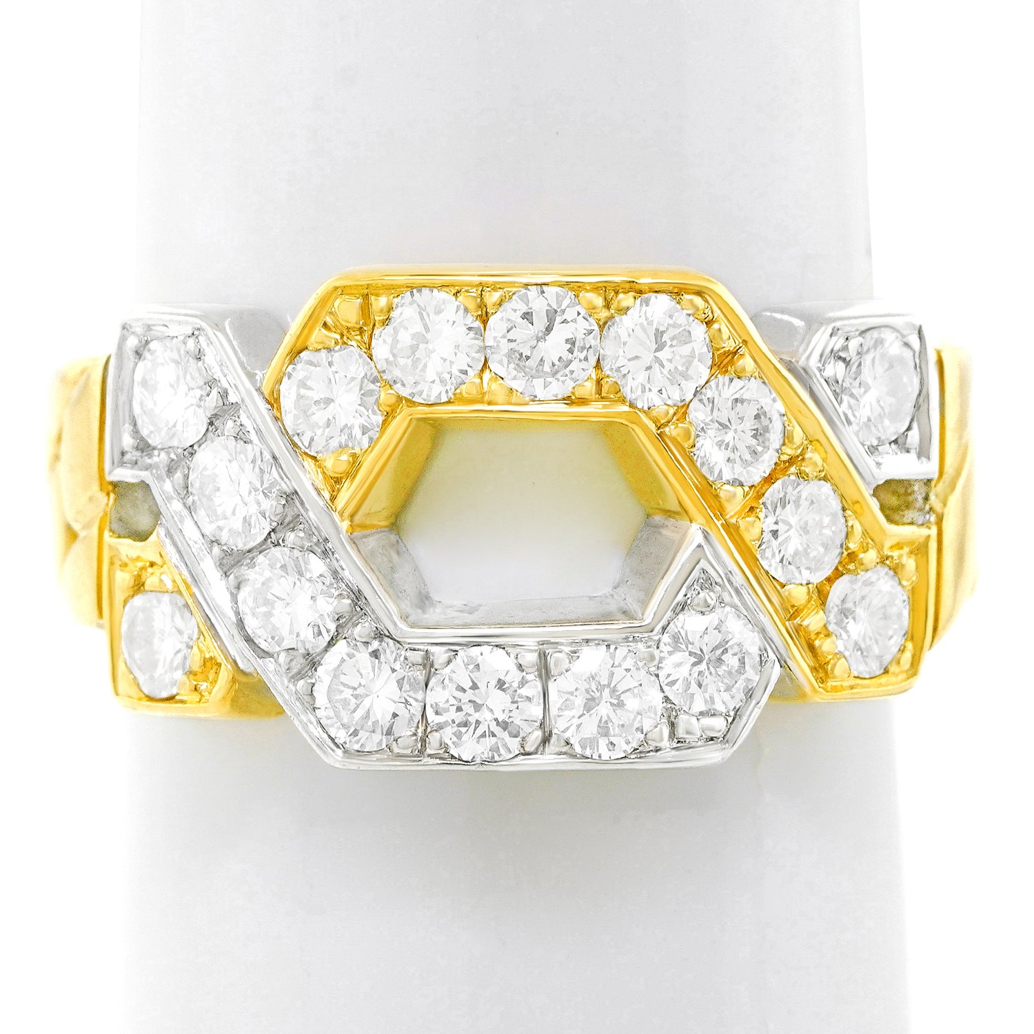 Circa 1970s, 18k, by Tannler, Zurich, Switzerland. This Tannler ring has it all - superb fabrication, fine white diamonds (G color, VS clarity), and a design that blends post modern style with contemporary chic. In the seventies and eighties, Tannler was widely regarded as one of the finest ateliers in the world. Excellent condition.
