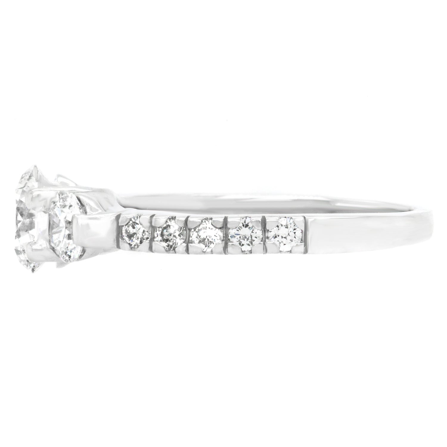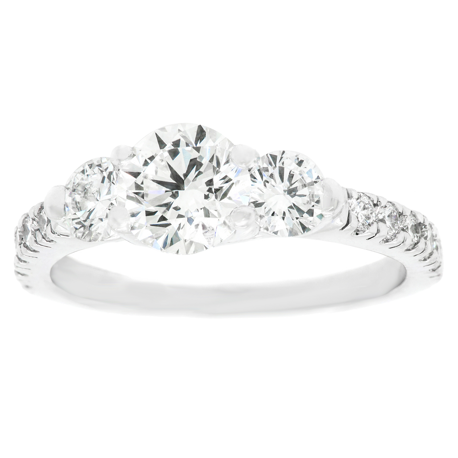 Stones: 1.01 carat I color, VS1 clarity diamond plus .79 carats total weight of H color, SI1 clarity side diamonds