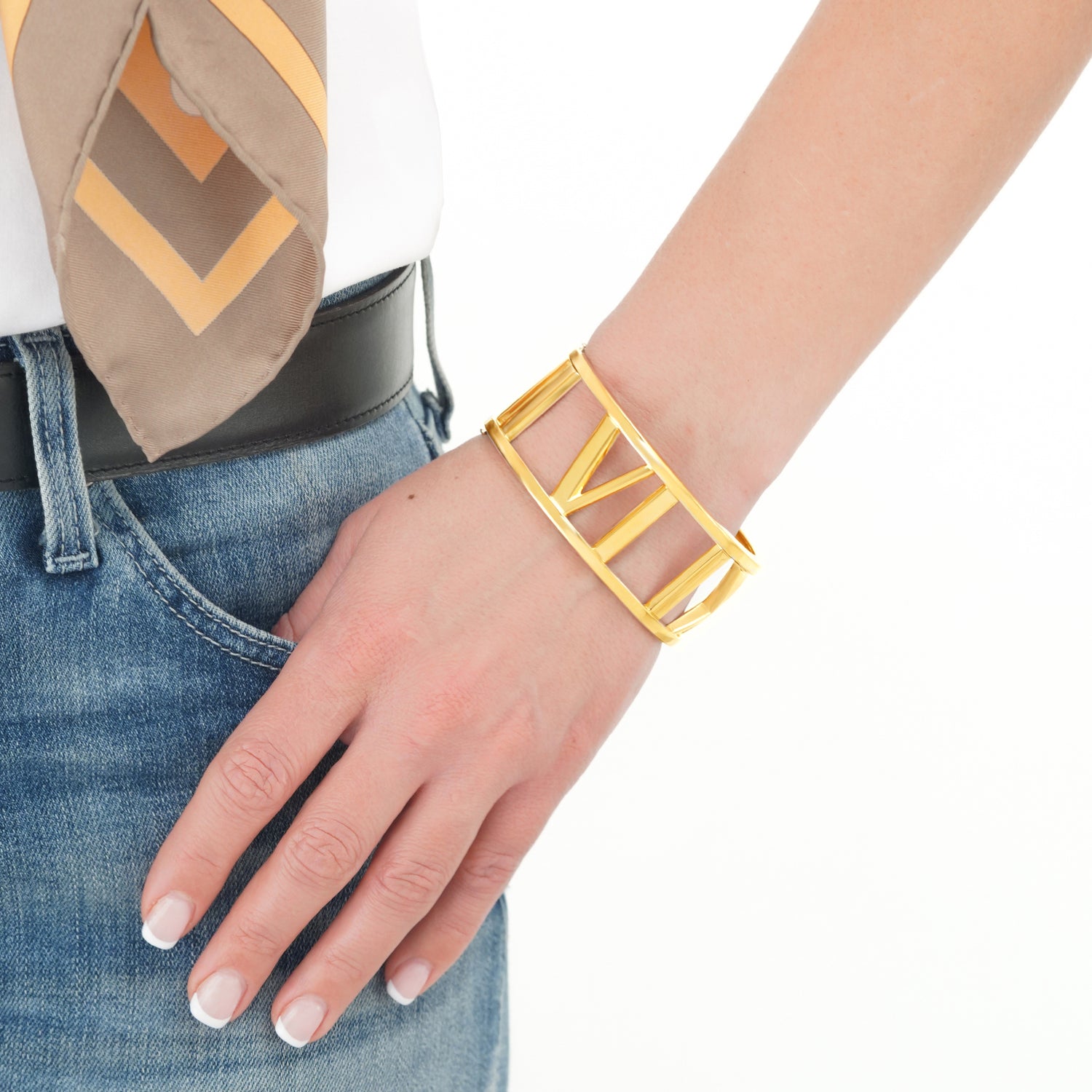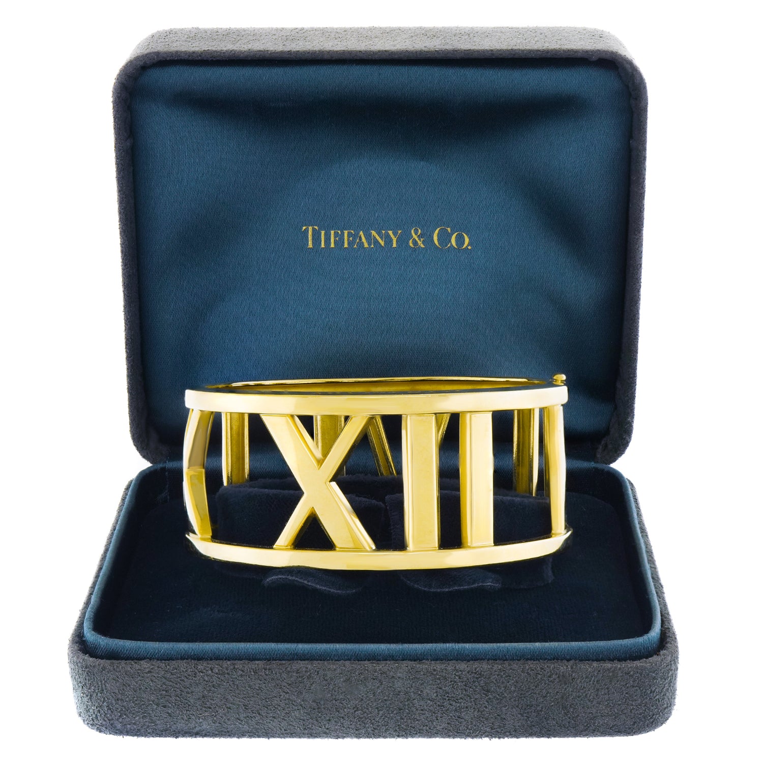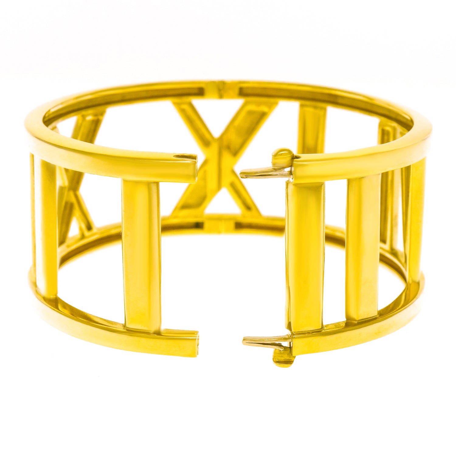 Circa 2003, 18k, by Tiffany & Co., American. This 18k bracelet celebrates Tiffany style, past and present. Atlas motif jewelry gets its design cues from Tiffany's famous Atlas clock. The look is brilliantly iconic, a perfect combination of everyday and elegant. Excellent condition.