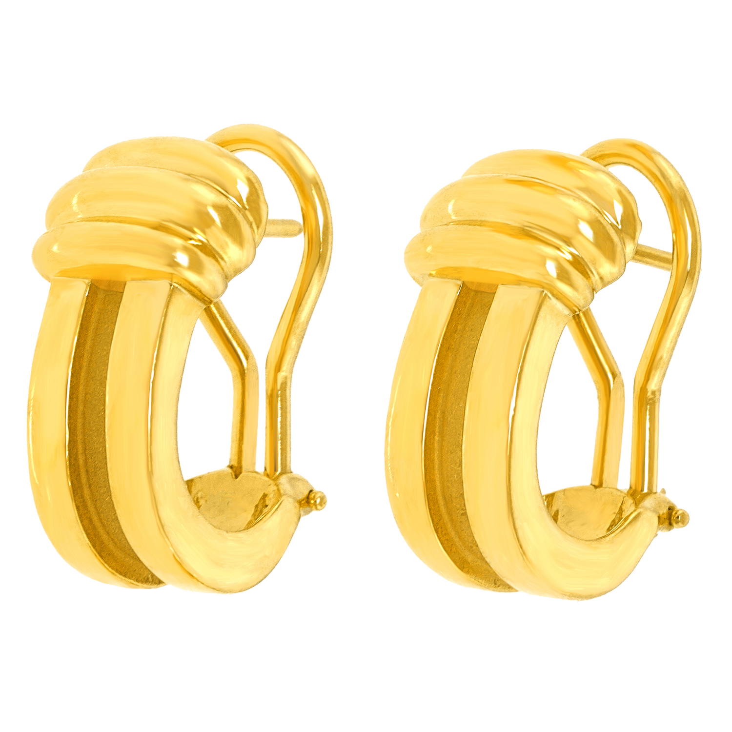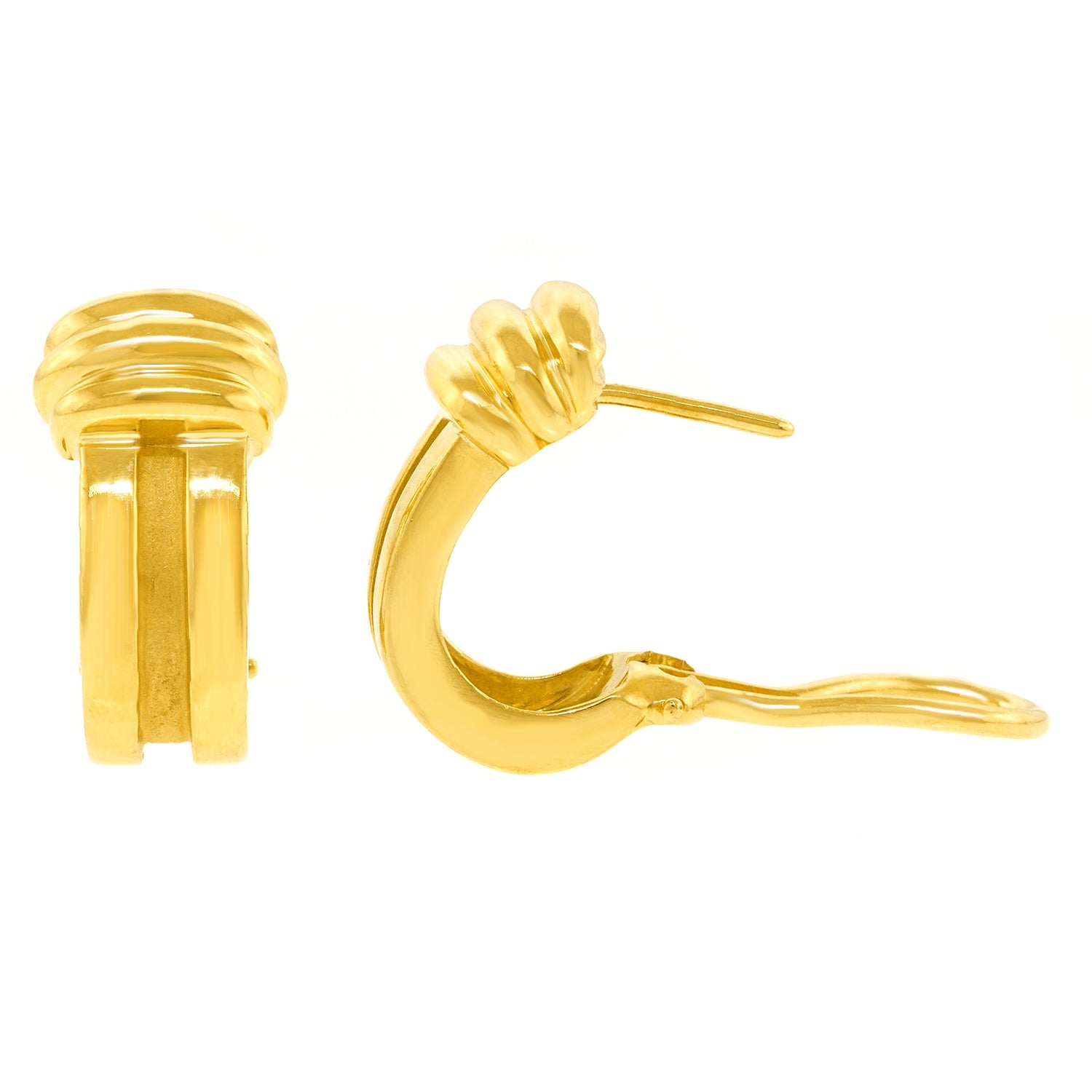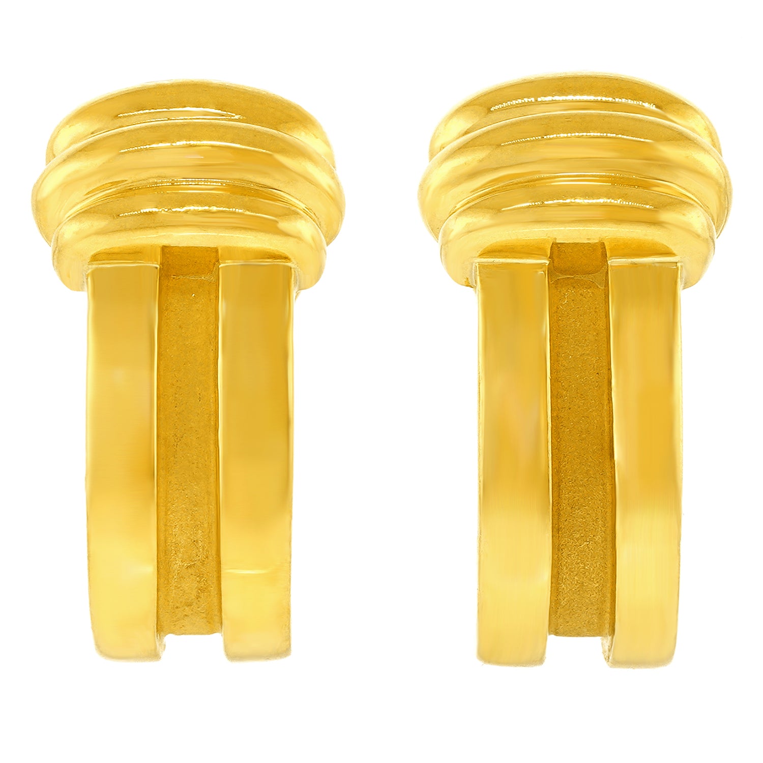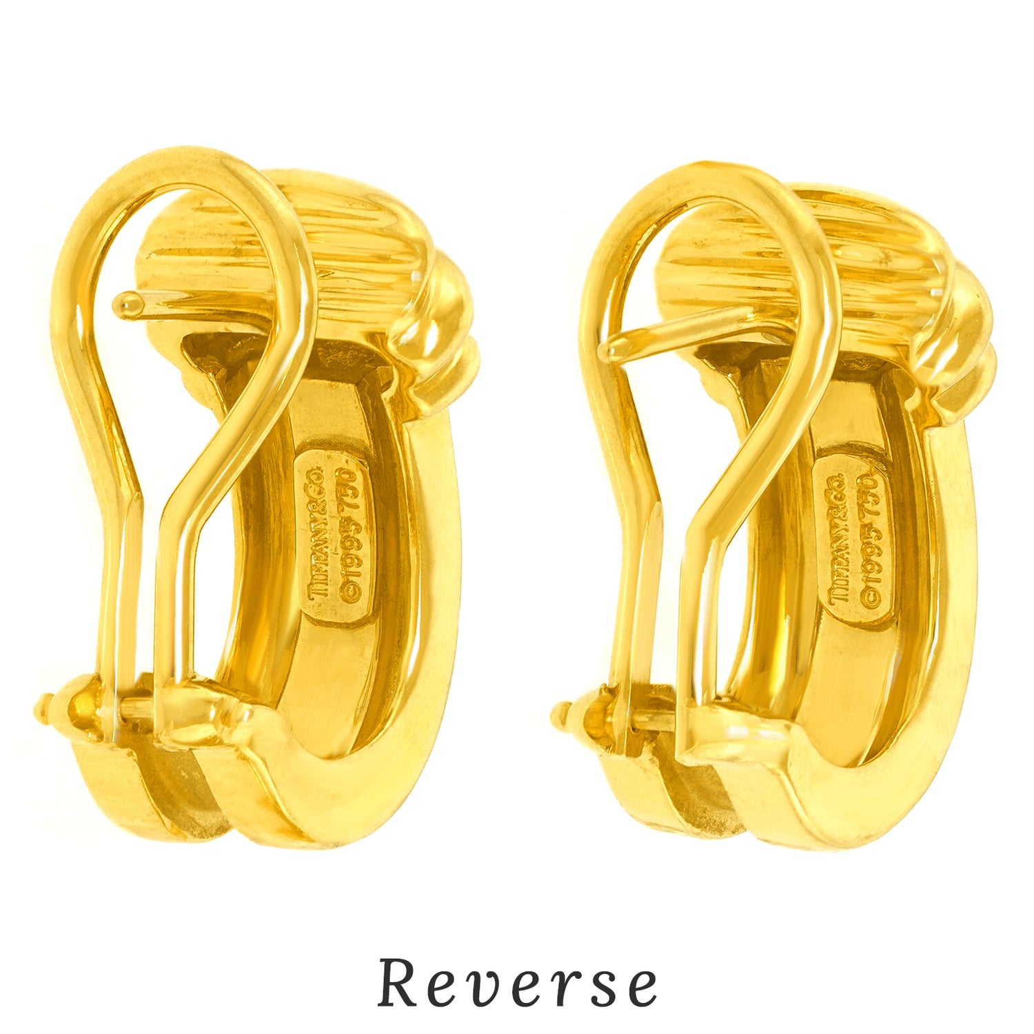 Circa 1995, 18k, by Tiffany & Co., New York. These fabulous earrings are early versions of Tiffany’s iconic Atlas motif. Brilliant for every day, their effortless flair exemplifies the stylishly understated Atlas design set. Flawlessly coordinating with any ensemble and finely fabricated to Tiffany’s exacting standards, they are in excellent condition.