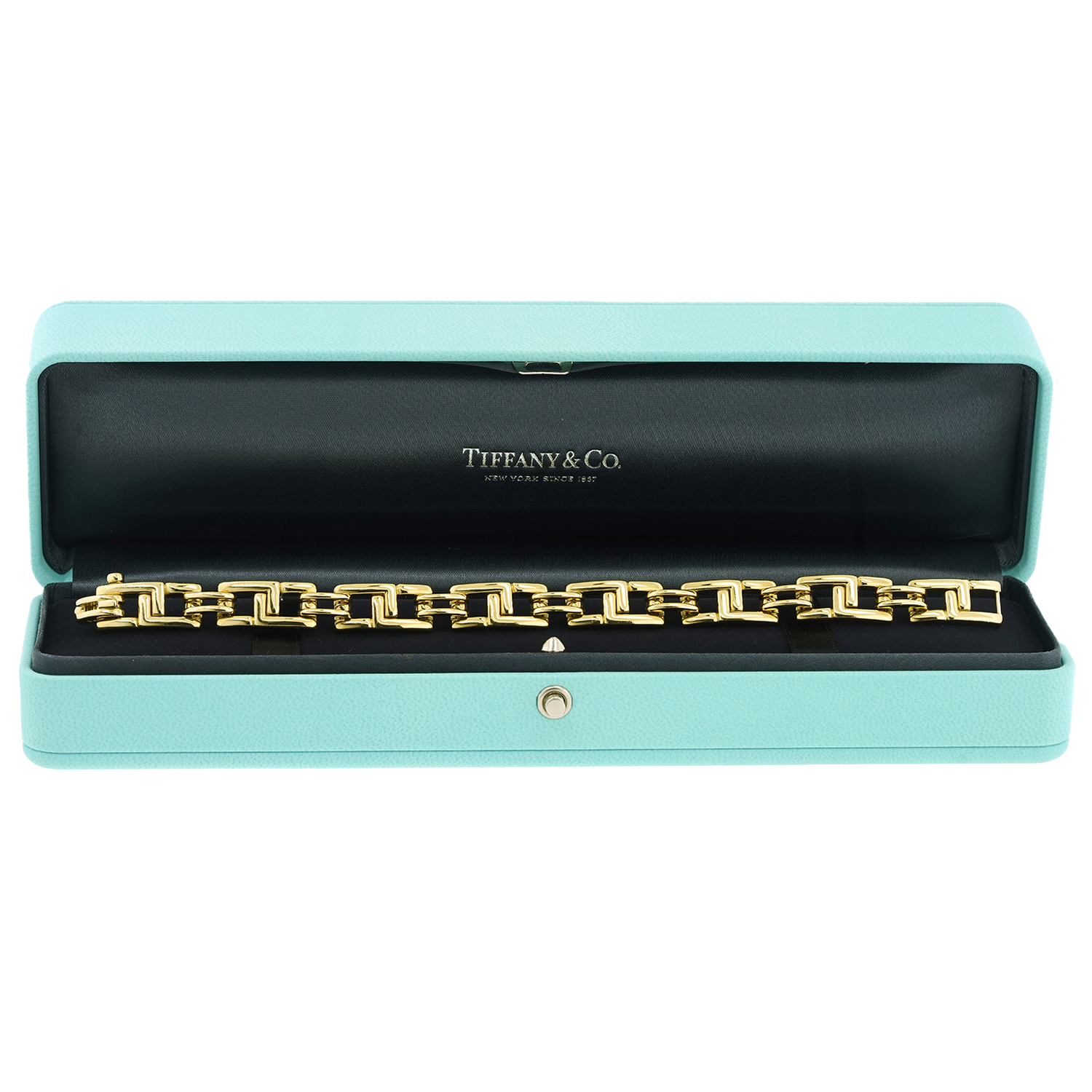 Circa 2001, 18k, by Tiffany & Co., New York. This chic Biscayne gold bracelet from Tiffany & Co. is the perfect everyday goes-everywhere gold bracelet. Iconic yellow gold jewelry is a Tiffany specialty. It is superbly made, pleasantly heavy, and in excellent condition.