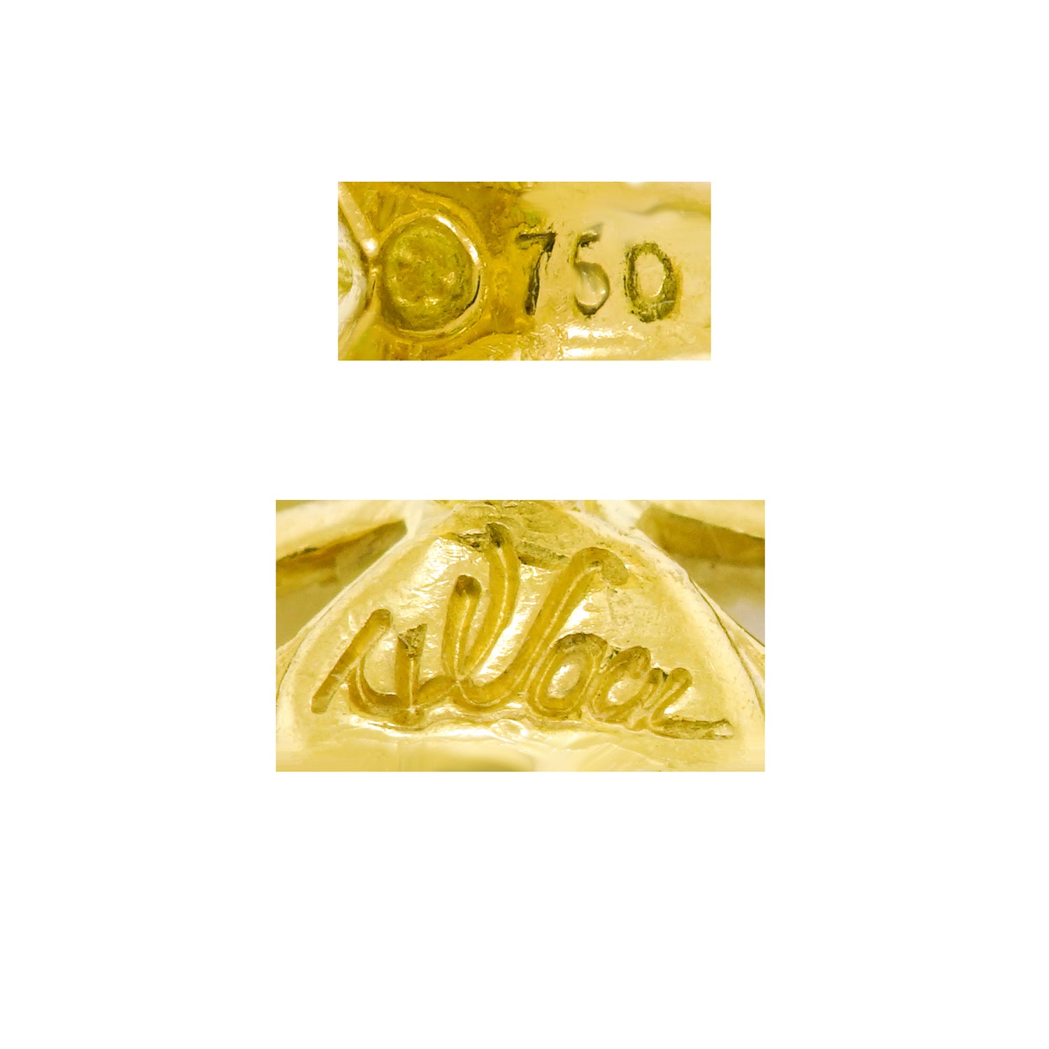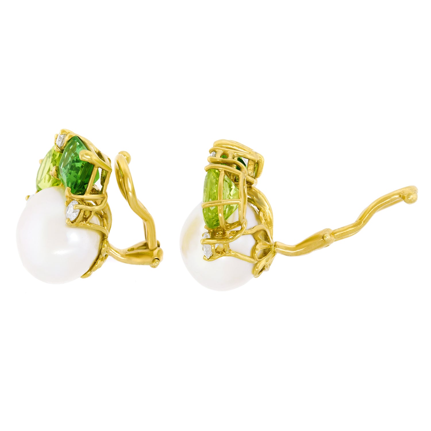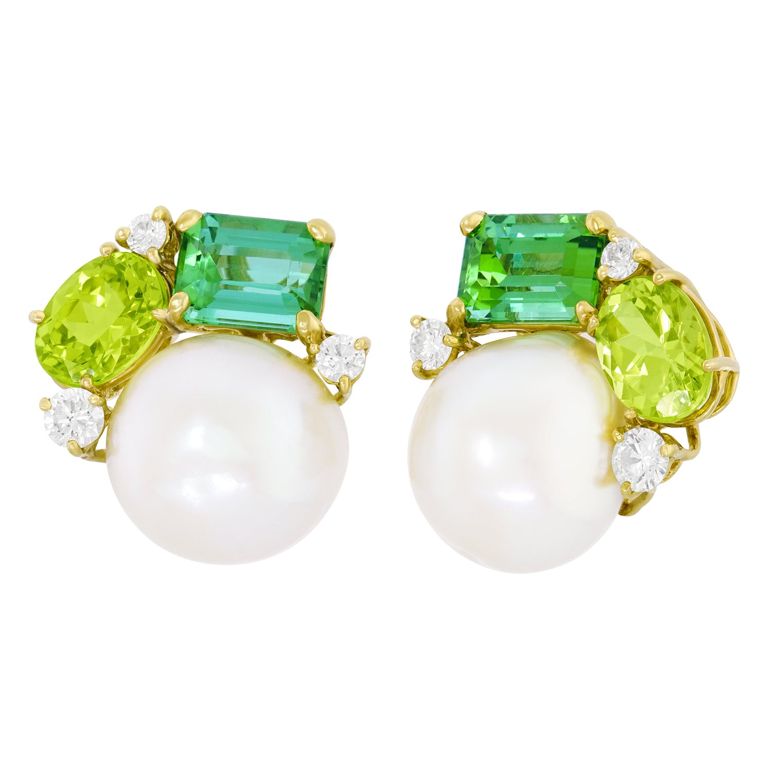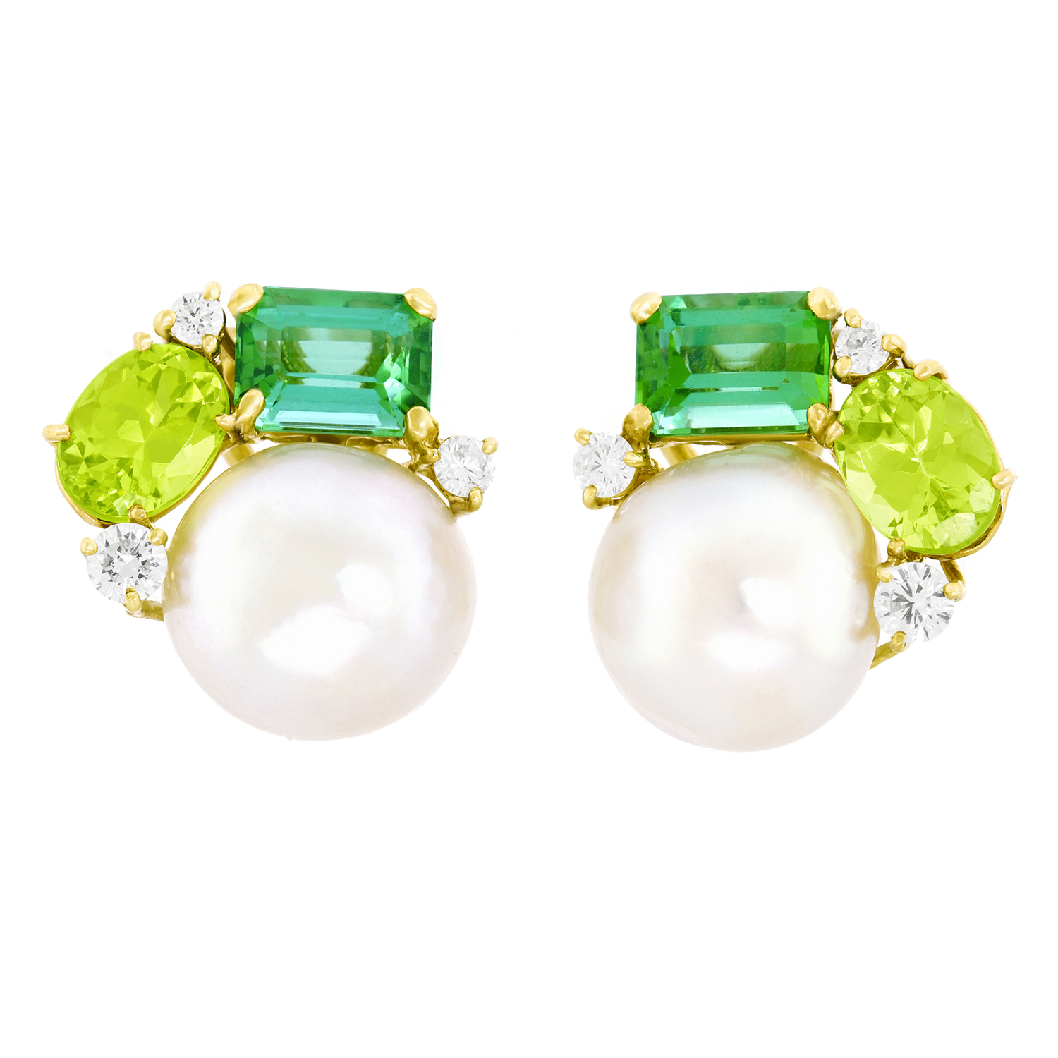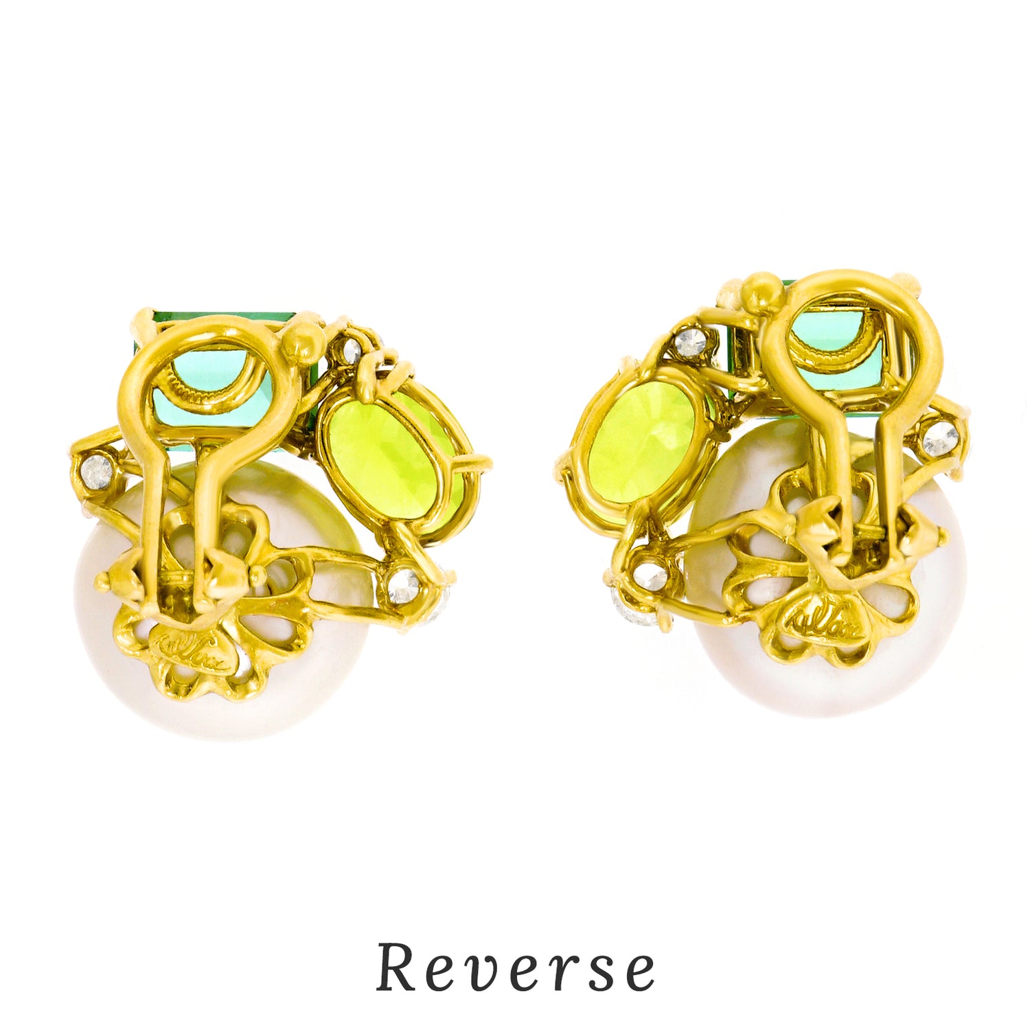 Tourmaline, Peridot, Diamond and Pearl Earrings 18k c1980s American