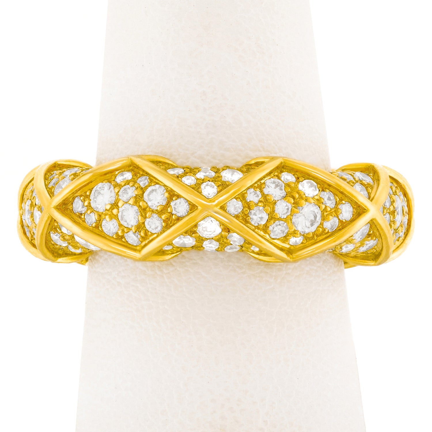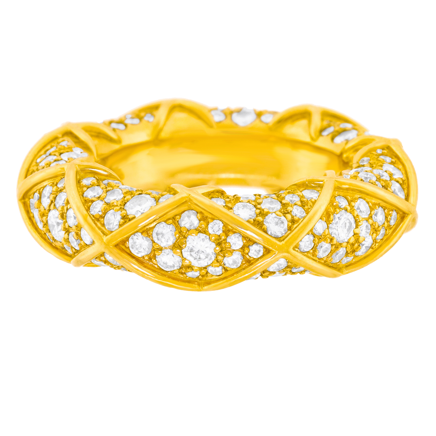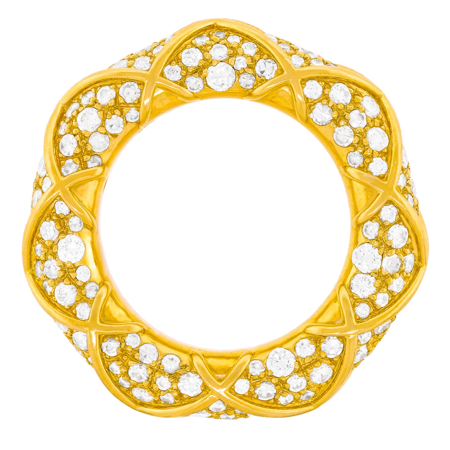Circa 1970-80s, 18k, by Trudel, Zurich, Switzerland.  This spectacular one-of-a-kind ring designed by Kurt Aepli for Trudel is set with 4.20 carats of superb white diamonds (F color, VS clarity).  The look is understated posh (the Swiss sweet spot!!). Some pieces of jewelry start conversations, invite smiles, and ultimately become a part of your signature style; this Swiss-modern jewel is all that. Excellent condition.