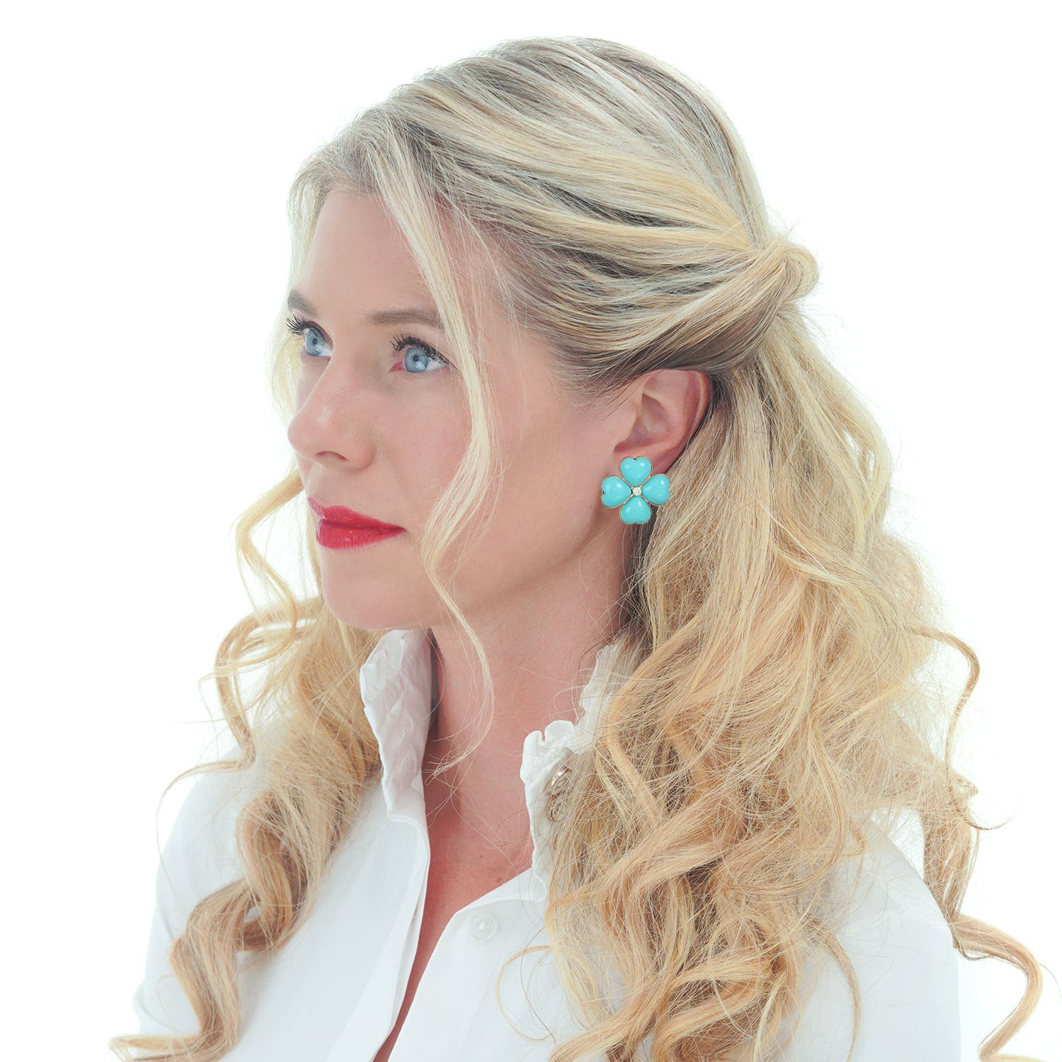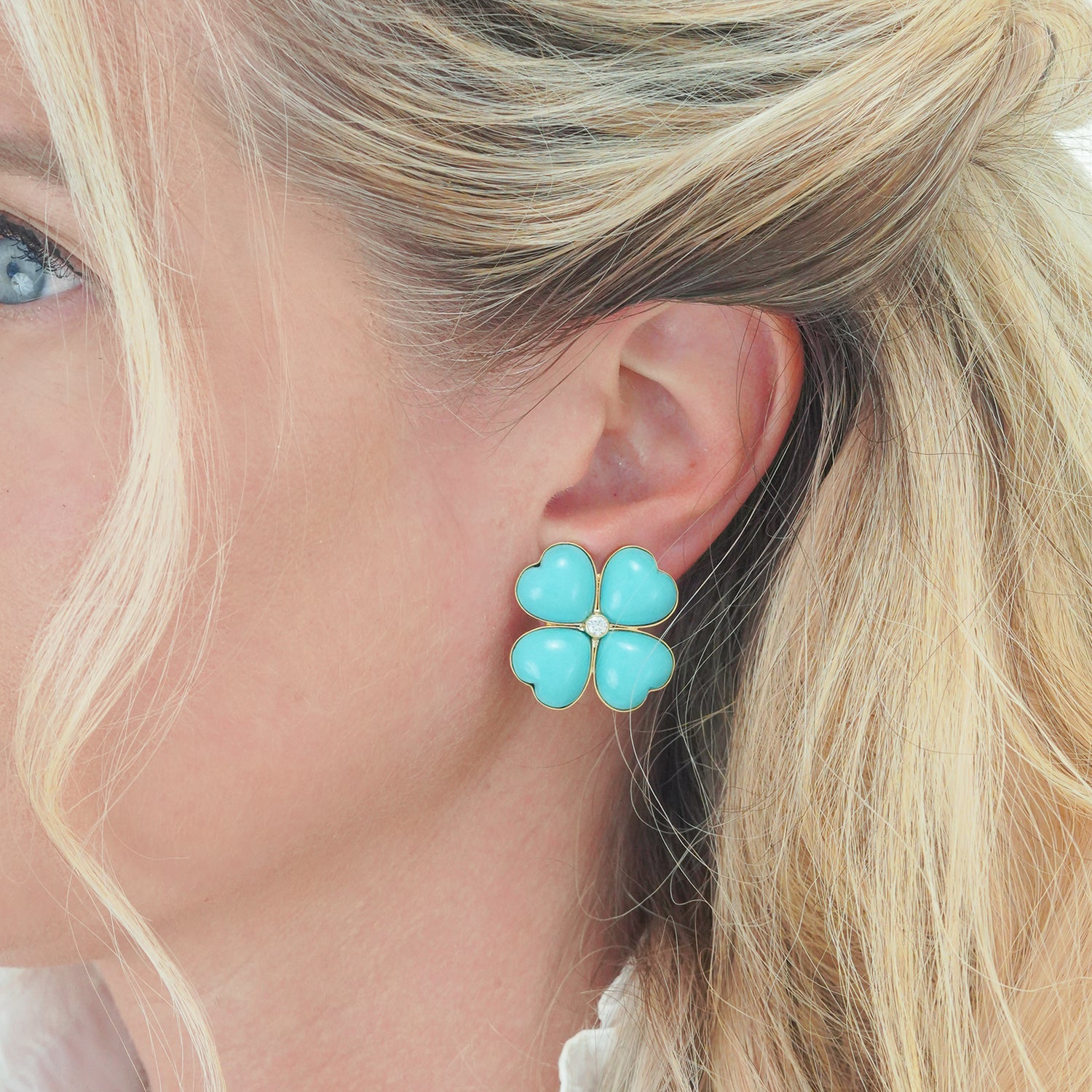Turquoise and Diamond Flower Power Earrings